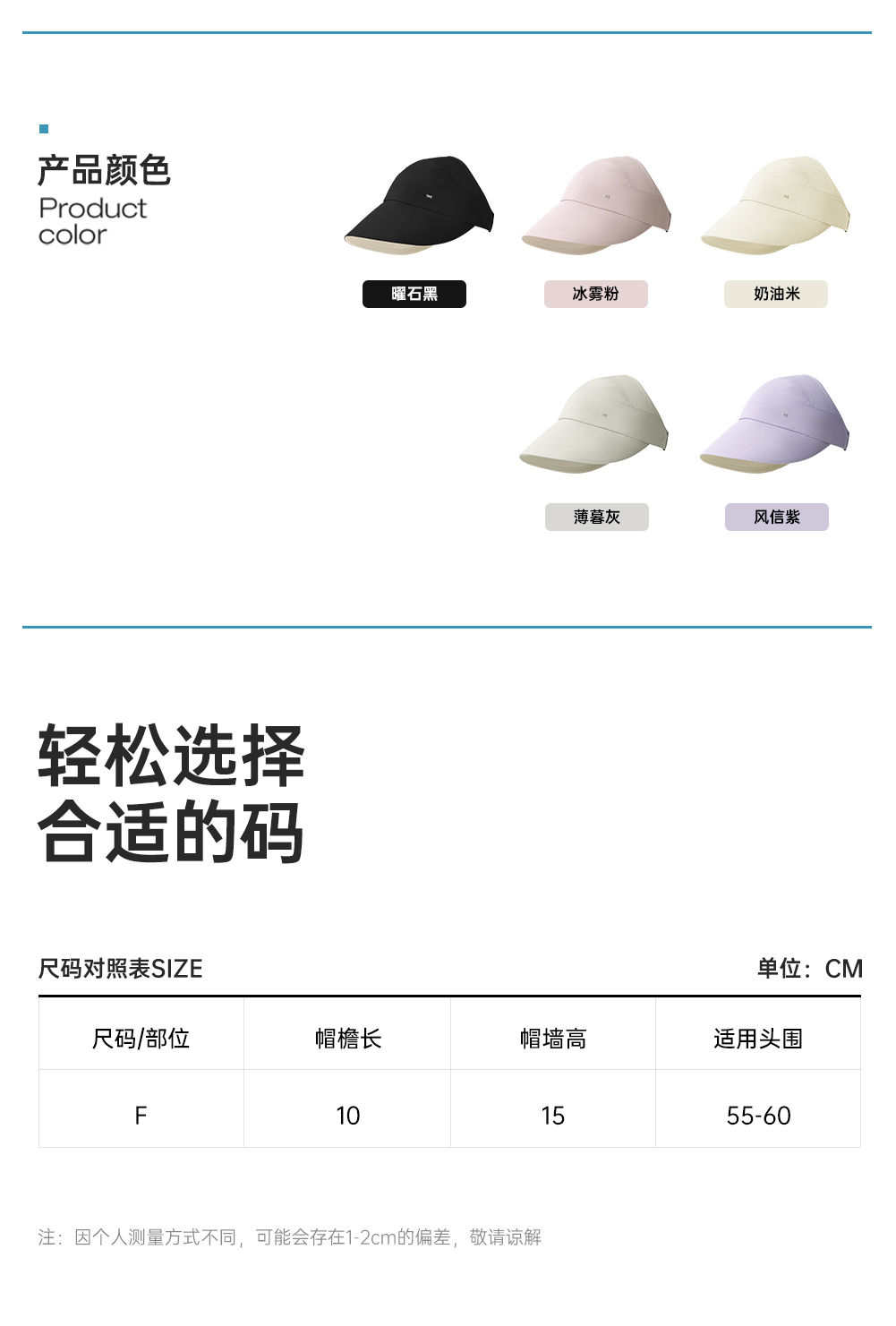 VVC防晒帽女2025春夏新款户外运动大帽檐帽子防紫外线空顶遮阳帽