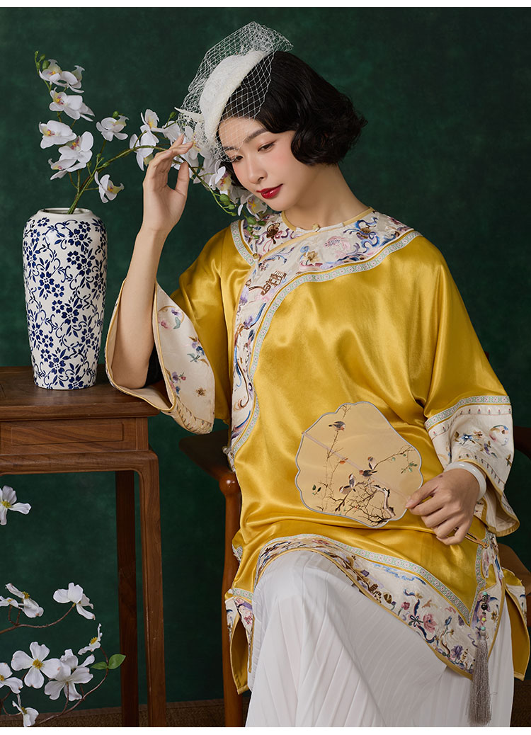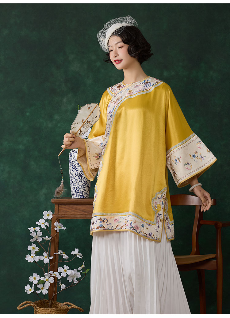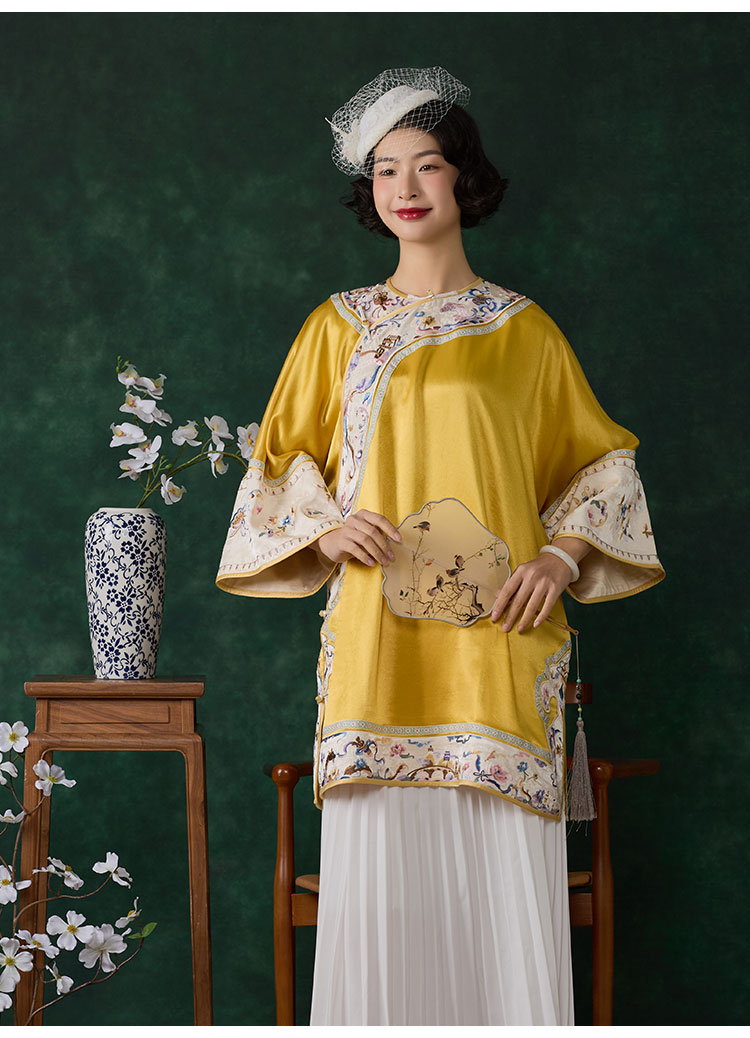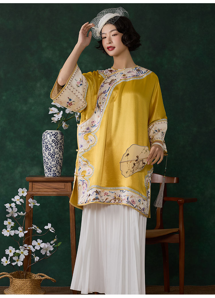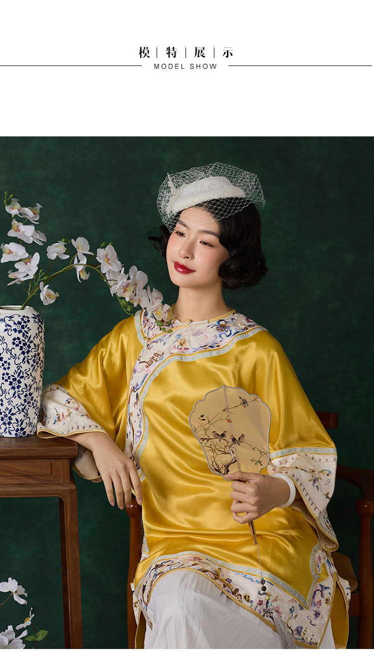 春夏新中式短款斜襟系带龟裂纹香云纱小衫U20326捌 。
