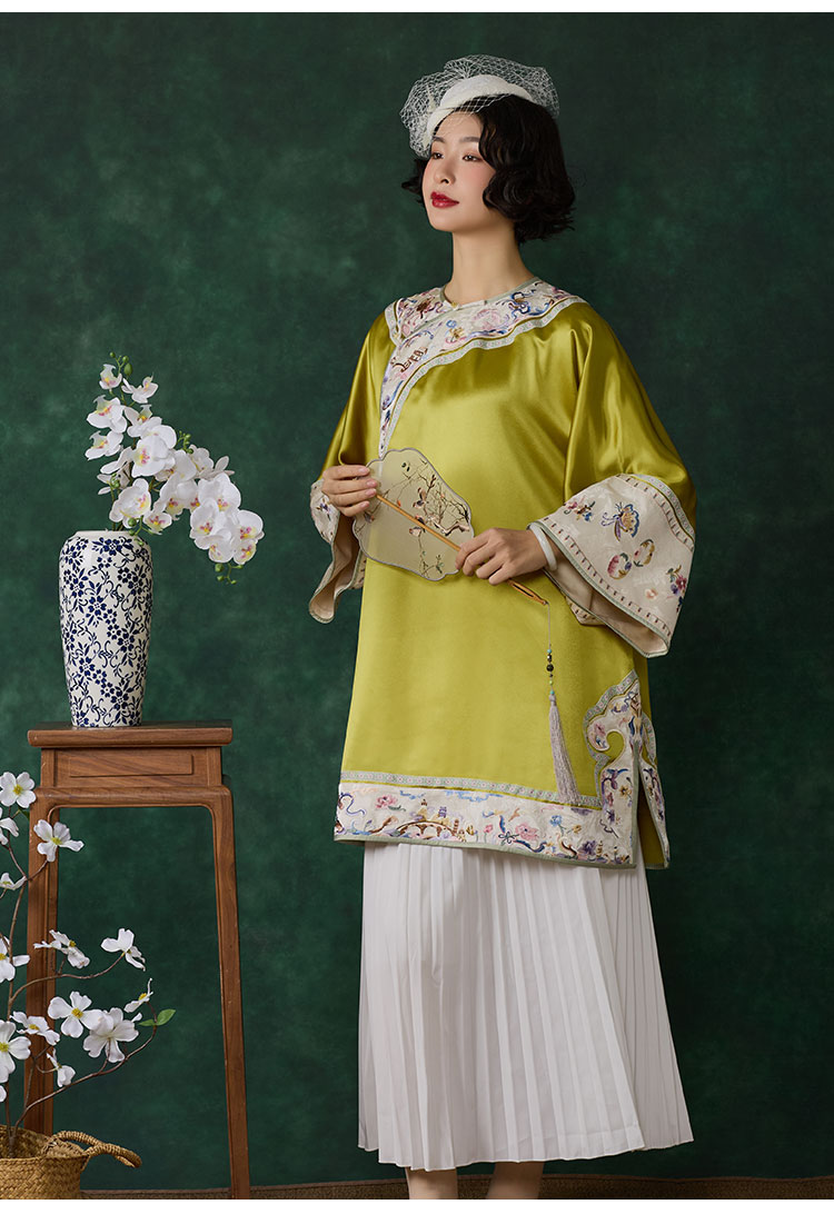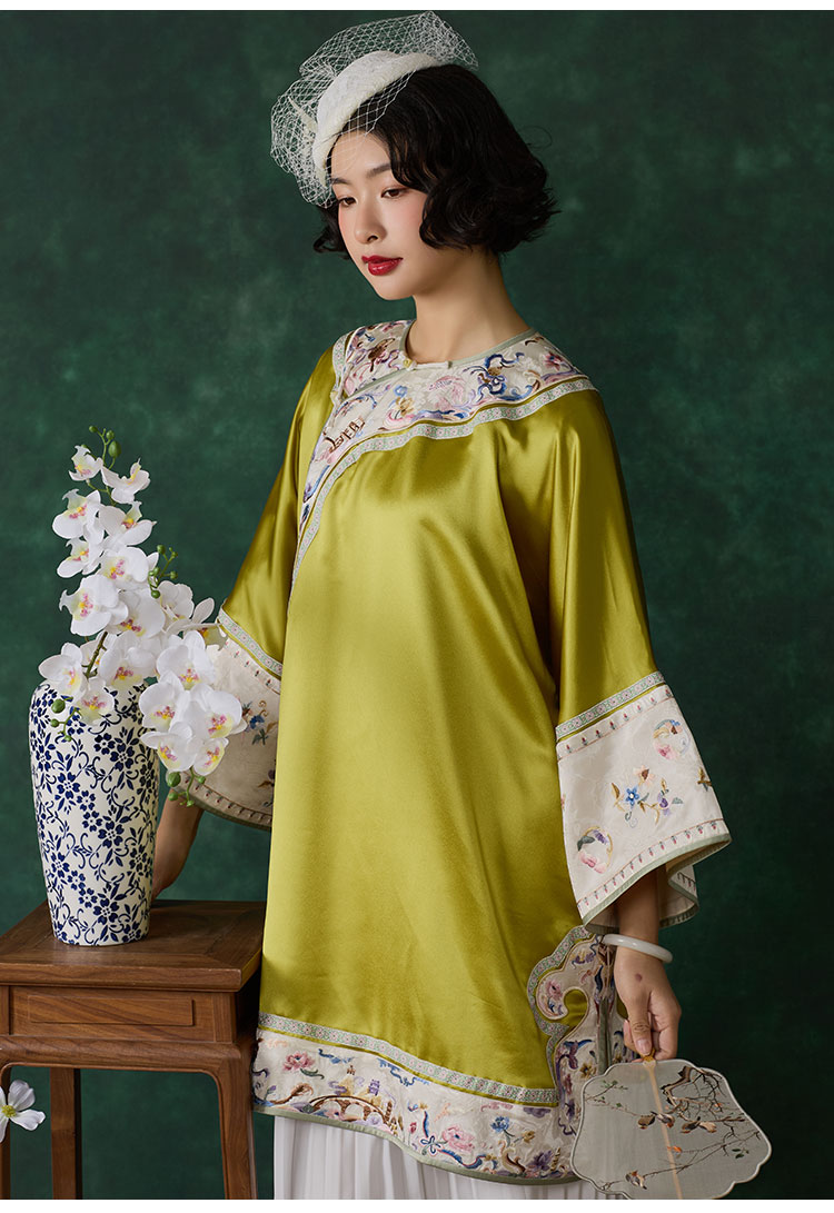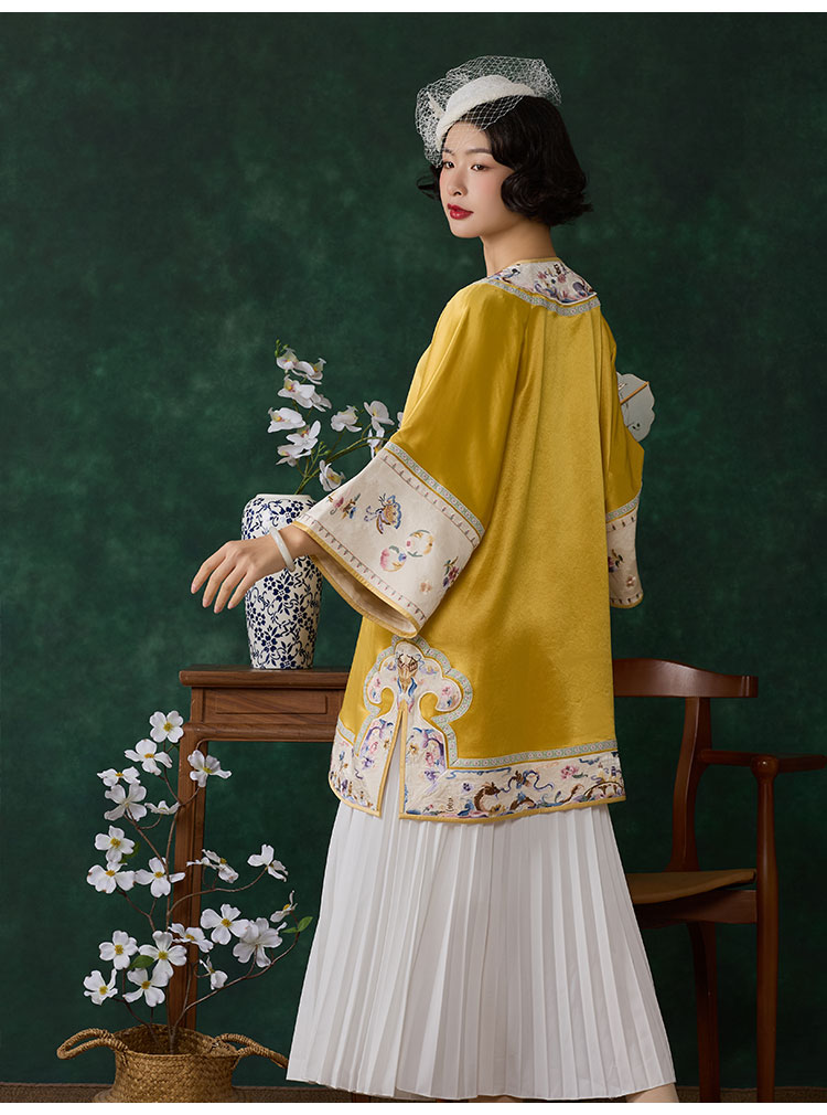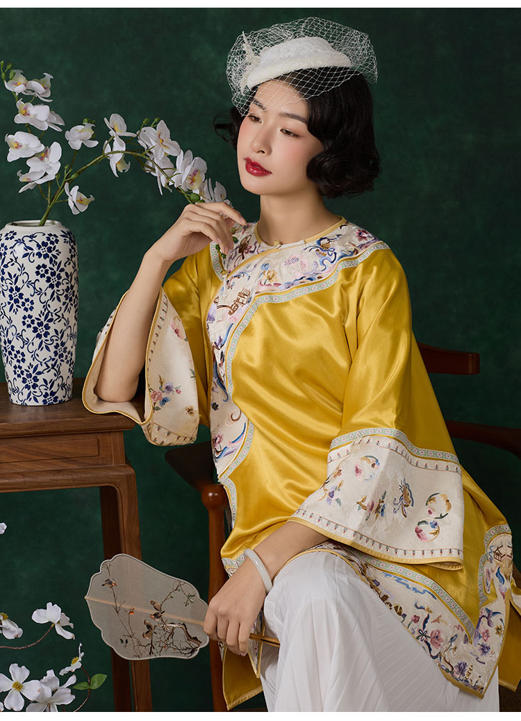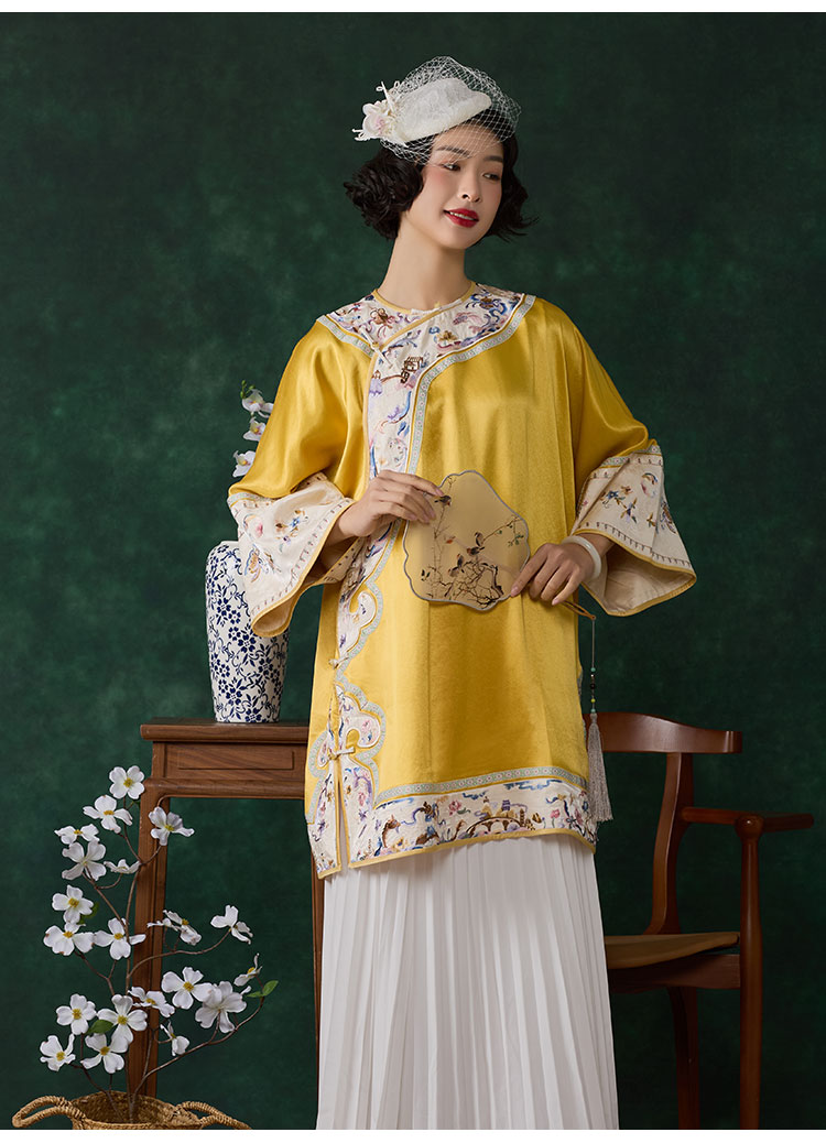 春夏新中式短款斜襟系带龟裂纹香云纱小衫U20326捌 。
