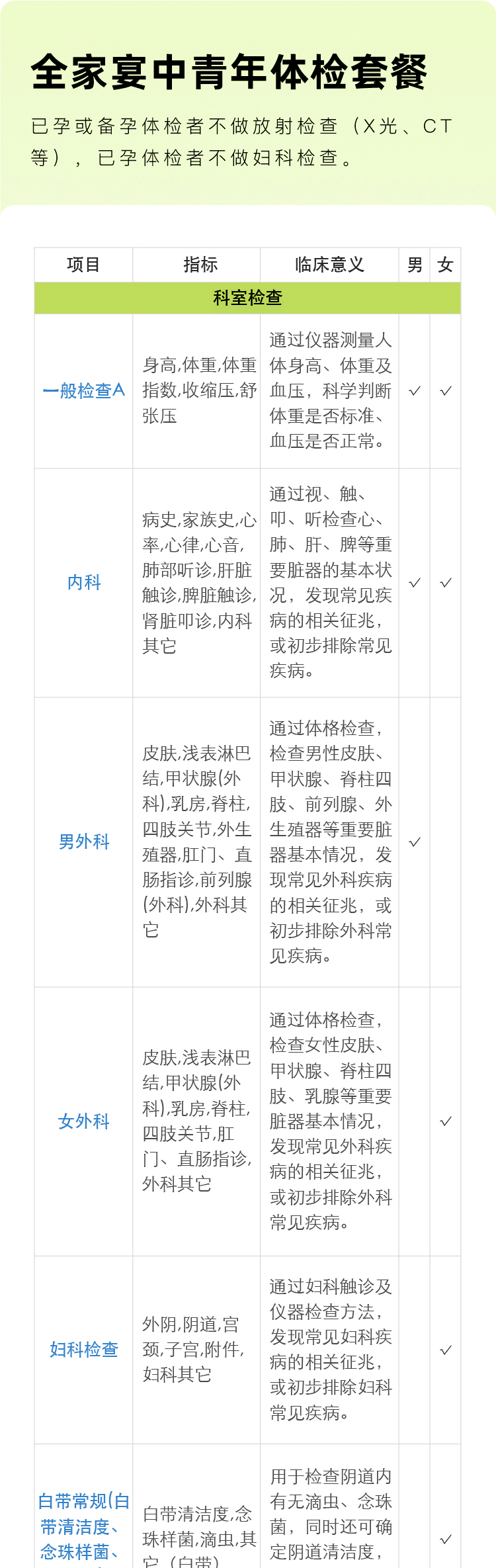 中青年全面体检套餐(女)适用爱康国宾/国宾VIP/卓悦