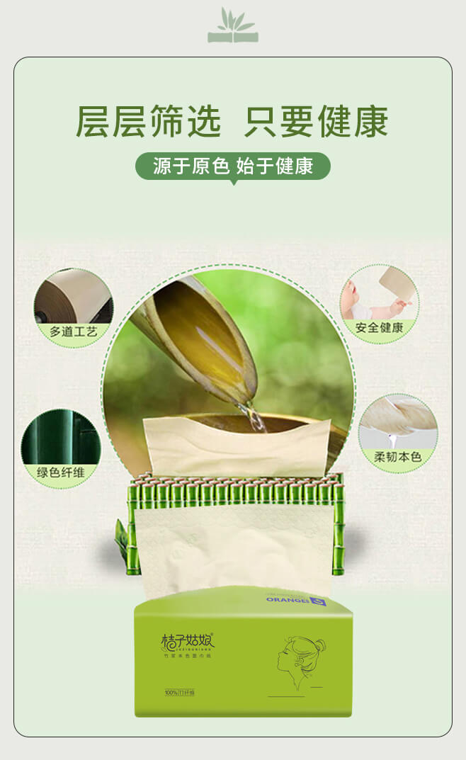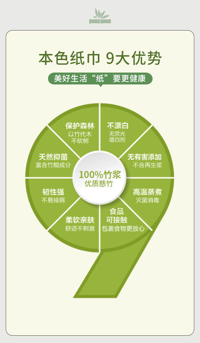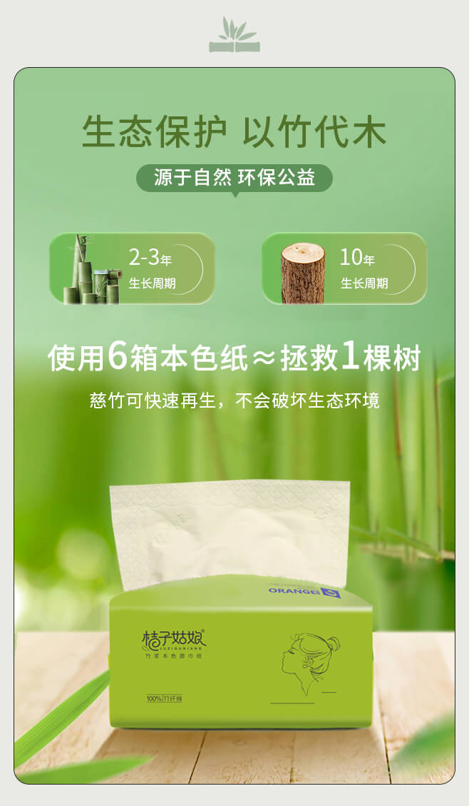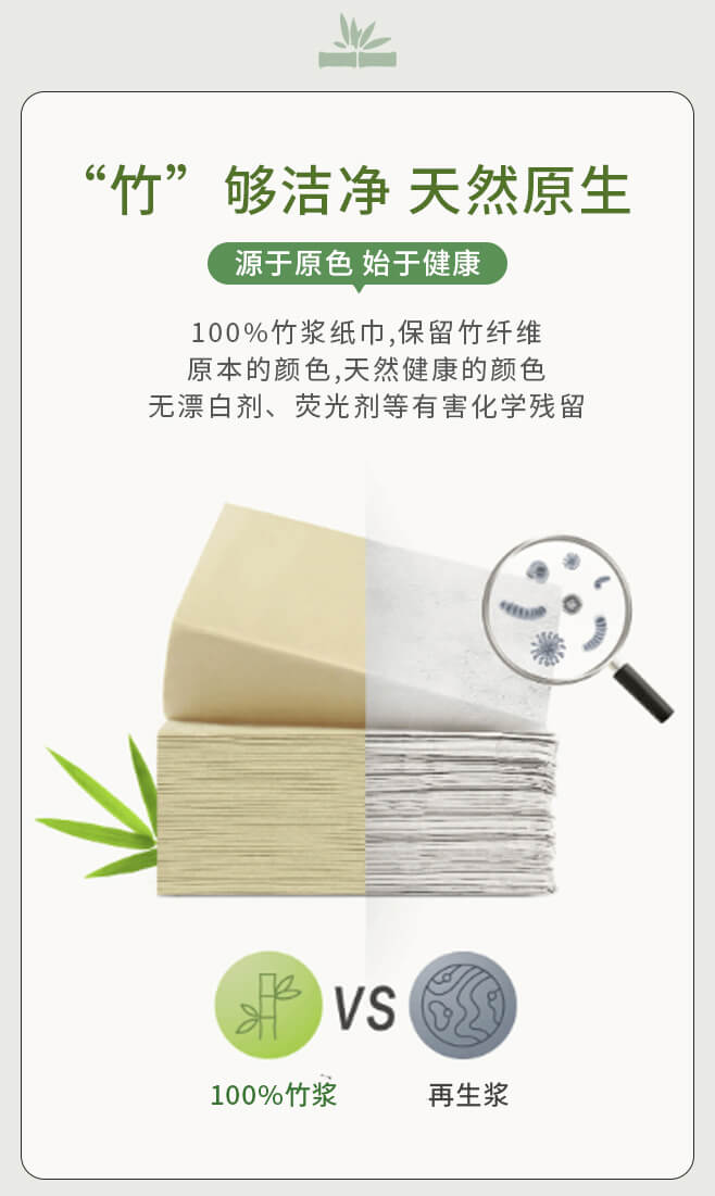 【100%竹浆 不漂白本色抽纸】绿色的爱,只为中国, 以竹代木,利在千秋。竹浆真本色,自然更安心,更好的本色纸巾,欧美认证,FDA认证