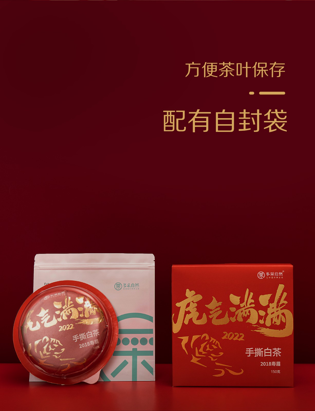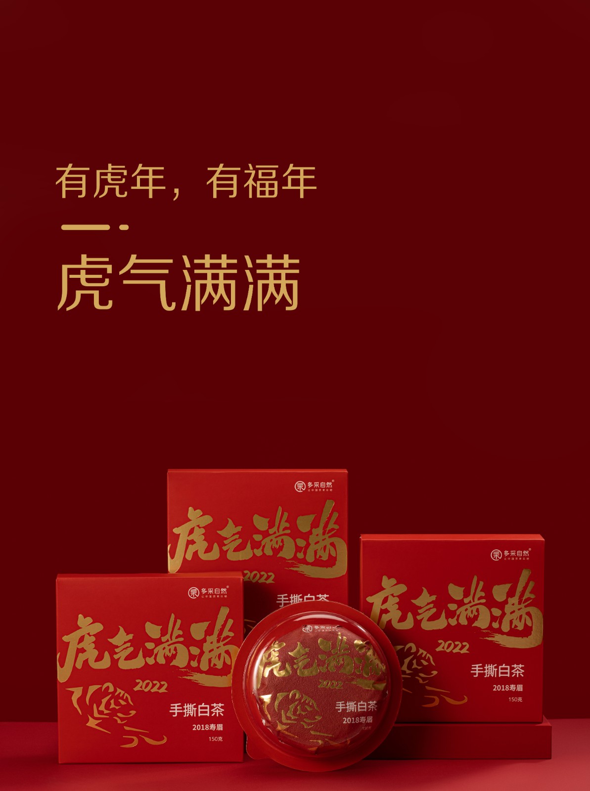 多采自然 2022虎气满满生肖饼 福鼎2018年寿眉原料 礼盒装 150g/盒