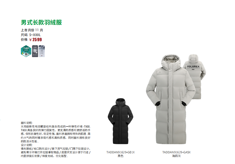 探路者男式长款鹅绒羽绒服TADDAN91629