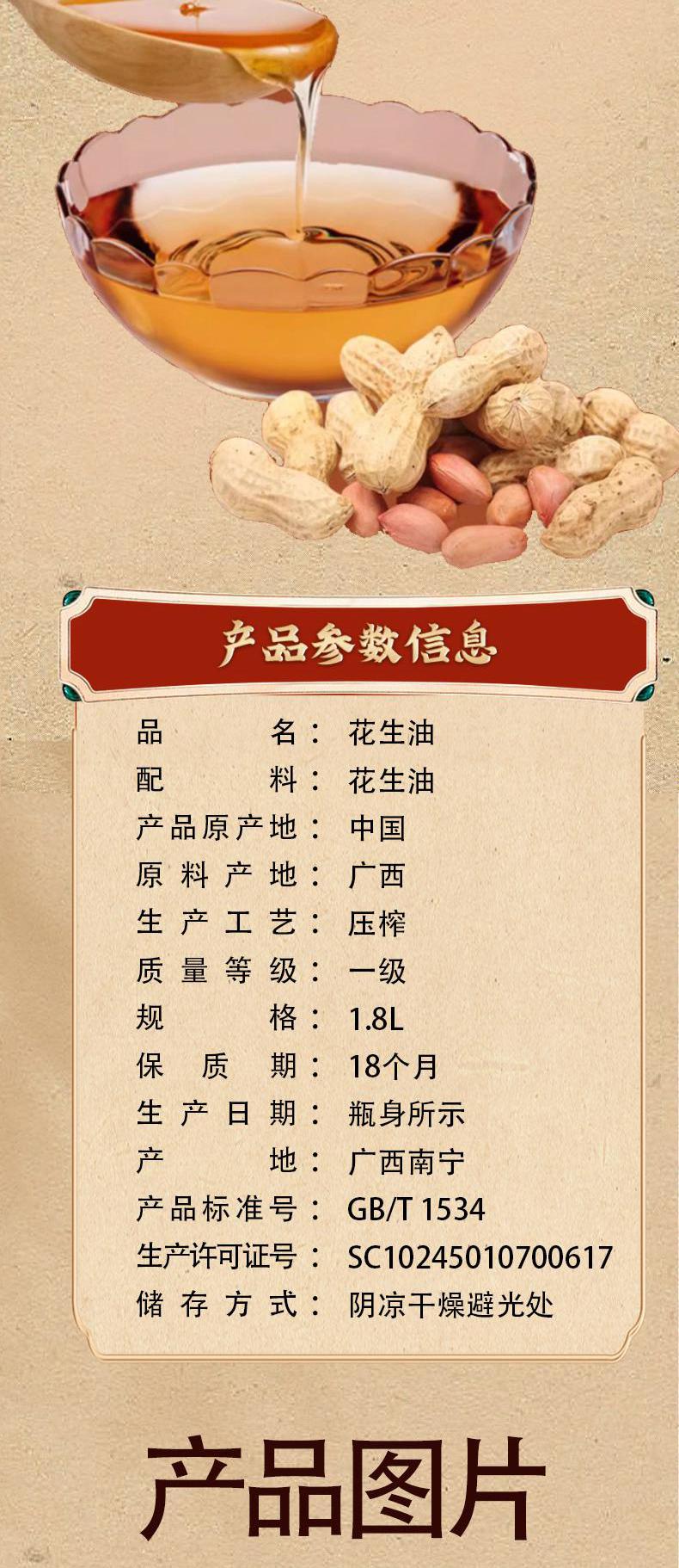 花家盛世 一级花生油1.8L优质原料浓香小瓶装精 HJSS009