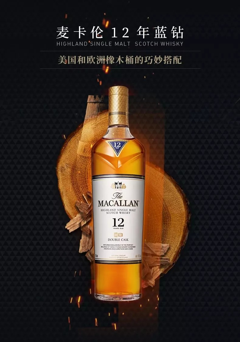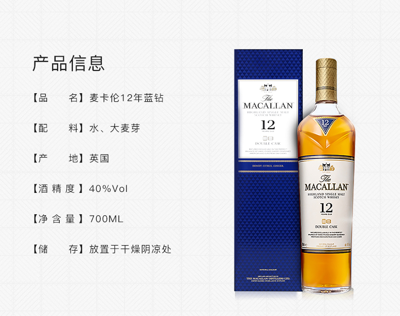 麦卡伦 蓝钻12年双桶单一麦芽威士忌700ml