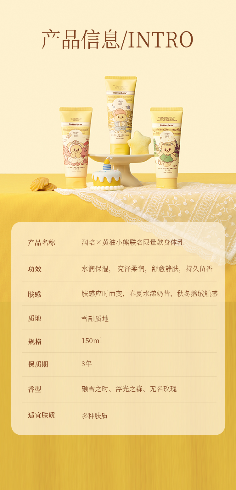 【79元3支💥】润培身体乳150ml/支 黄油小熊联名 保湿滋润持久留香