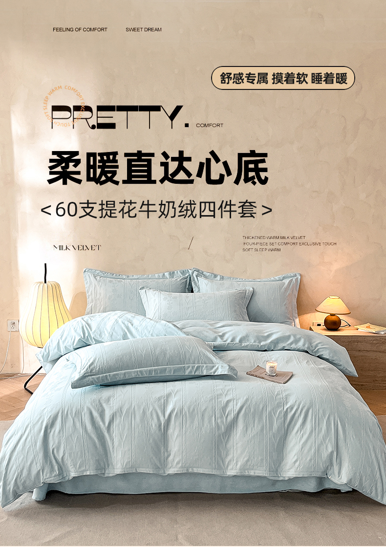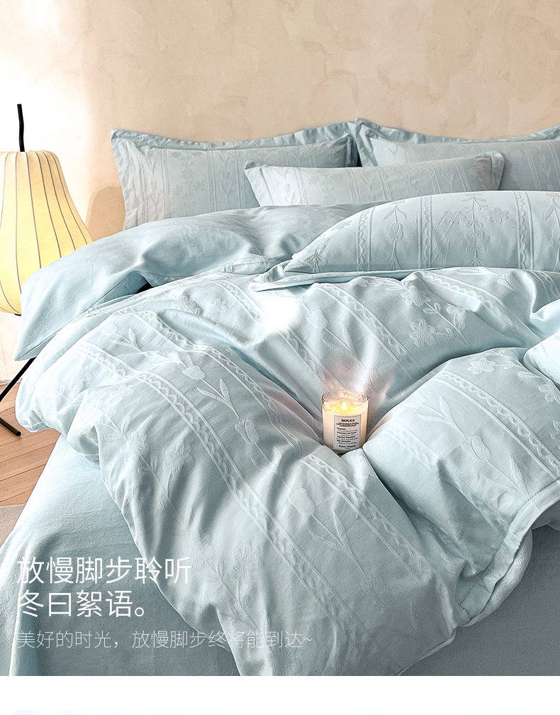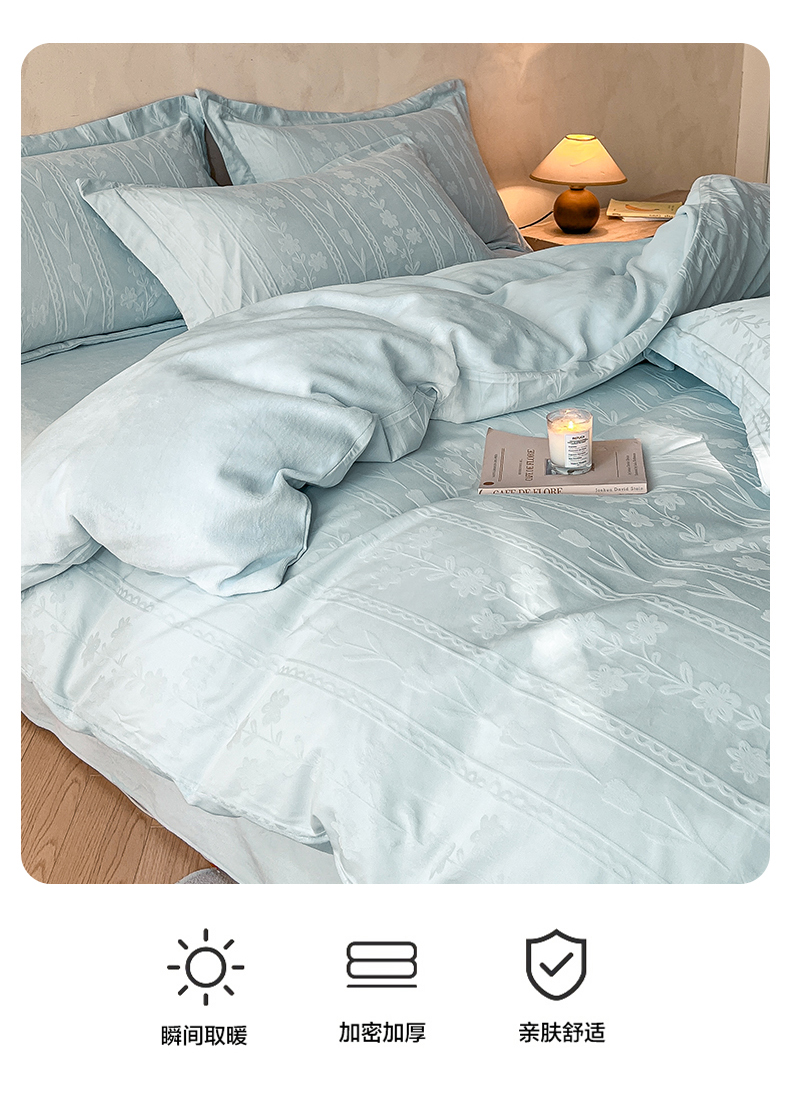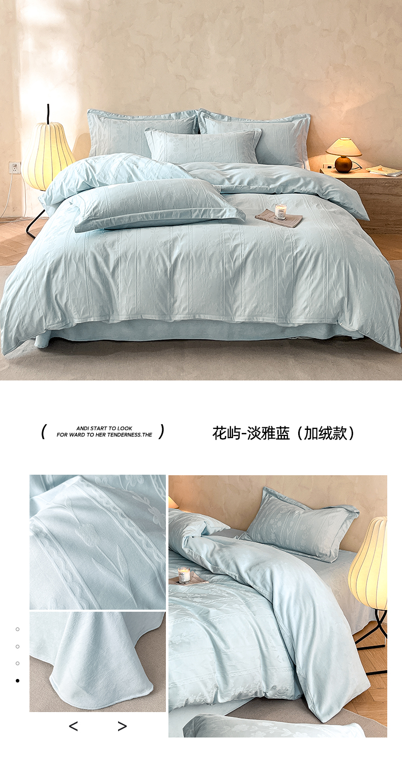 【热卖推荐】自然醒60支A版全棉加厚立体提花B版高克重牛奶绒四件套HS
