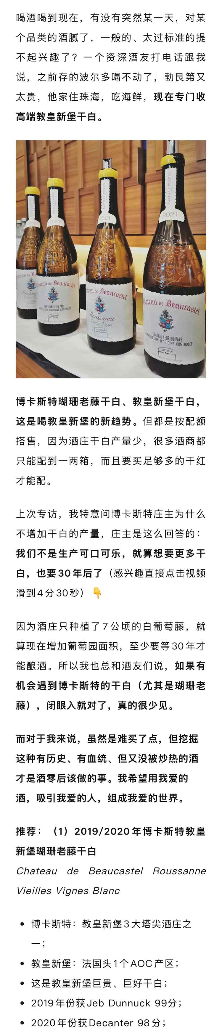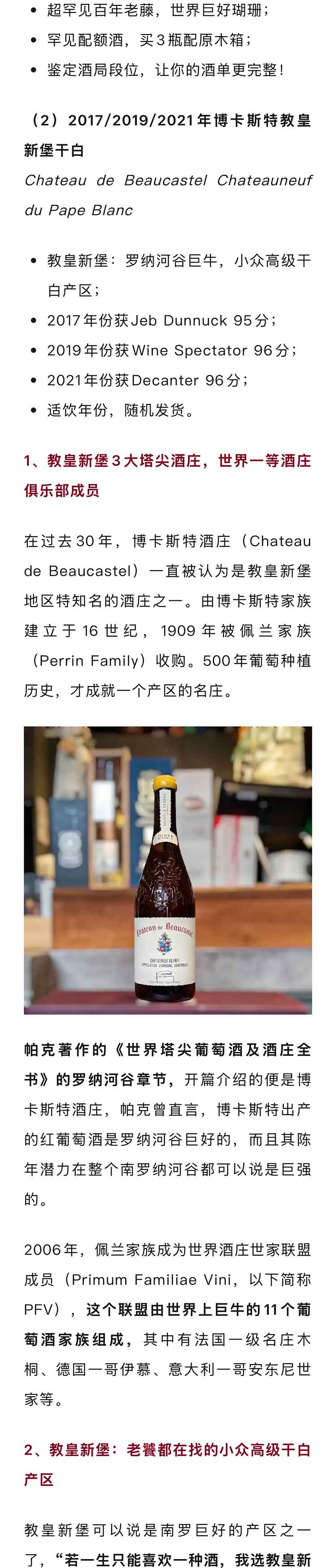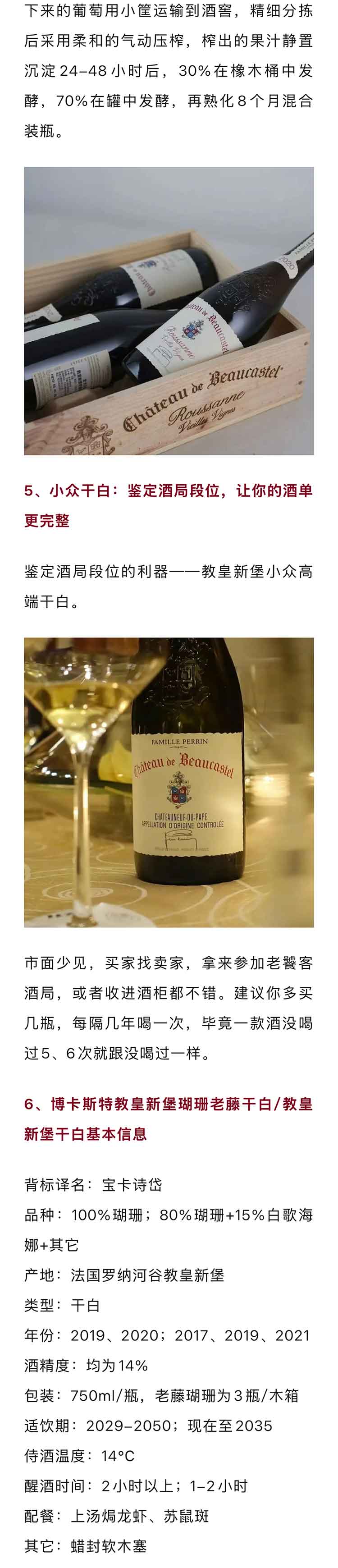 法国罗纳河谷2017/2019/2021年博卡斯特教皇新堡干白(年份随机发)
