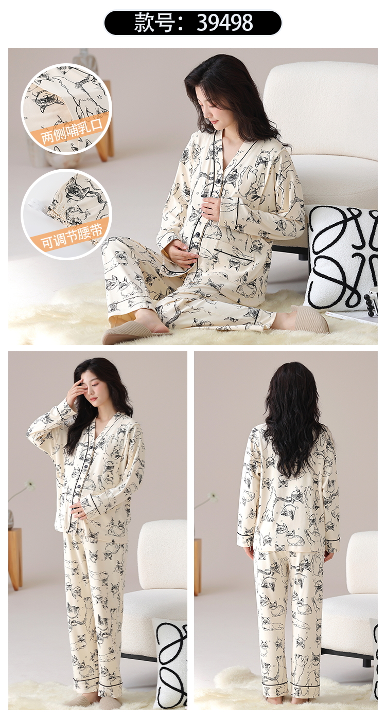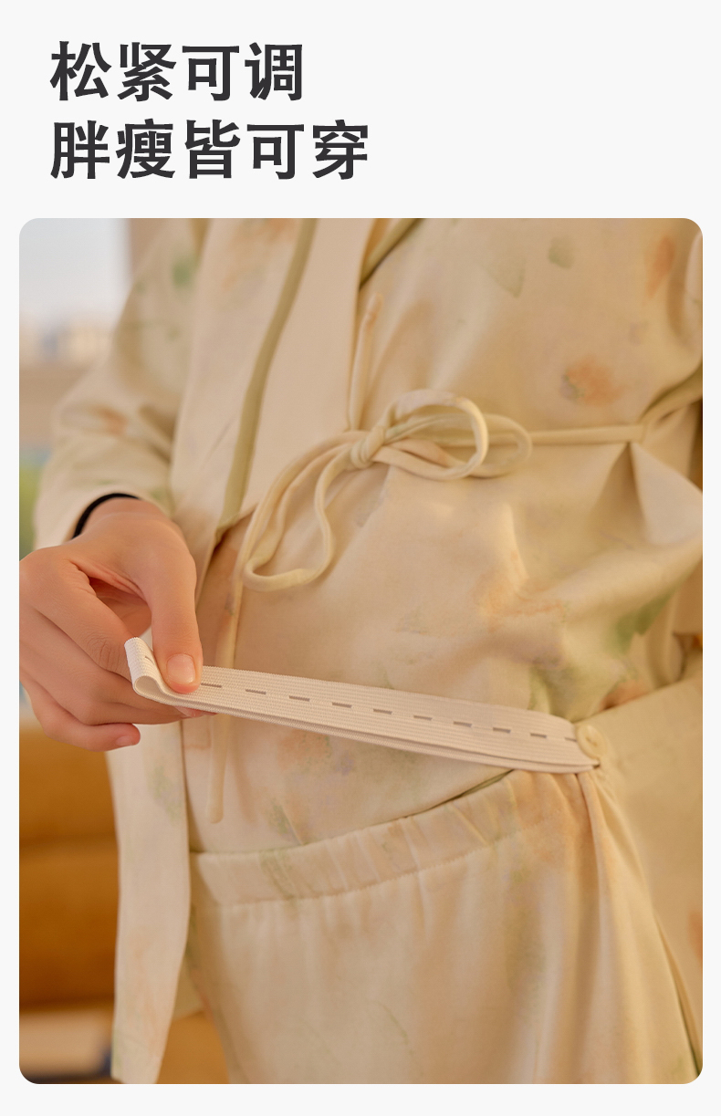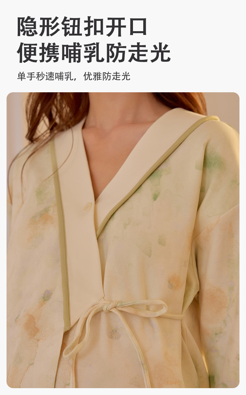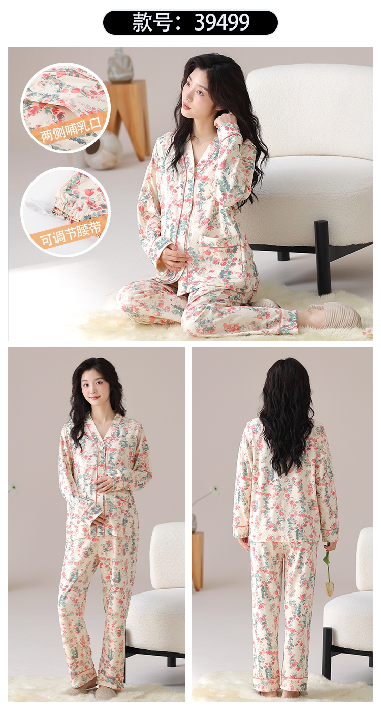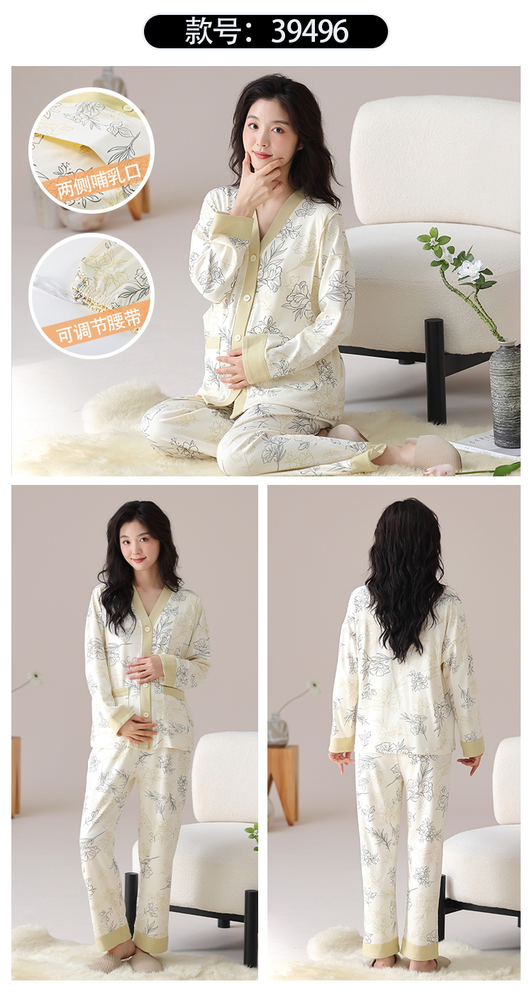 自然醒鸢尾牛奶丝系带月子服(带胸垫)秋冬产后纯棉11 10月份孕妇睡衣春秋季产妇待产哺乳QH
