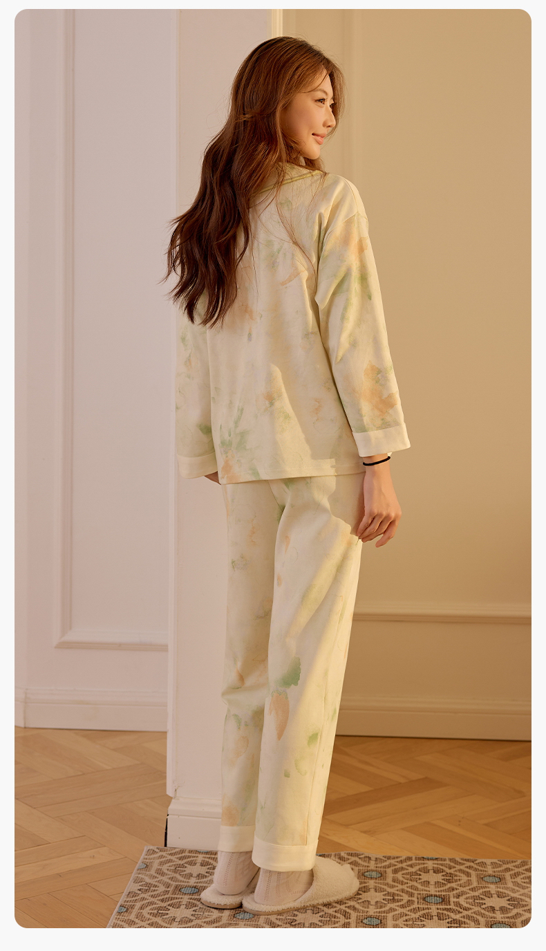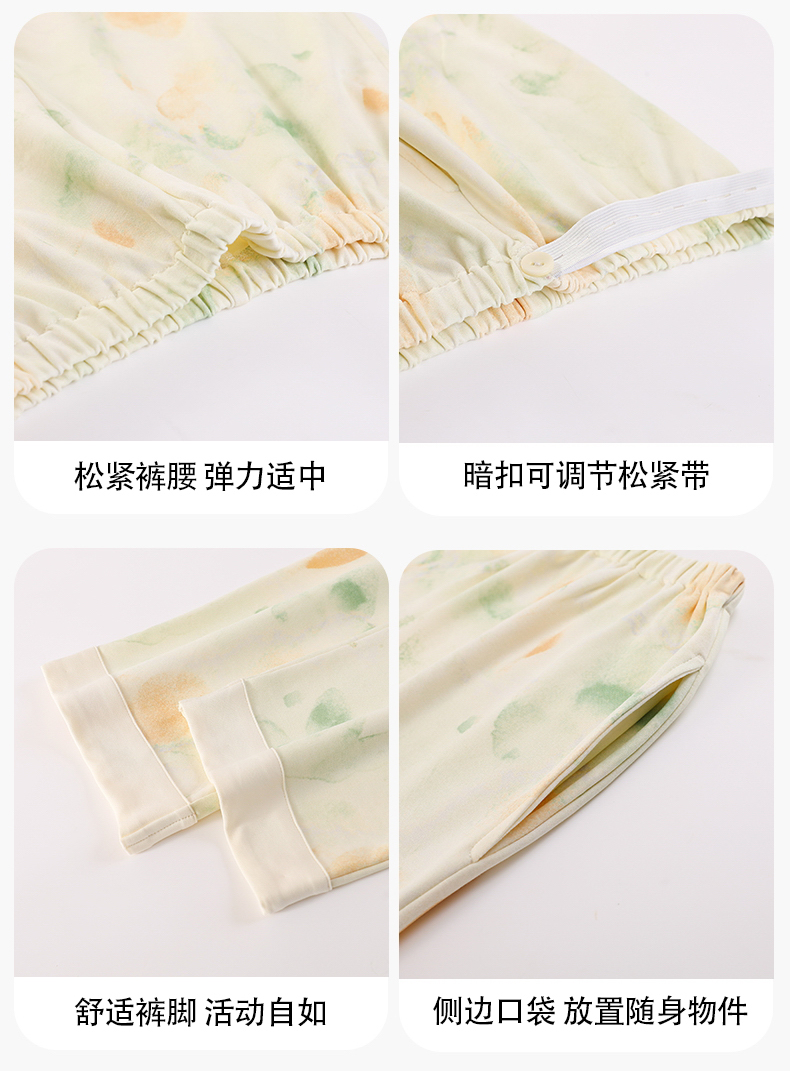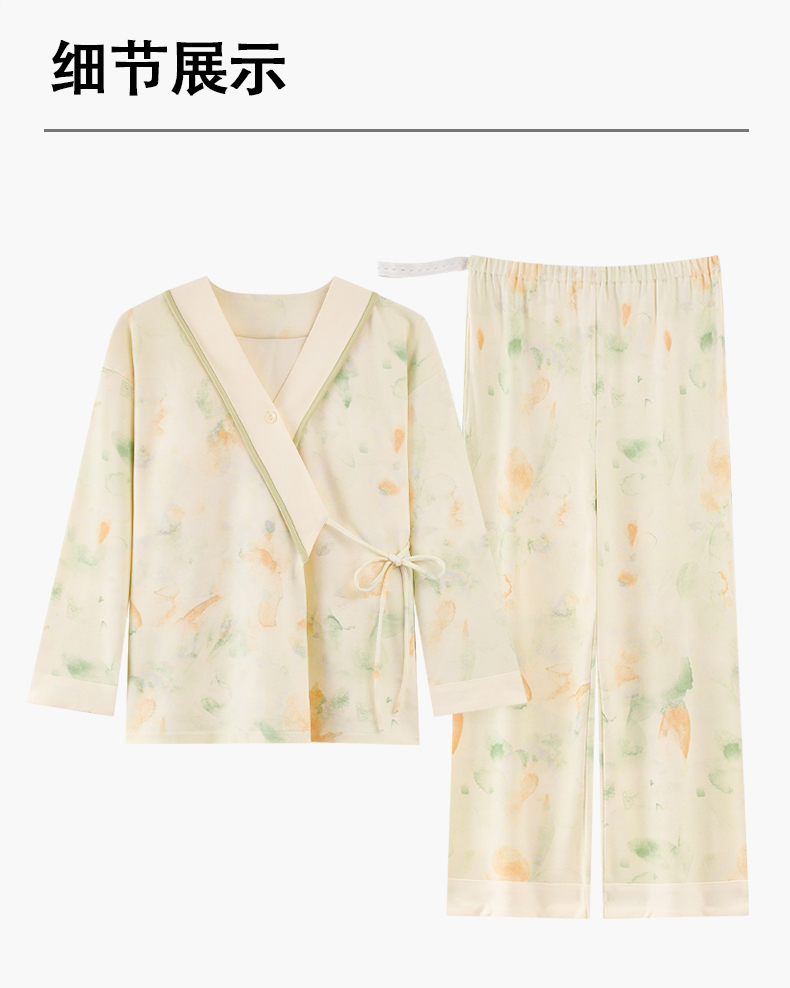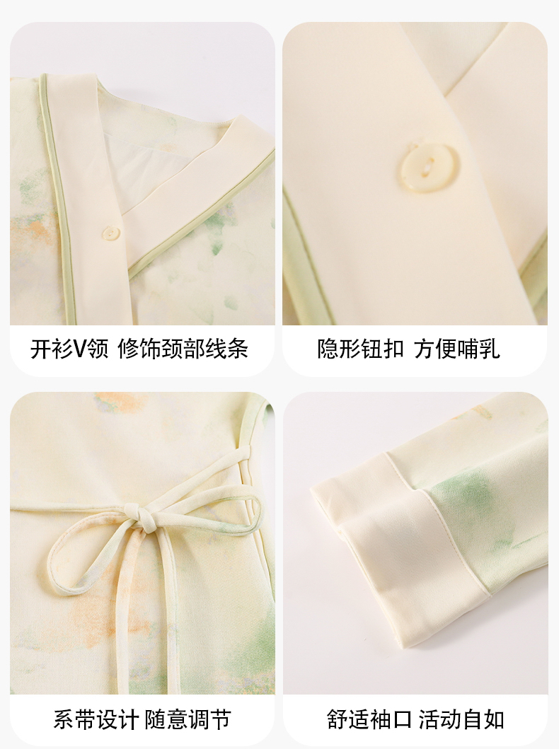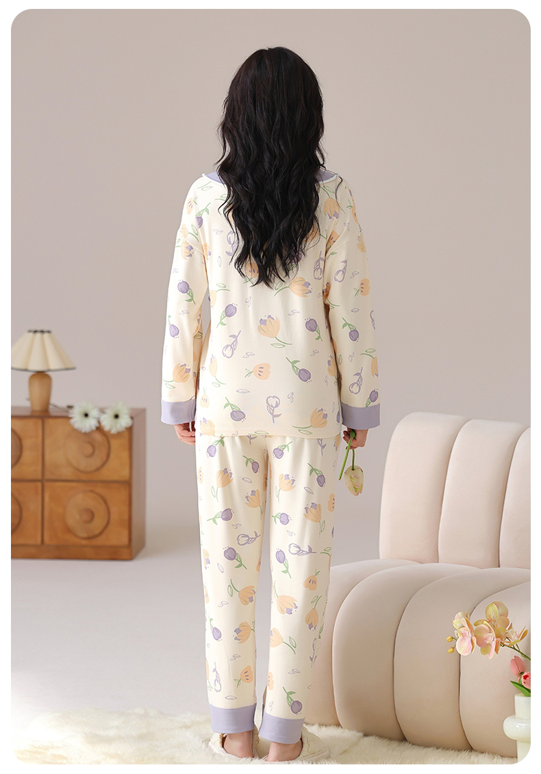 自然醒鸢尾牛奶丝系带月子服(带胸垫)秋冬产后纯棉11 10月份孕妇睡衣春秋季产妇待产哺乳QH