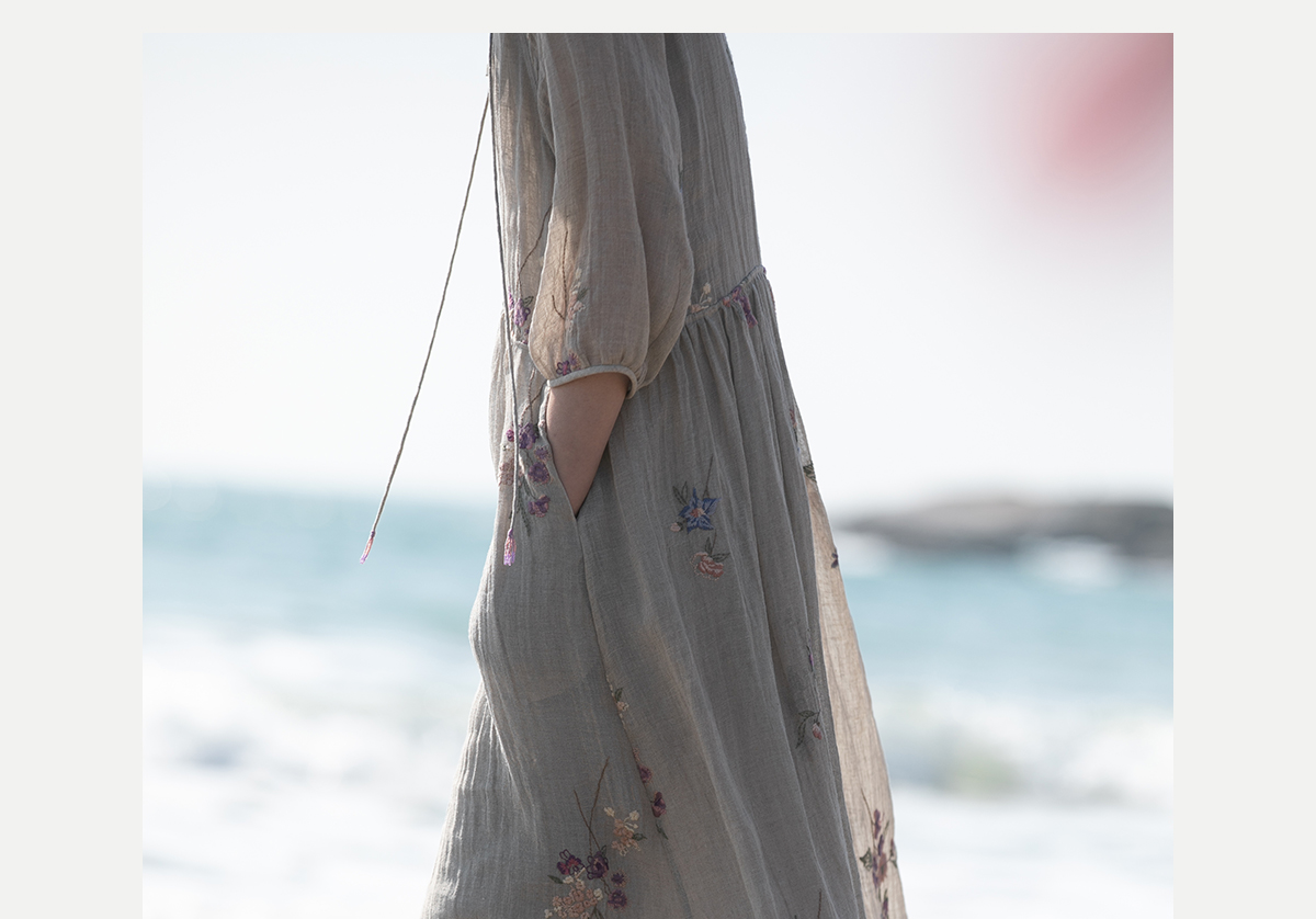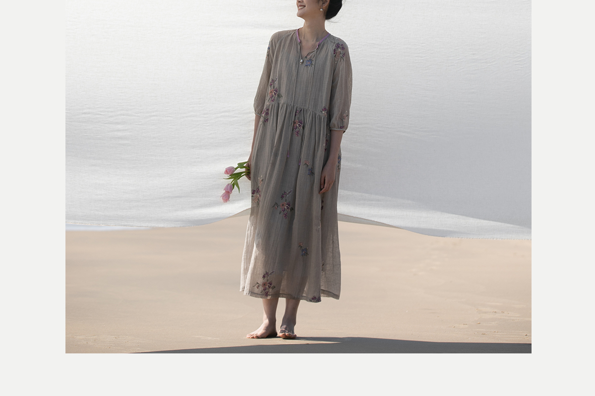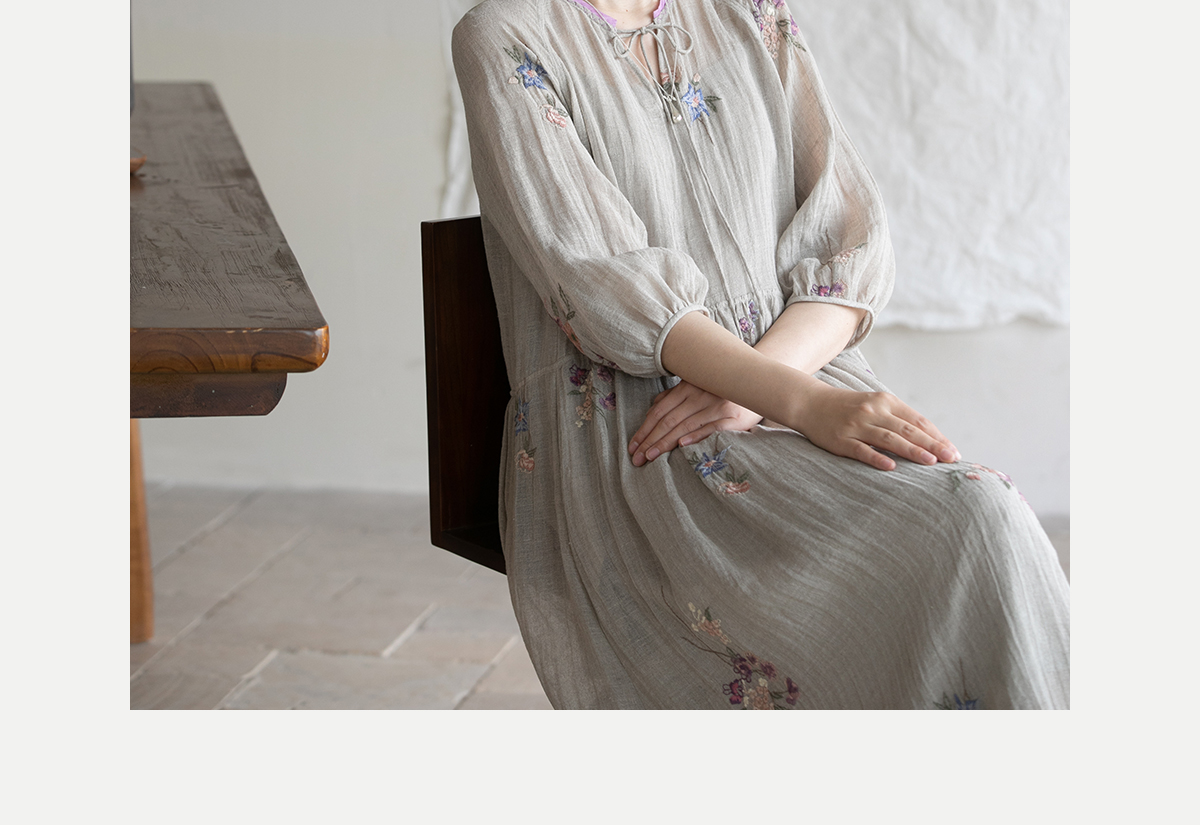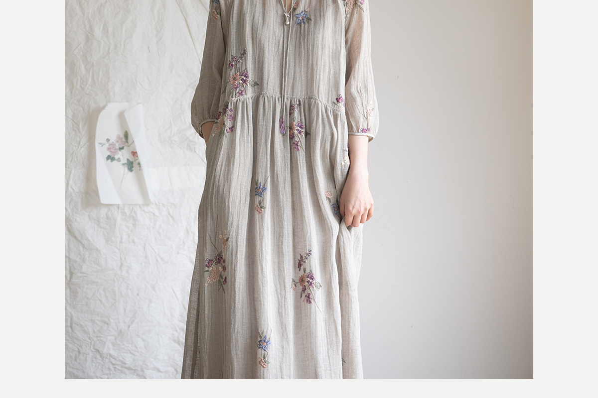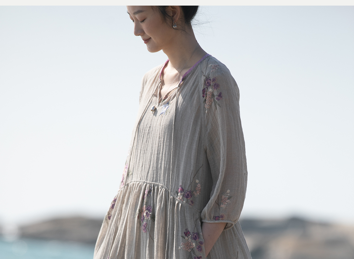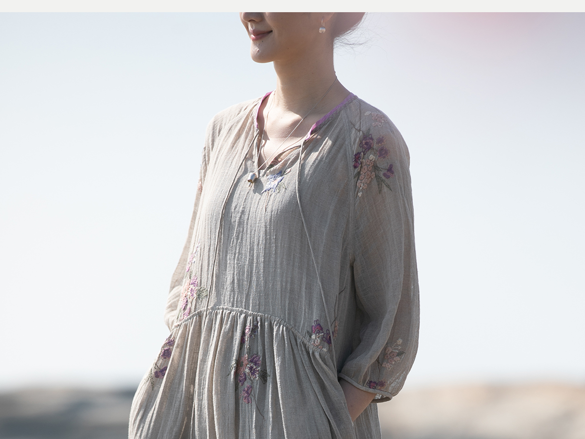 牧衣游原创 匹绣进口亚麻混纺连衣裙 福利款 星河月不支持会员折
