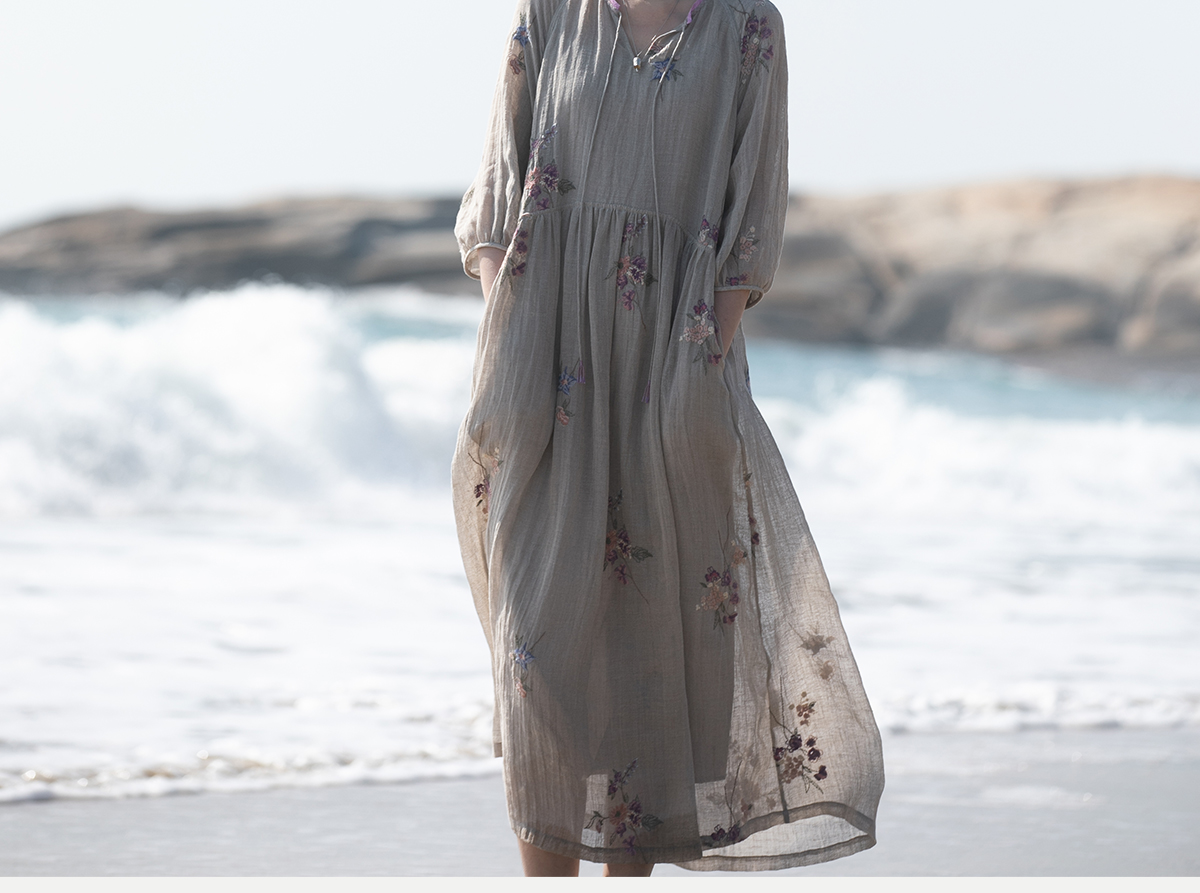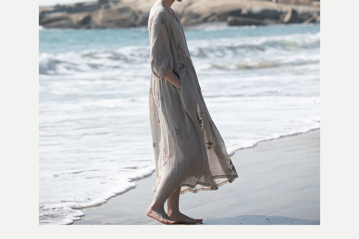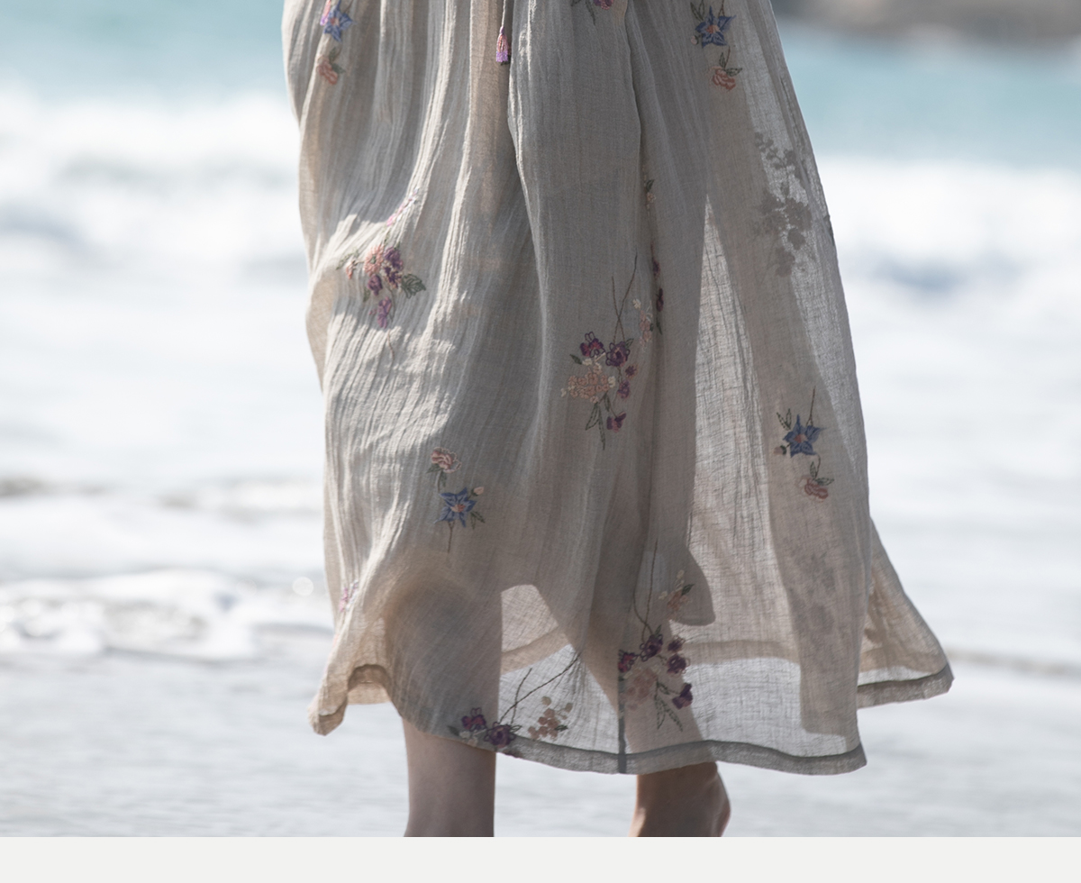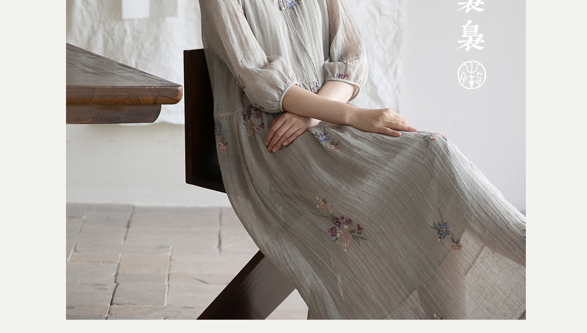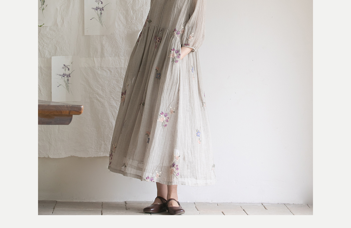 牧衣游原创 匹绣进口亚麻混纺连衣裙 福利款 星河月不支持会员折