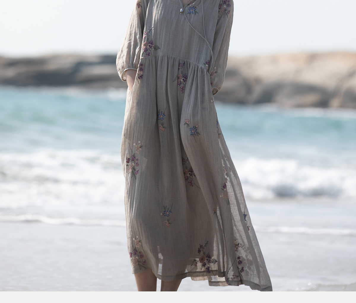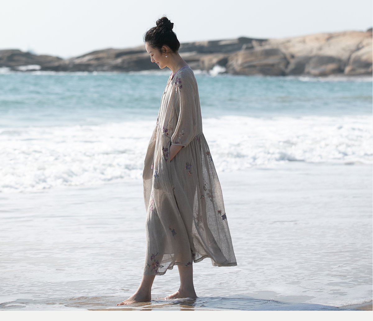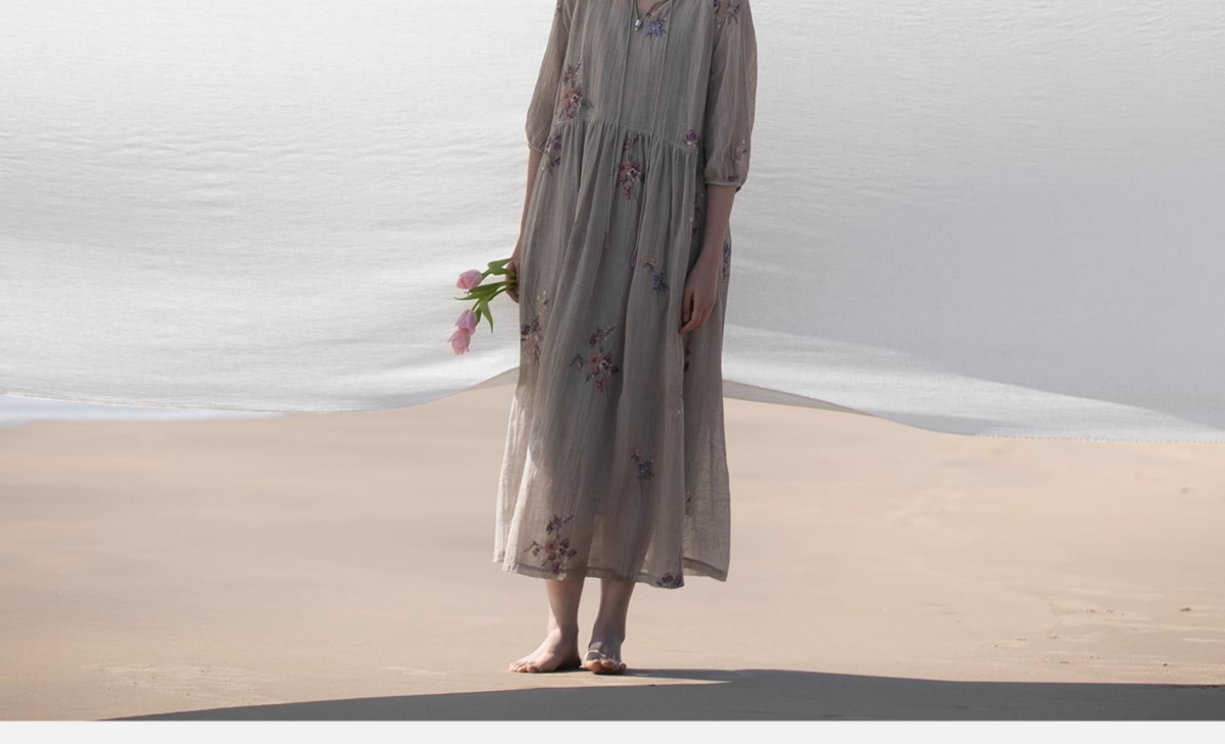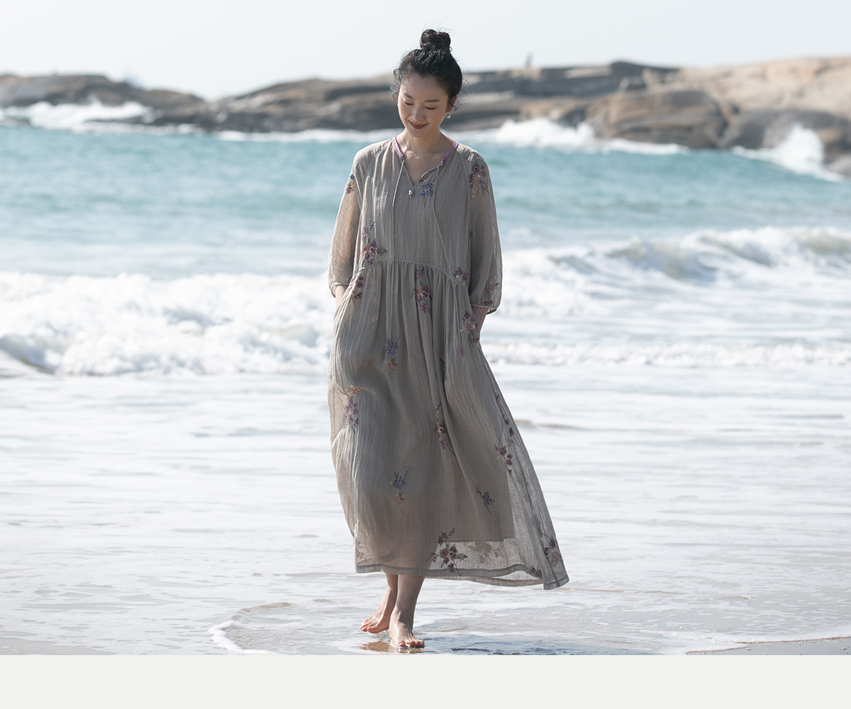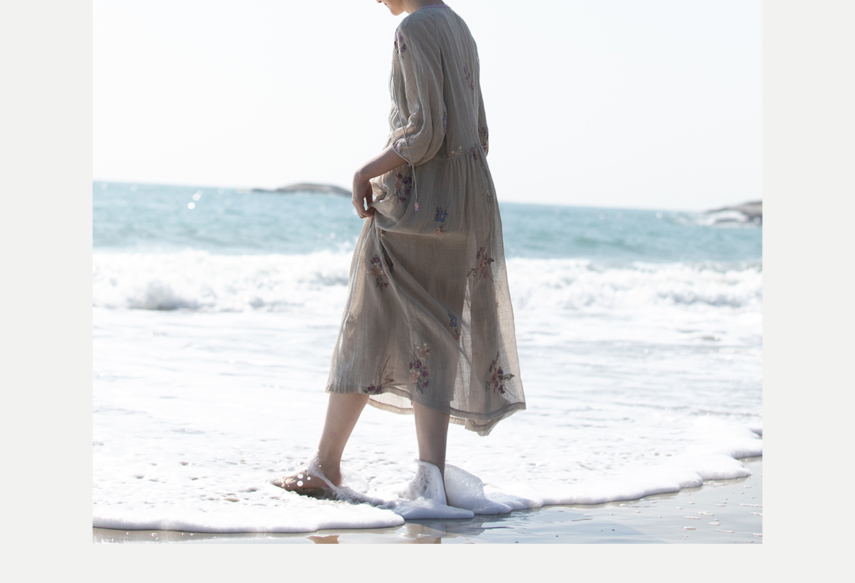 牧衣游原创 匹绣进口亚麻混纺连衣裙 福利款 星河月不支持会员折