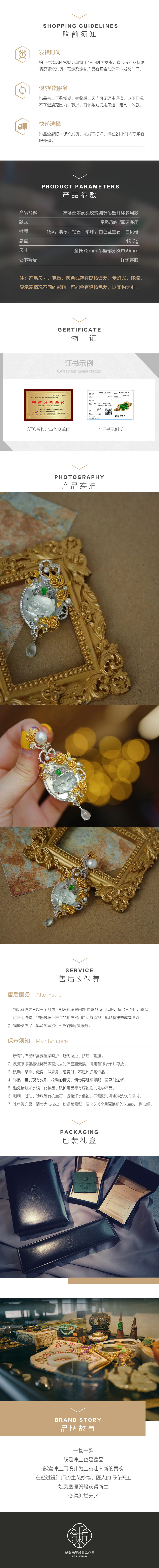龢盒原创 高冰翡翠虎头蔷薇胸针吊坠耳环多用款
