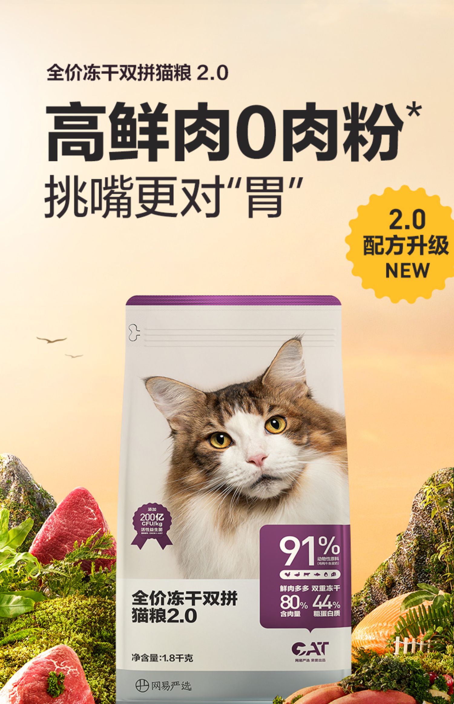 网易严选 全价冻干双拼猫粮 2.0 1.8kg/袋