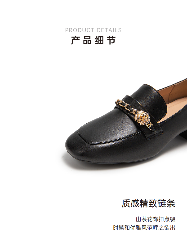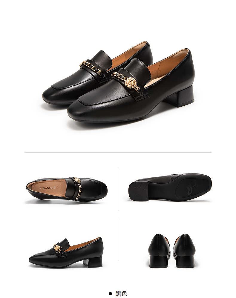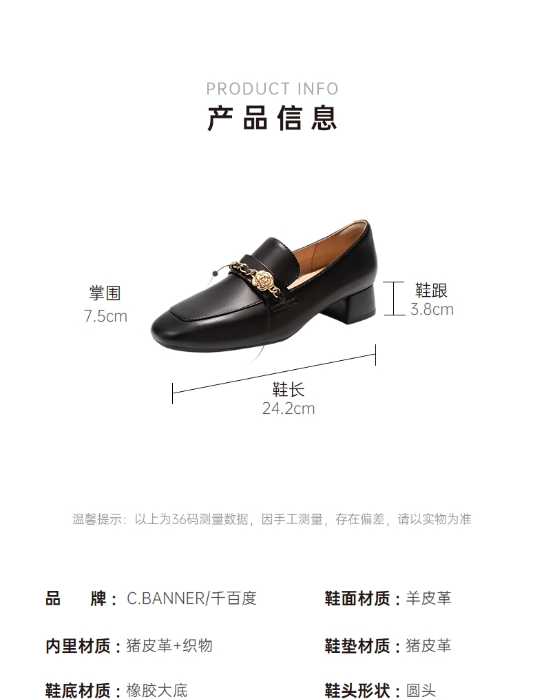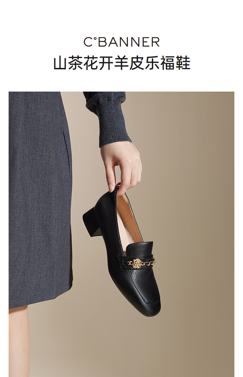 千百度羊皮粗中跟乐福鞋女秋季通勤通勤小皮鞋真皮单鞋A24411950