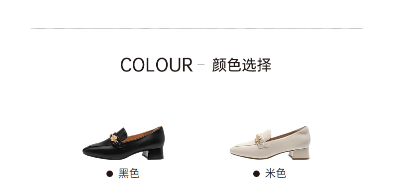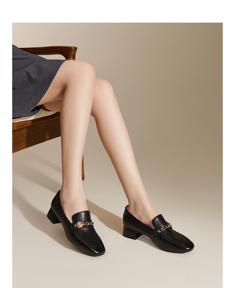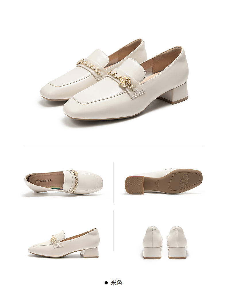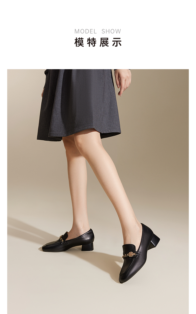 千百度羊皮粗中跟乐福鞋女秋季通勤通勤小皮鞋真皮单鞋A24411950