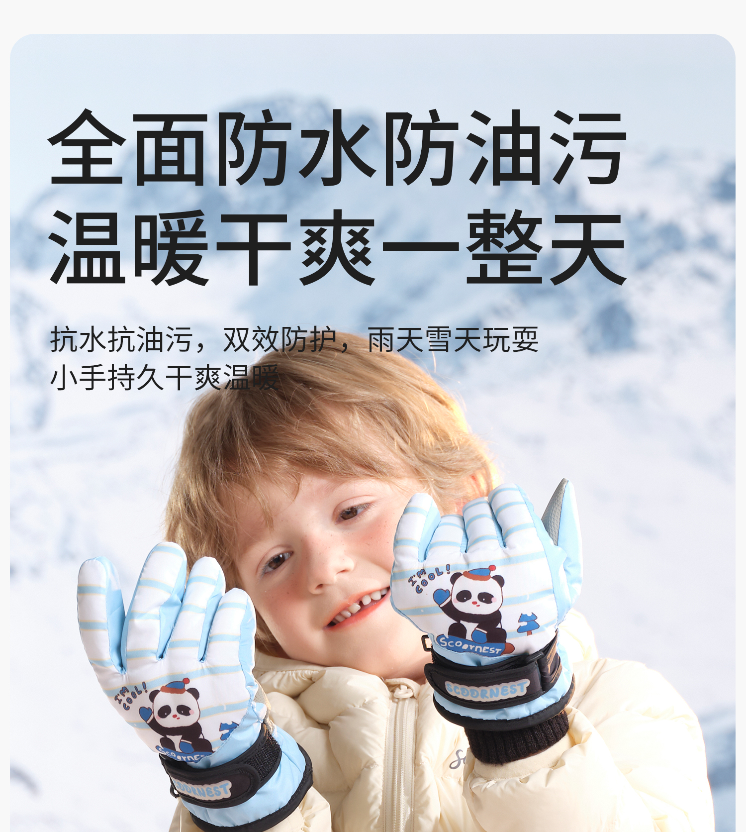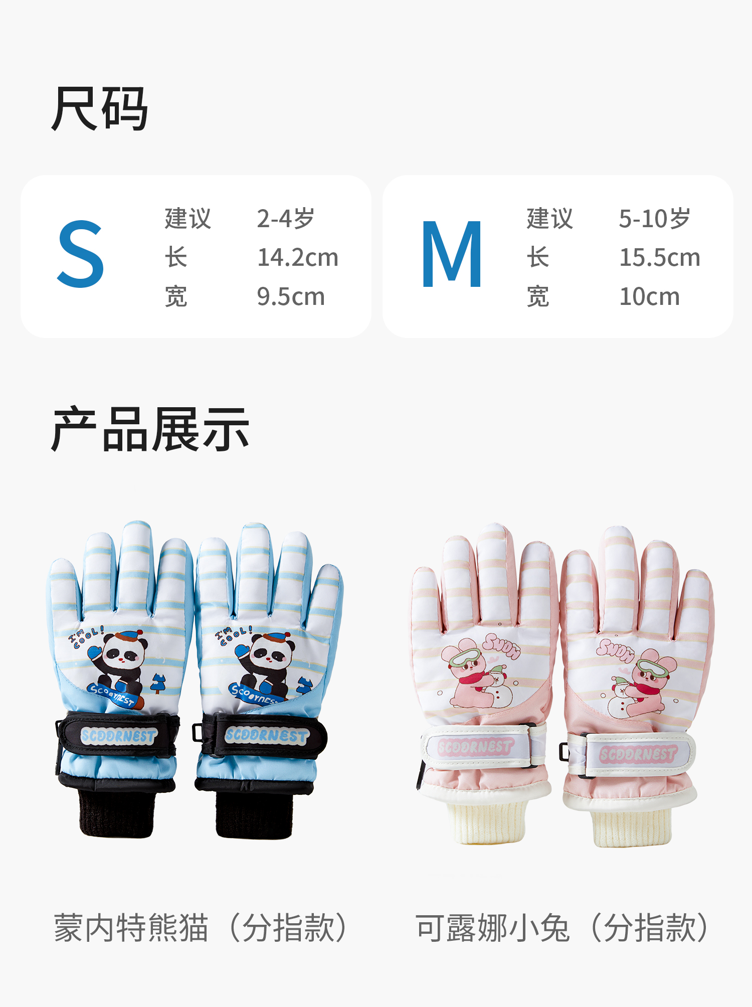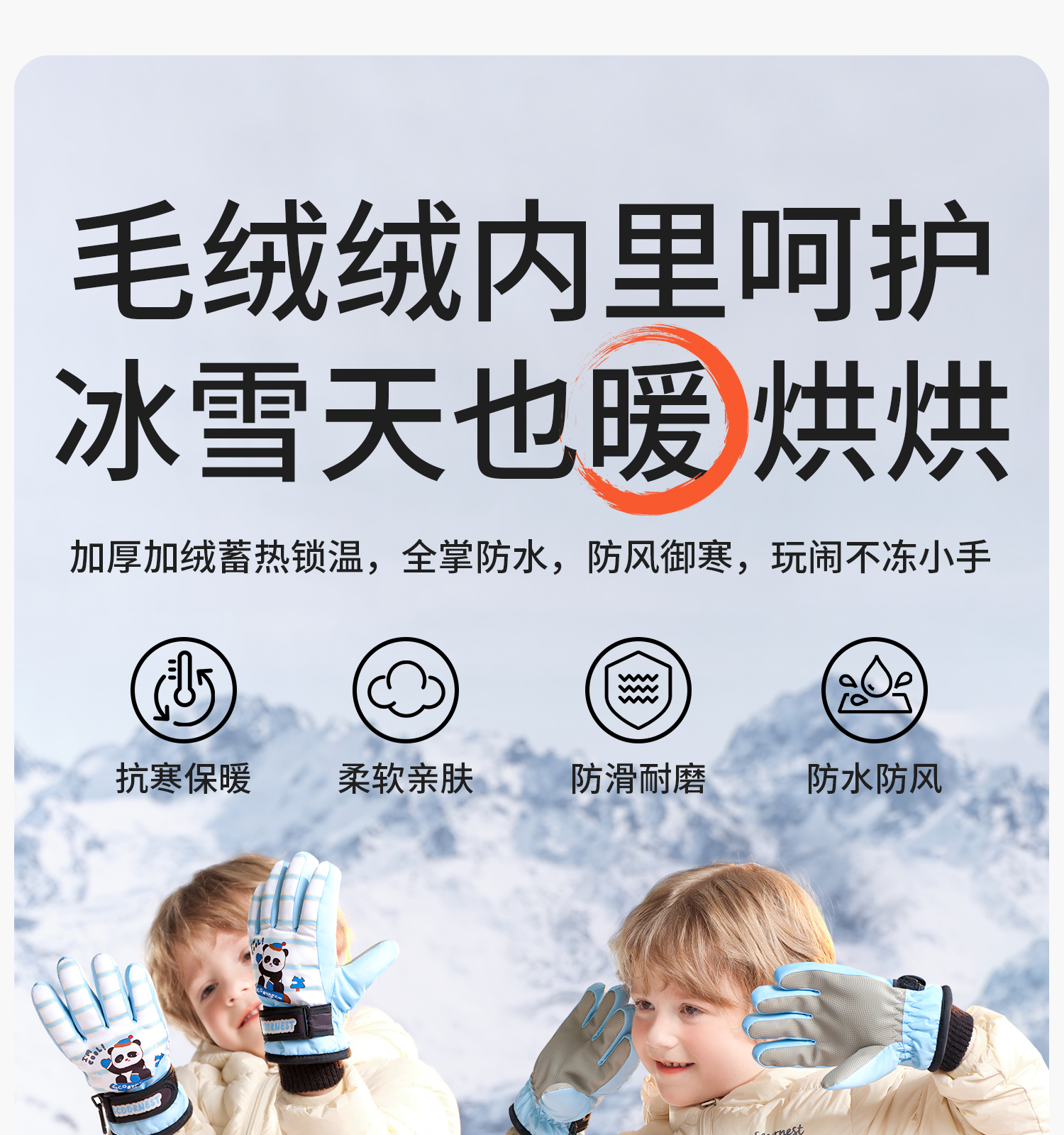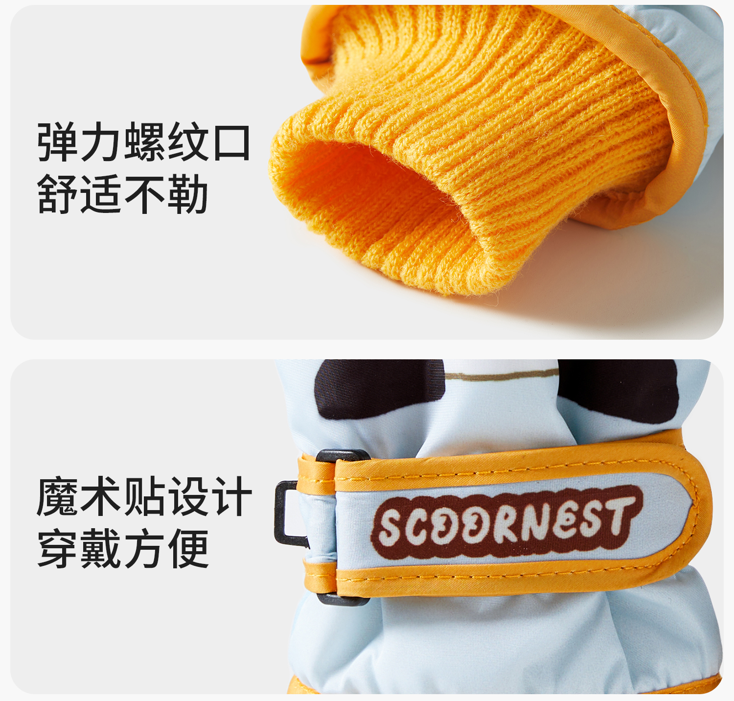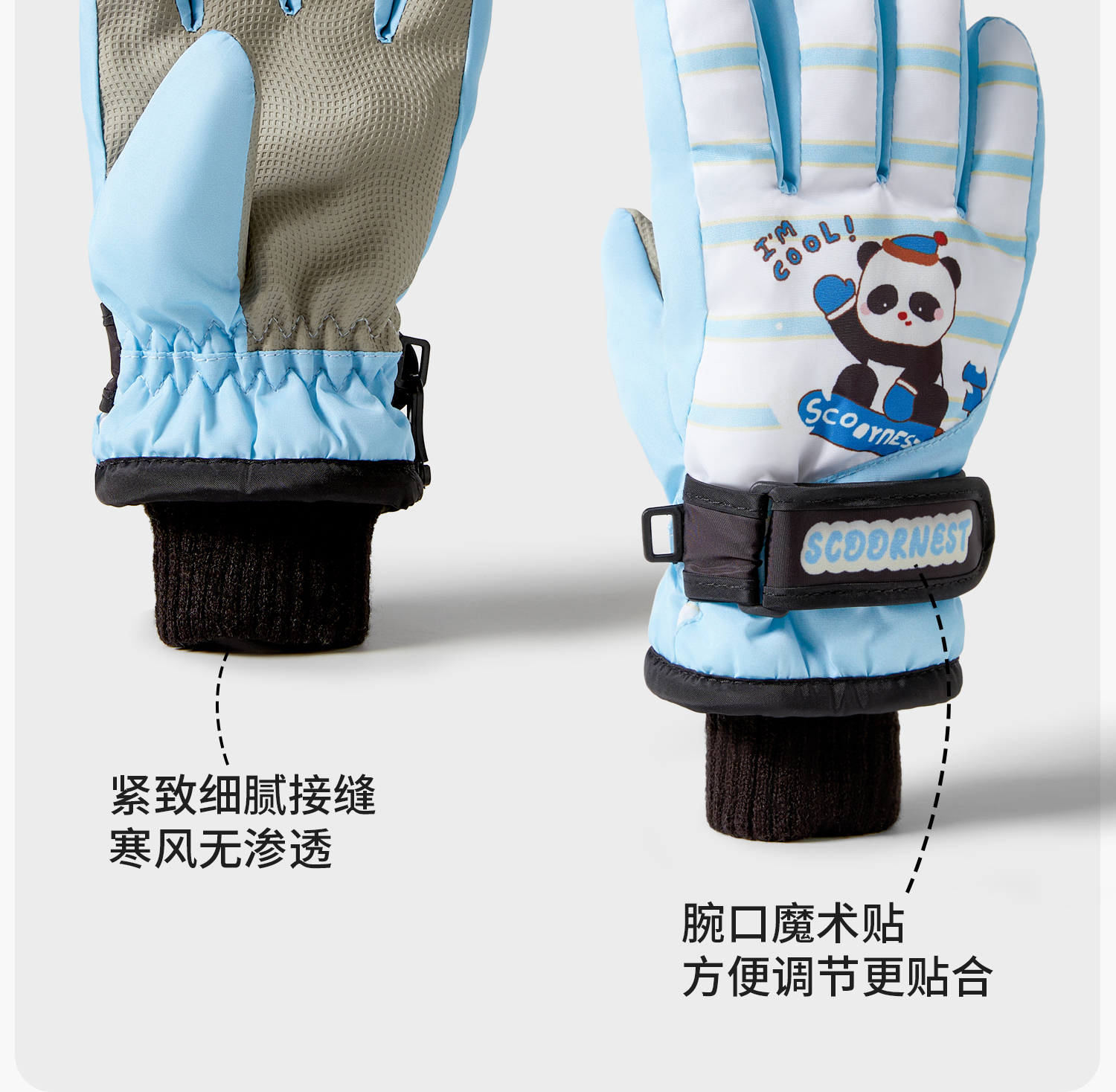 科巢儿童冬季防水手套男童女孩滑雪宝宝加绒保暖玩雪专用防滑防水