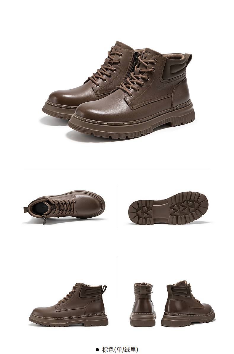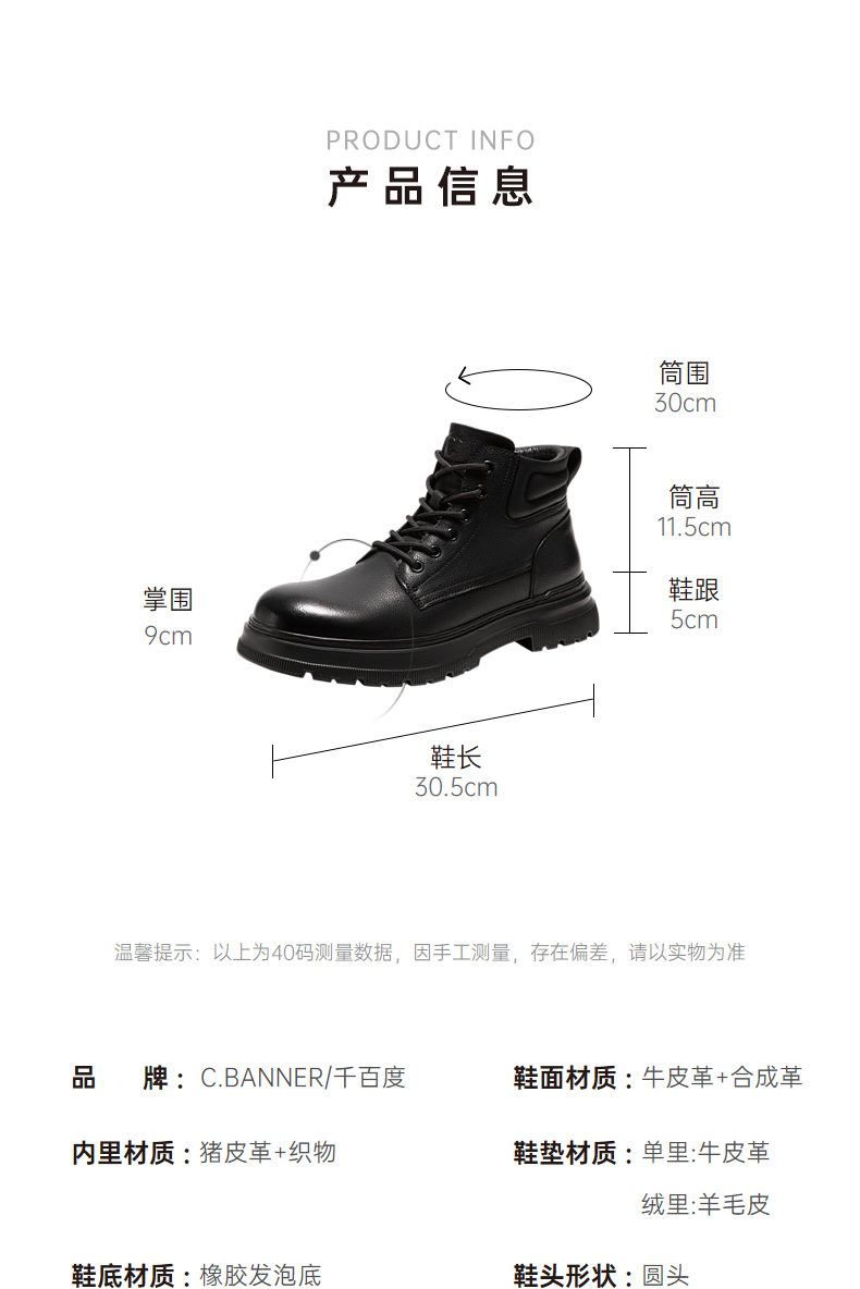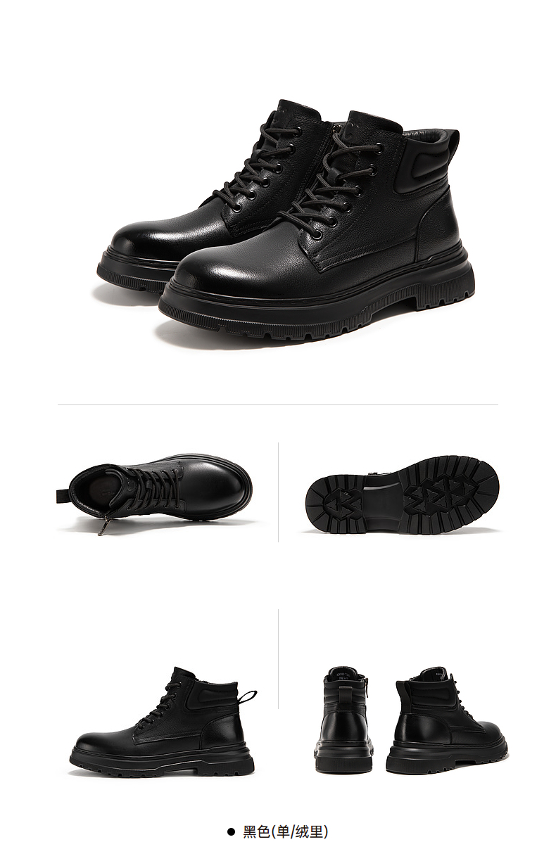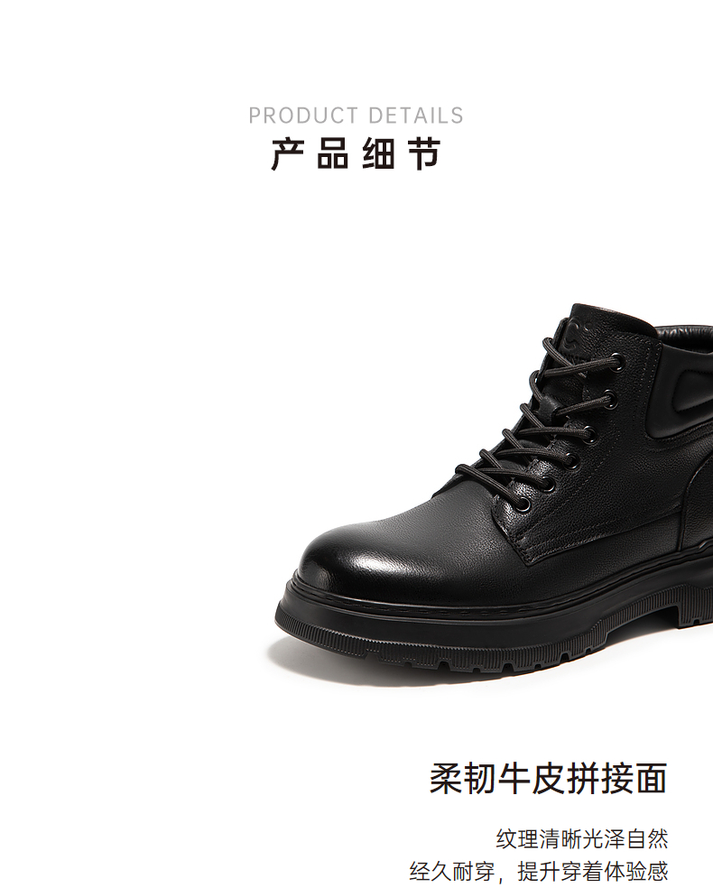 千百度男鞋户外工装靴防滑厚底增高马丁靴冬季保暖短靴子A24599677