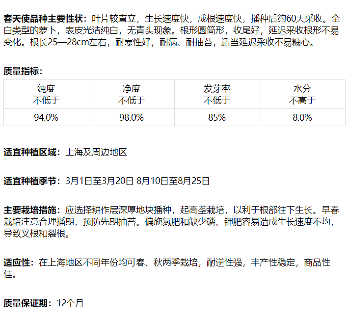 [专业种子] “春天使”萝卜种子