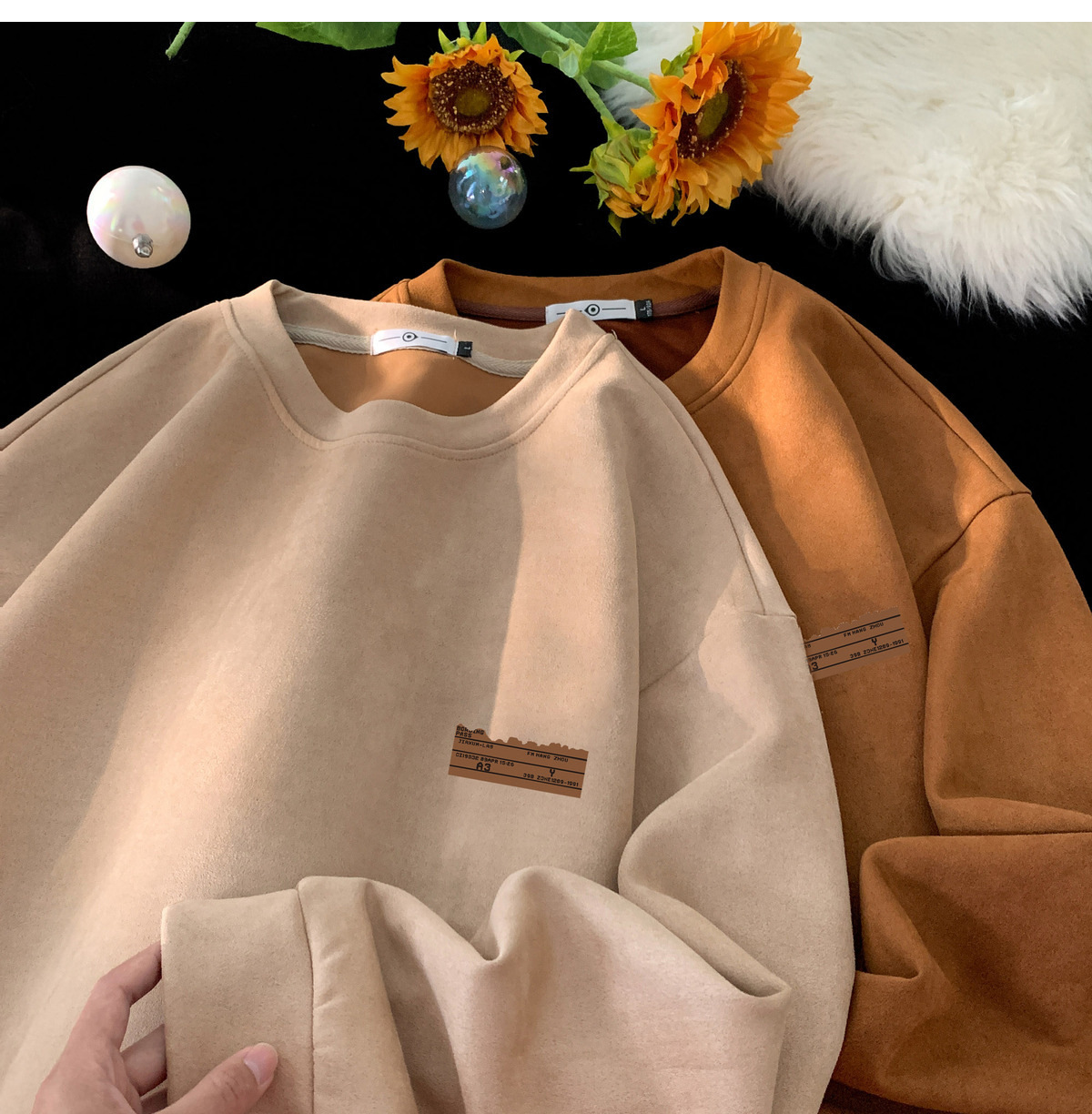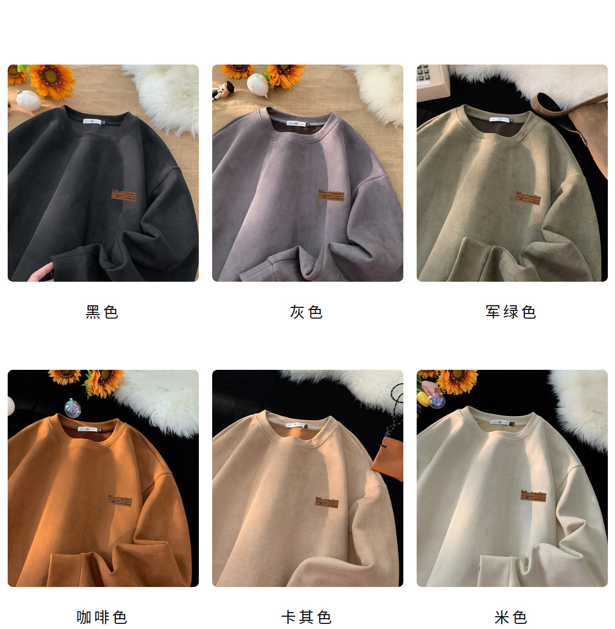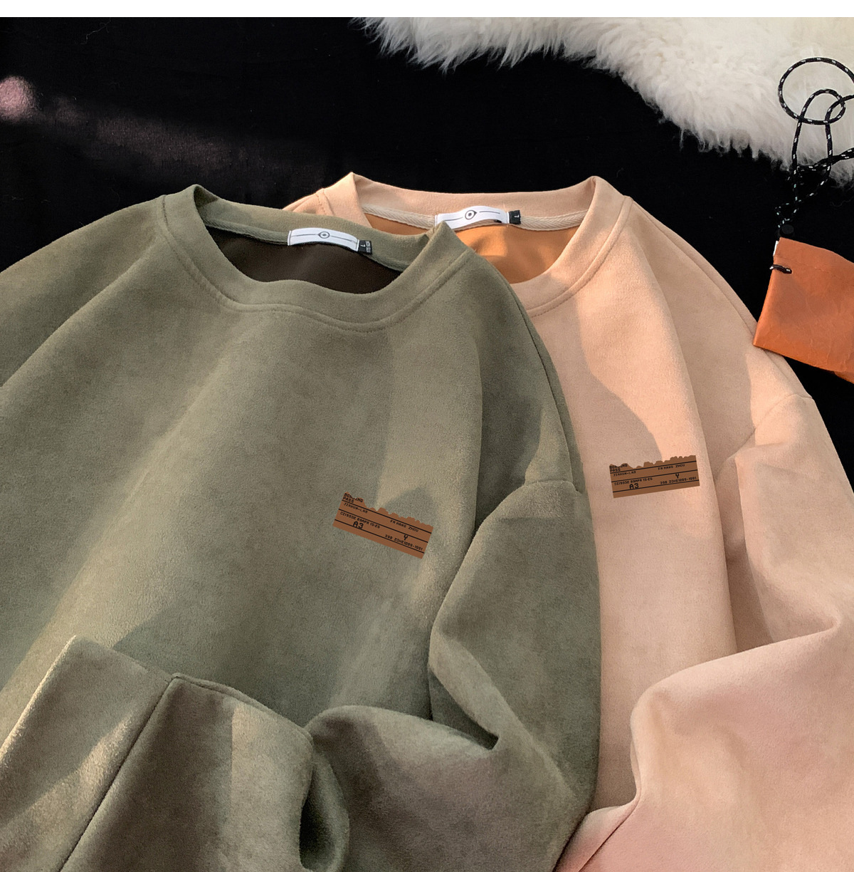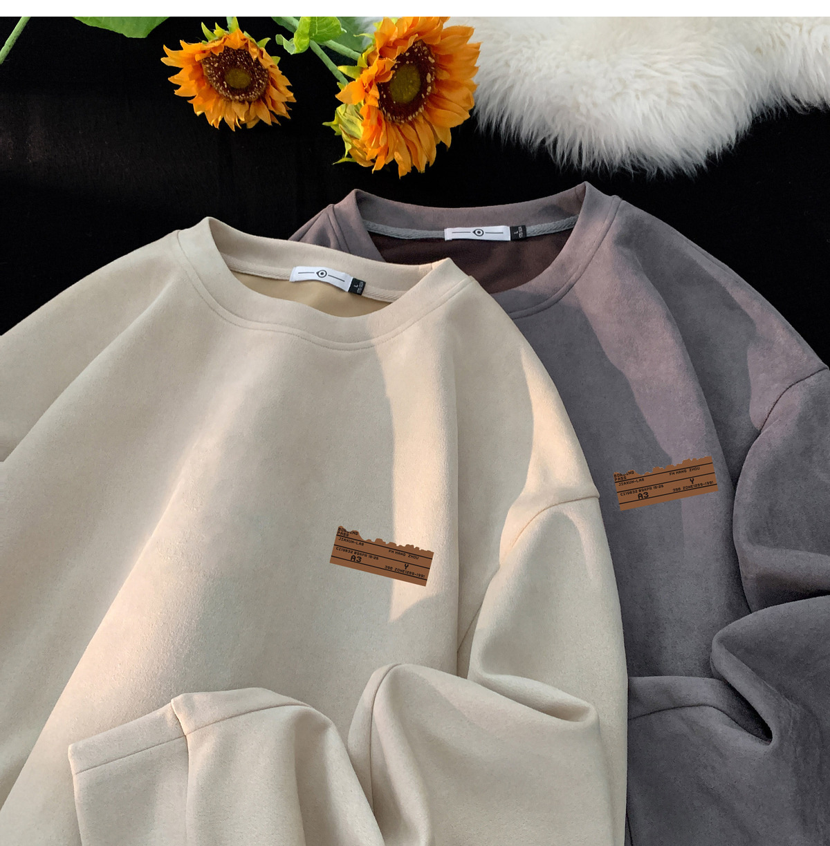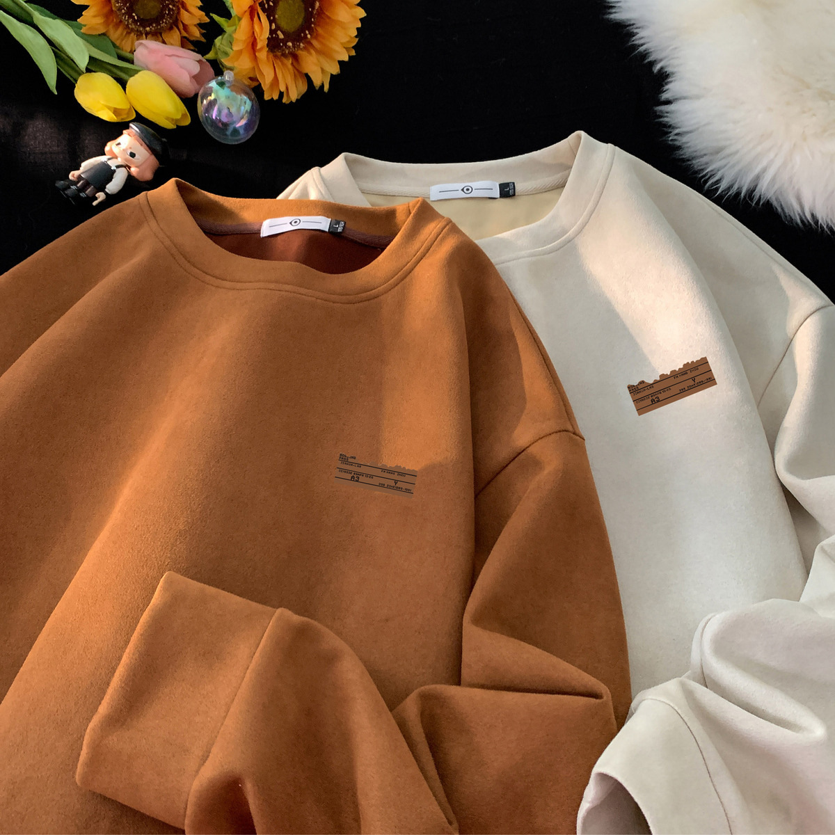 「数色可选」NASA联名麂皮绒卫衣 男春秋季美式潮牌宽松圆领上衣套头打底衫长袖