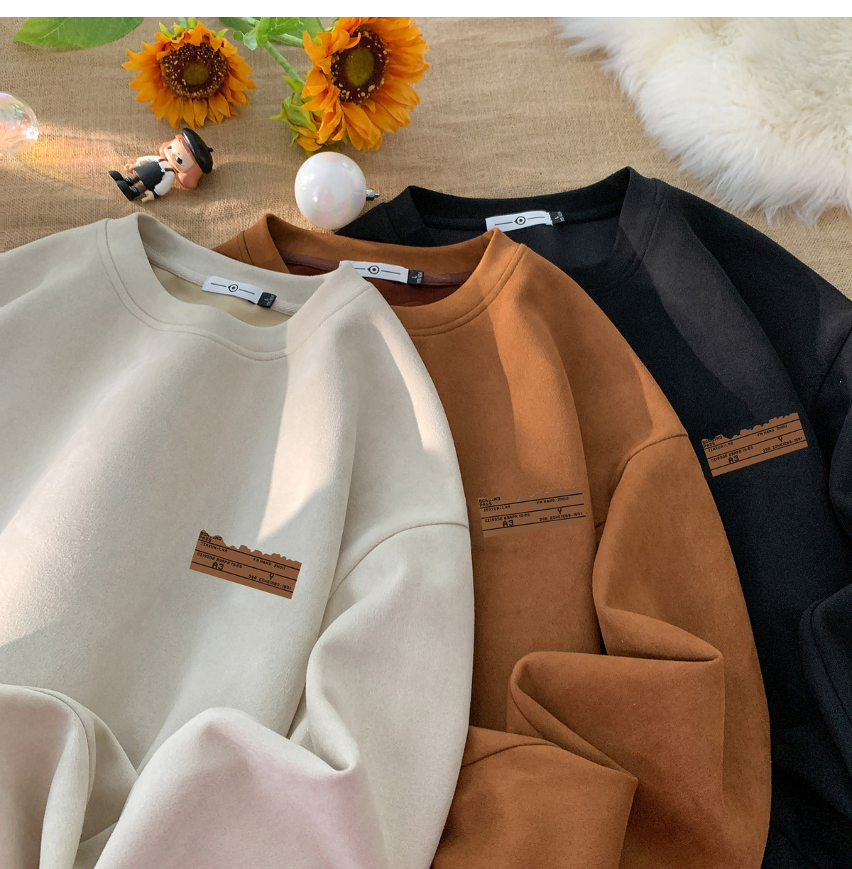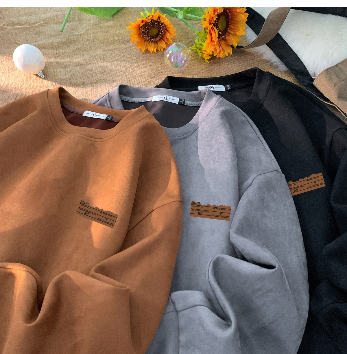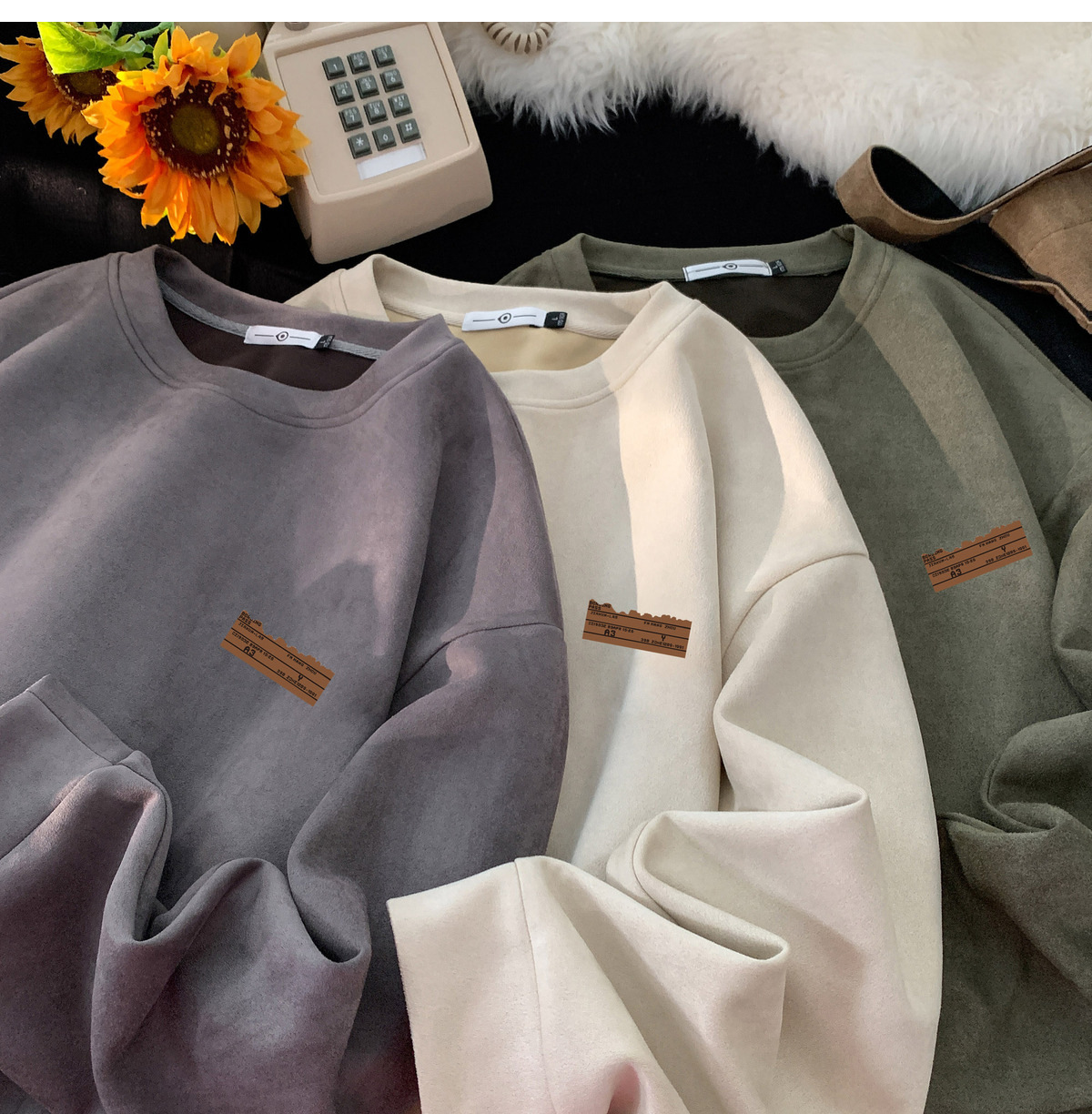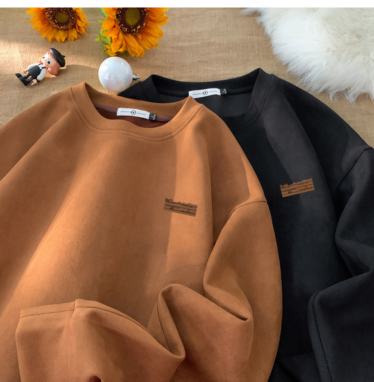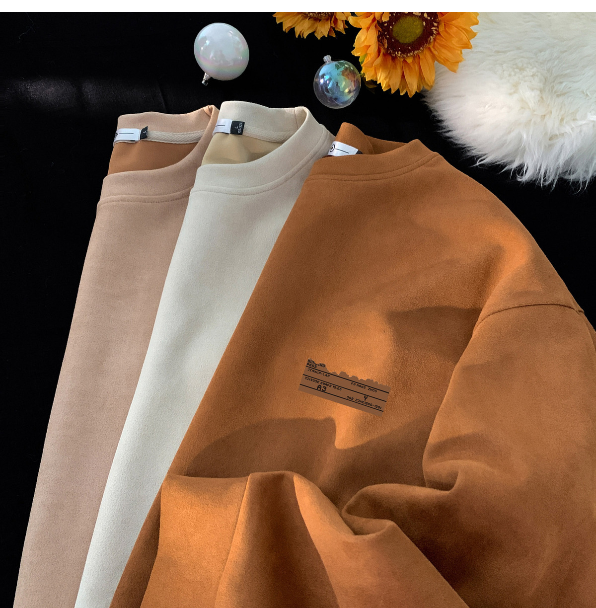 「数色可选」NASA联名麂皮绒卫衣 男春秋季美式潮牌宽松圆领上衣套头打底衫长袖