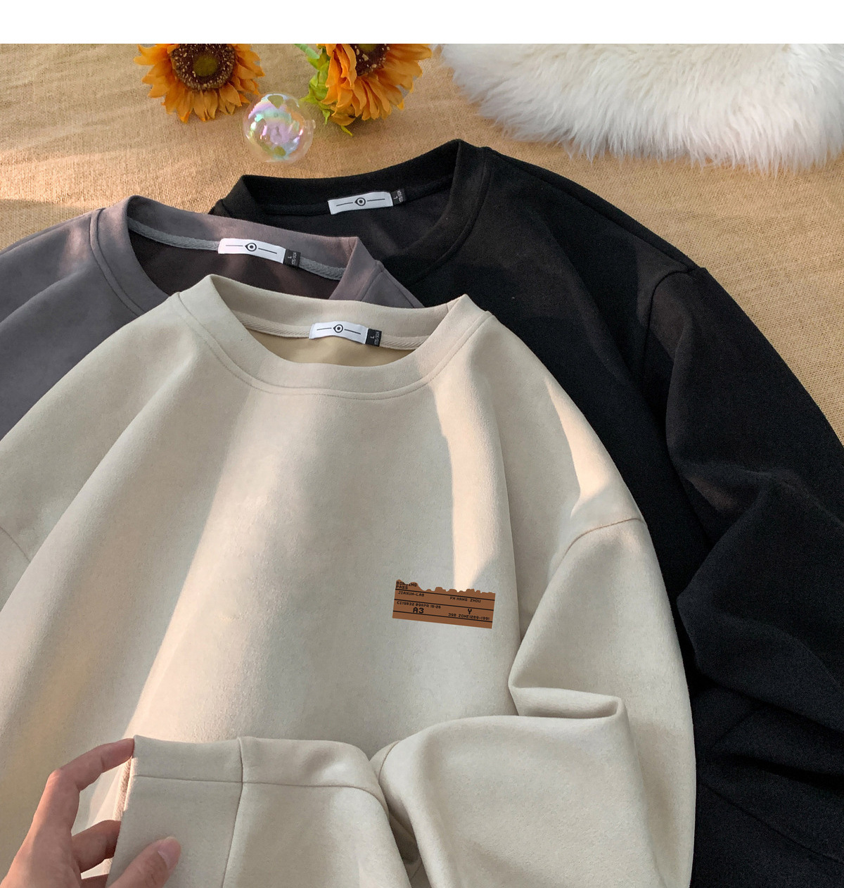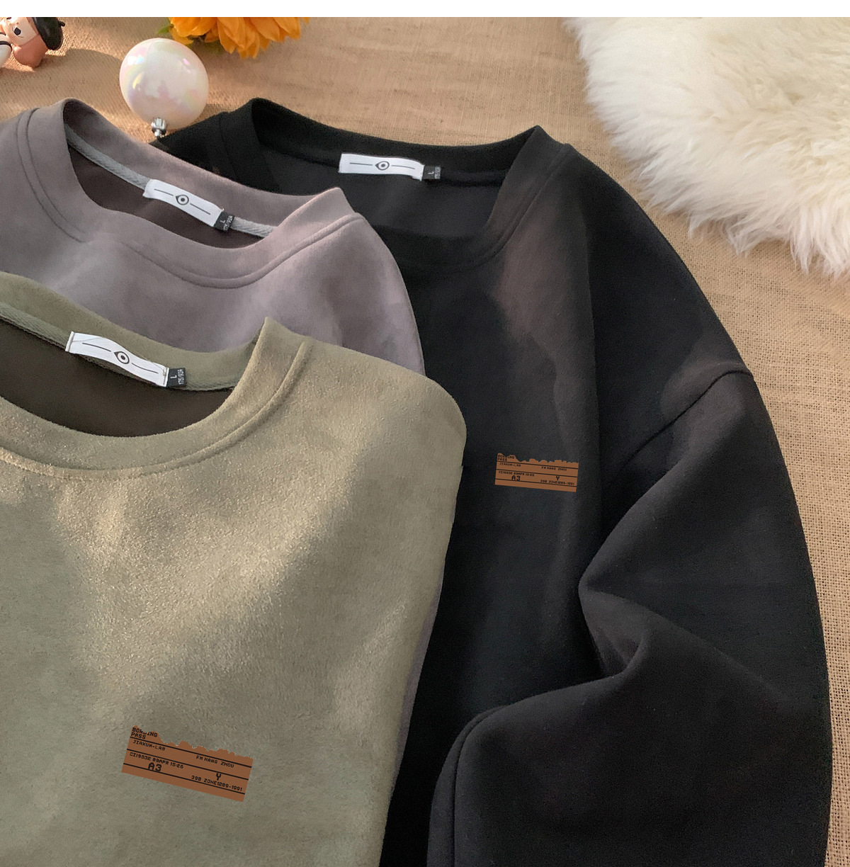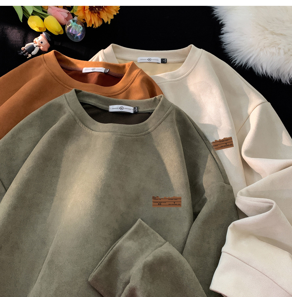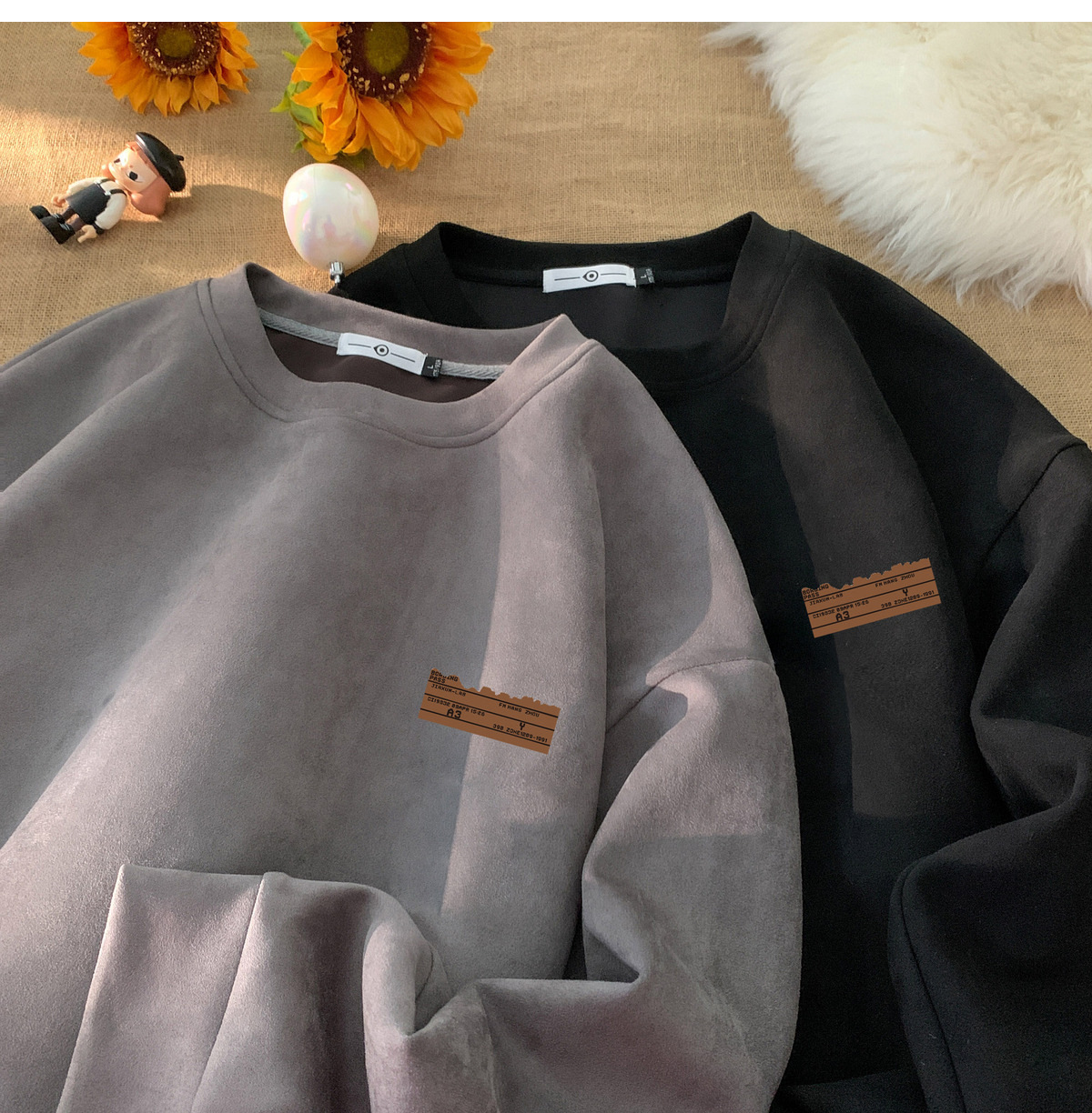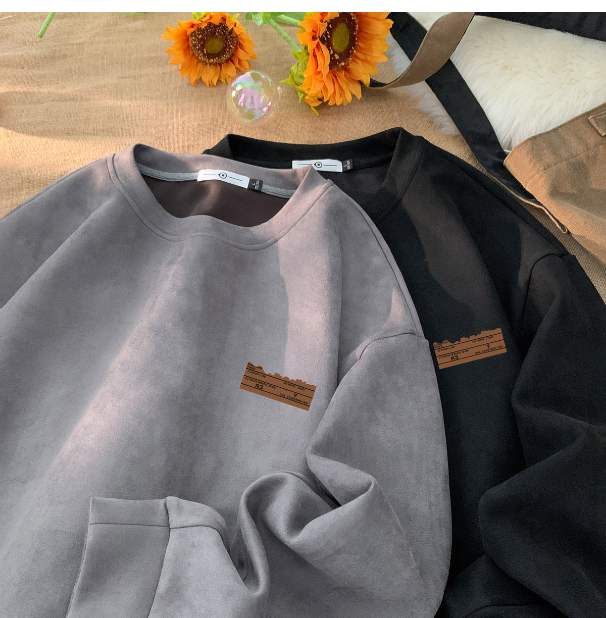 「数色可选」NASA联名麂皮绒卫衣 男春秋季美式潮牌宽松圆领上衣套头打底衫长袖