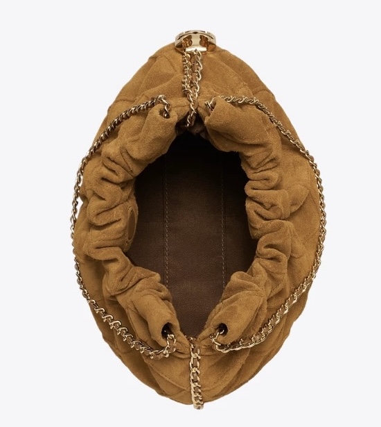 TORY BURCH汤丽柏琦 FLEMING迷你HOBO流浪包 166066-200菊苣棕色 Fleming迷你流浪包,自在随性,搭配菱格褶饰图案与编织链条肩带,更显大气时尚。