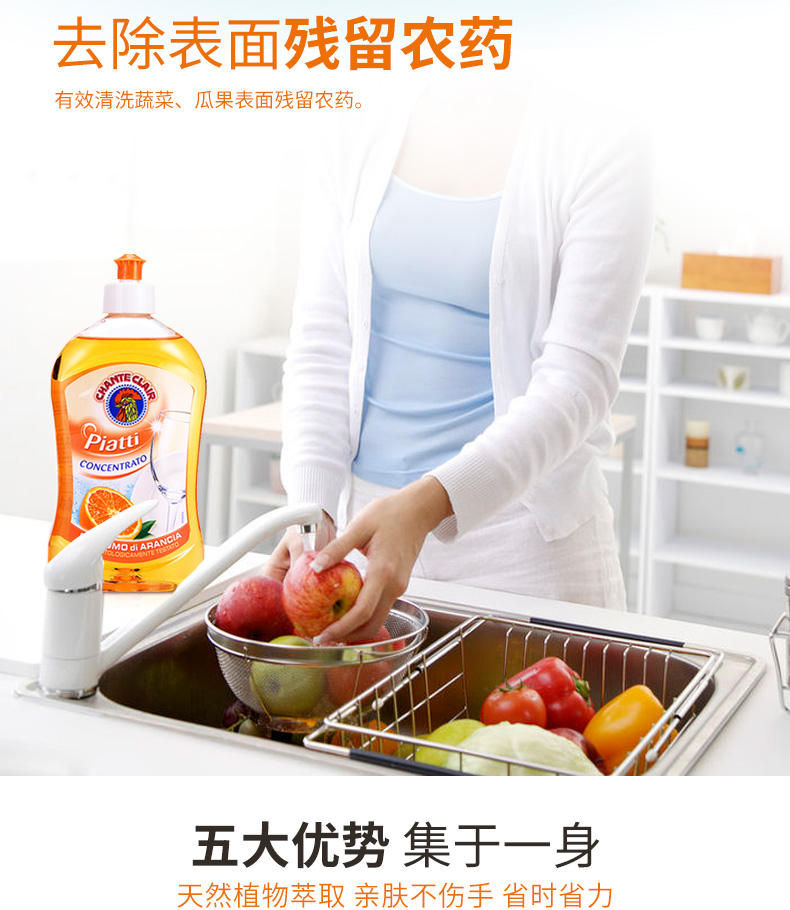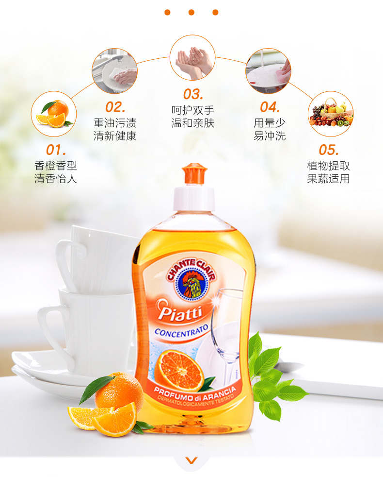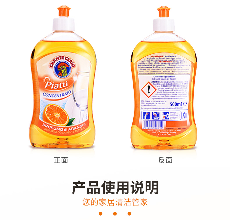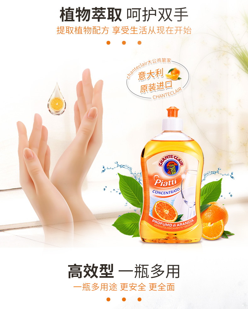 大公鸡管家 CHANTECLAIR 浓缩香橙洗洁精 护手润肤 (意大利进口) 500ml