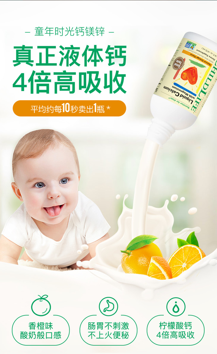 【保税直供】童年时光 美国CHILDLIFE 钙镁锌营养液 473ml