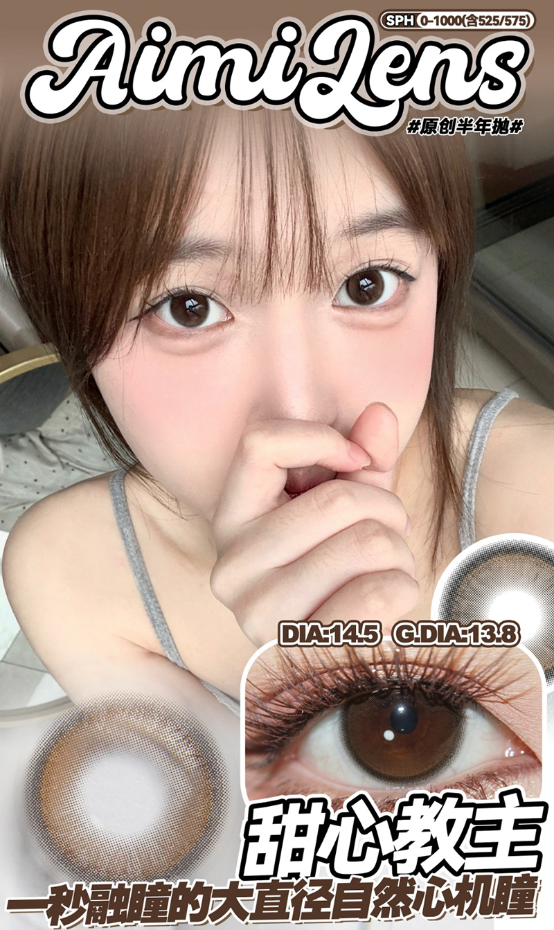Aimilens 甜心教主 半年抛 两片 14.5mm 参考着色 13.8mm 基弧 8.6 含水 38% 新锐国货