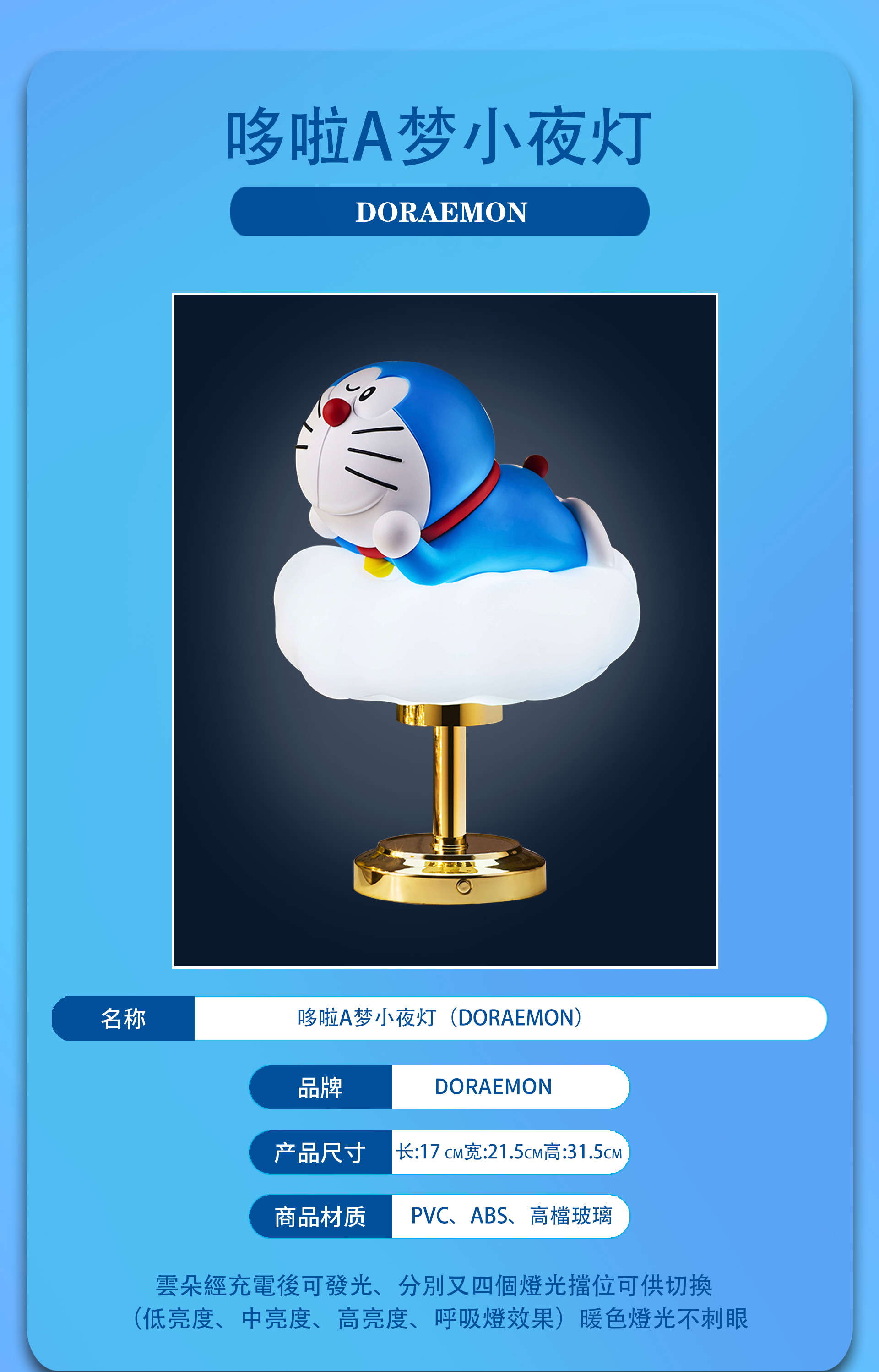 哆啦A梦小夜灯 叮当猫趴姿云朵灯床头灯[福利品]