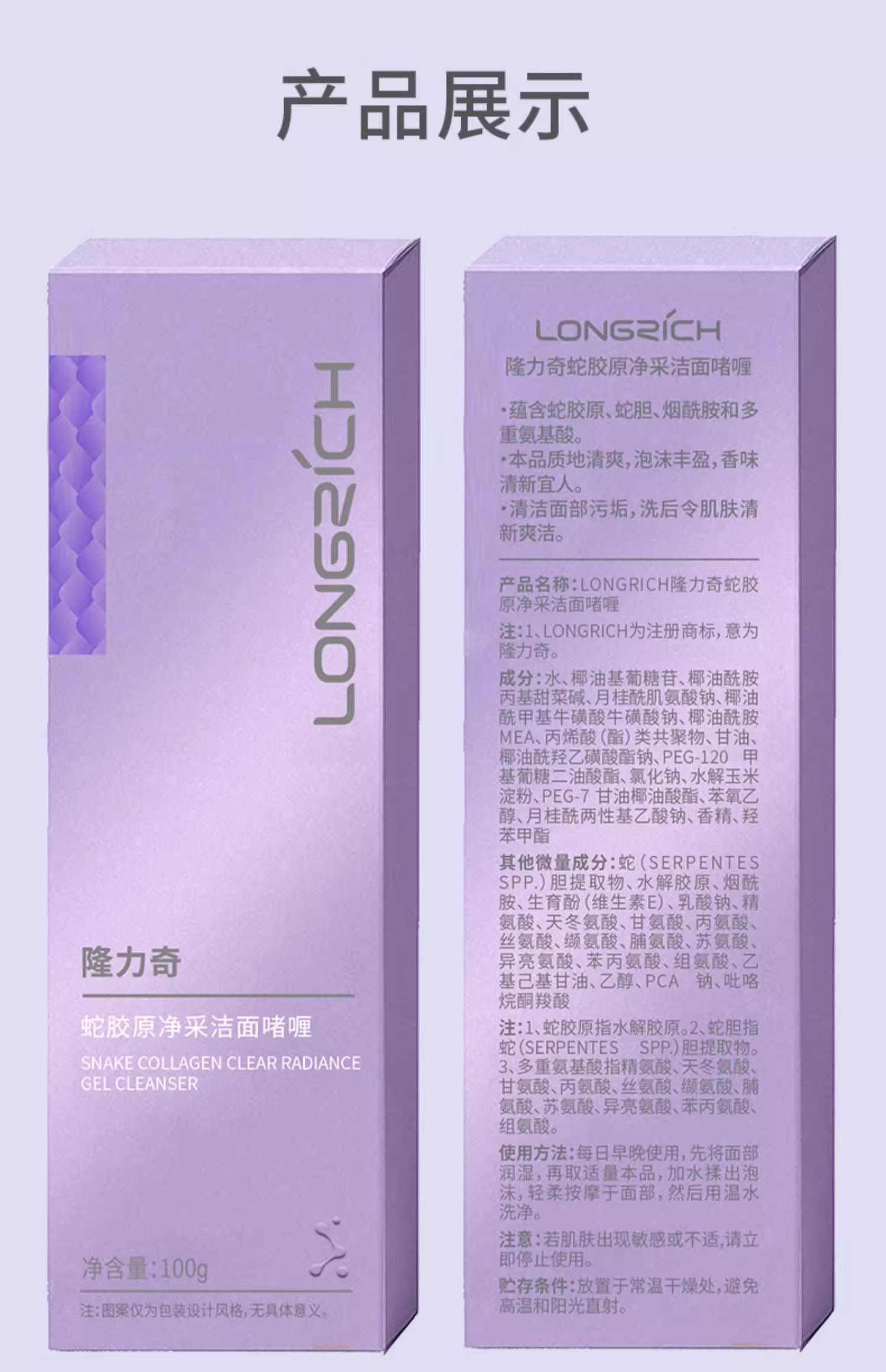 隆力奇蛇胶原净采洁面啫喱洗面奶润肤清洁补水保湿官方正品洁面乳
