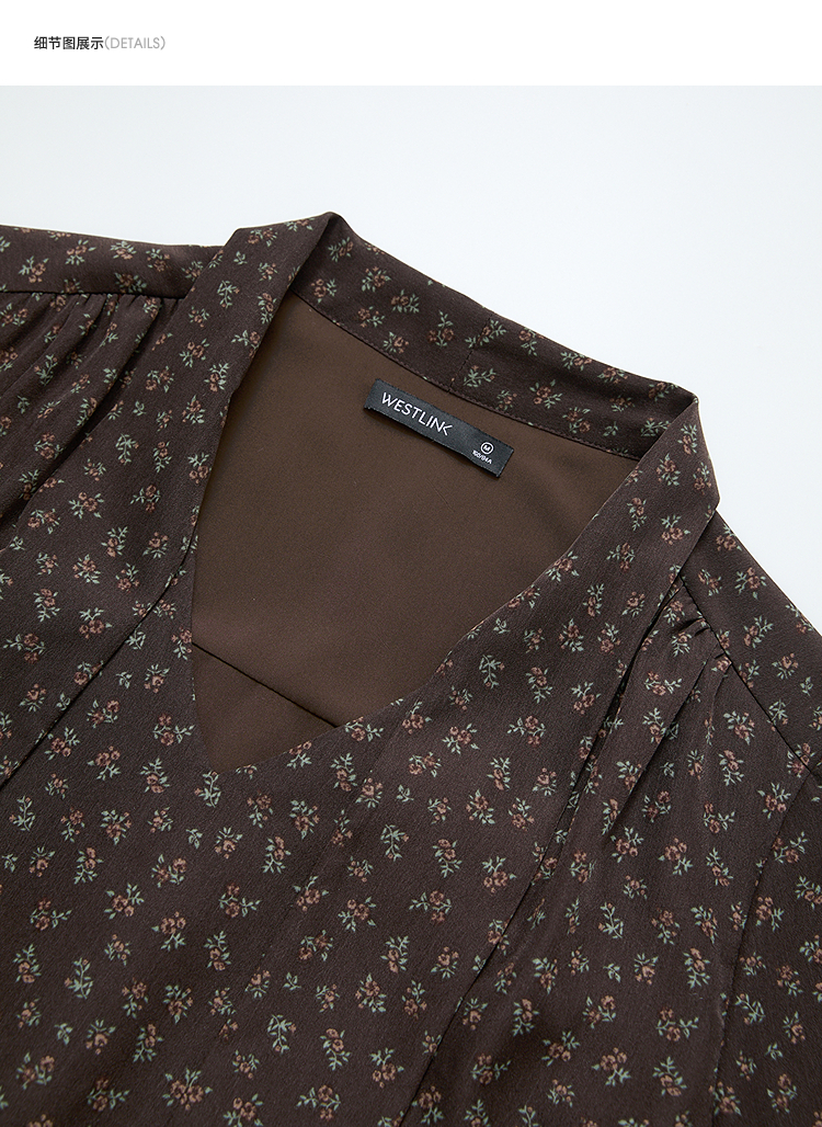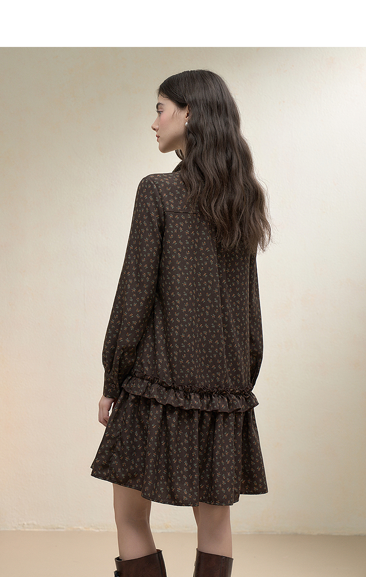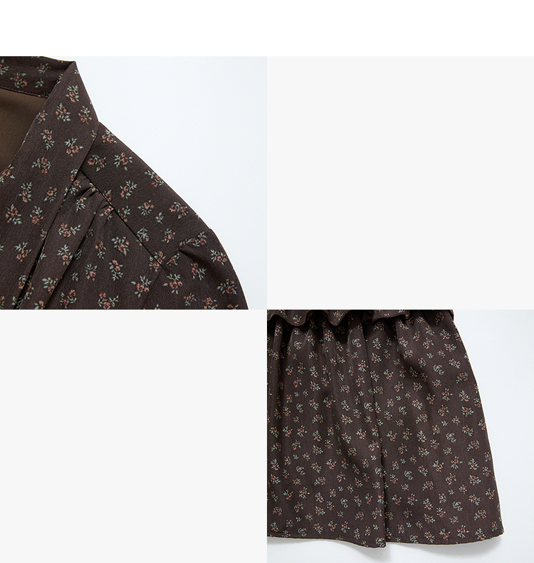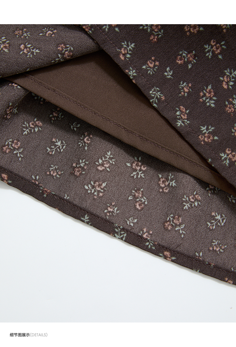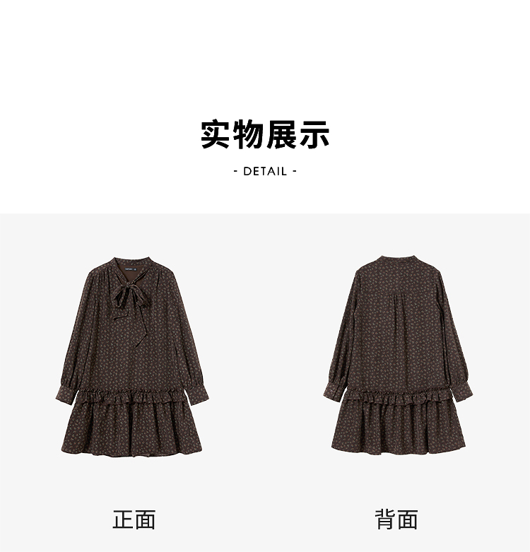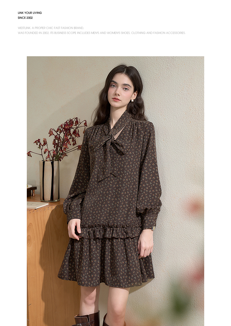 西遇美拉德法式复古碎花连衣裙女秋季蝴蝶结显瘦长袖中长裙V2851219