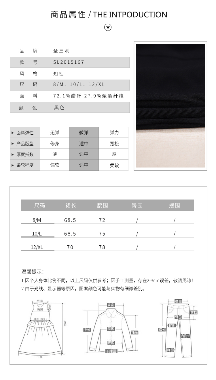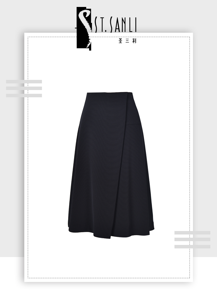 圣三利女装 新品醋酸A字摆中长款纯色半身裙SL2015167