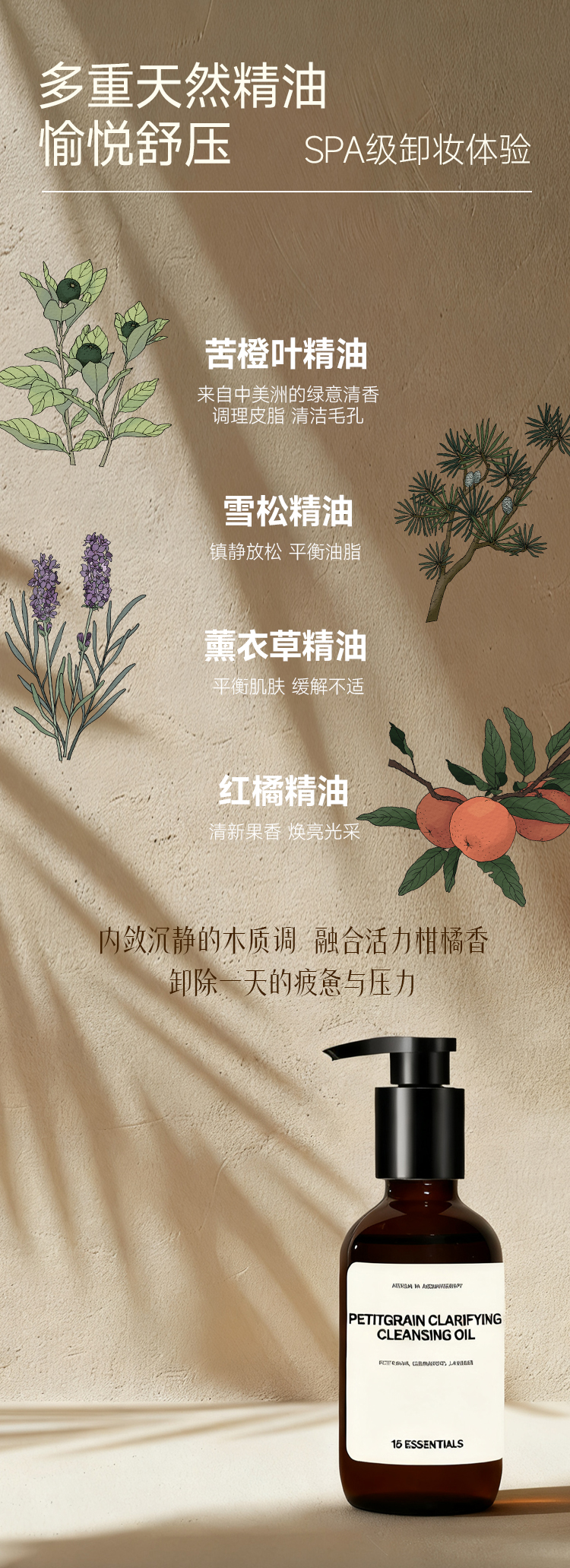 【精油养卸 水感速溶 深层清洁】苦橙叶卸妆精油 120ml 15元素