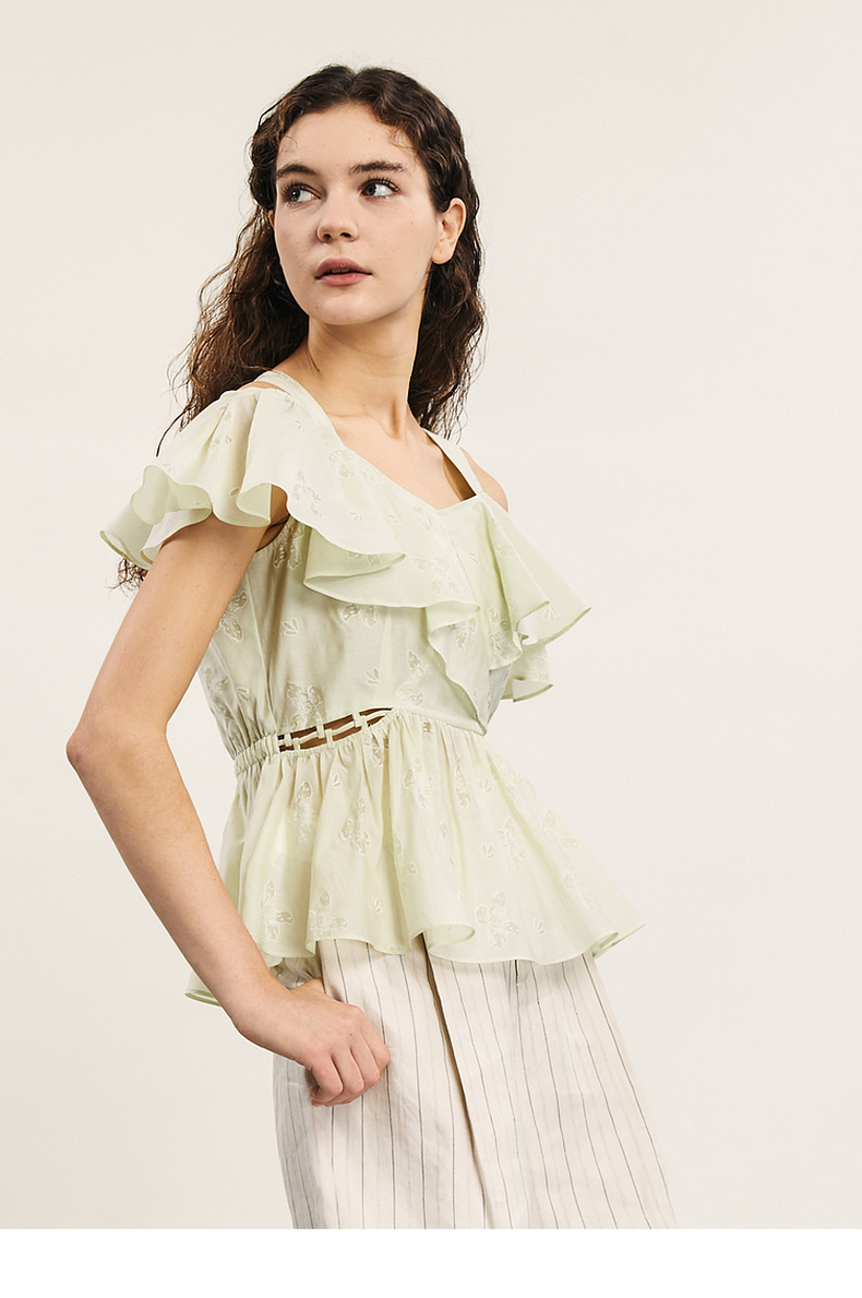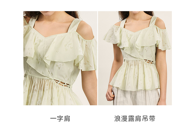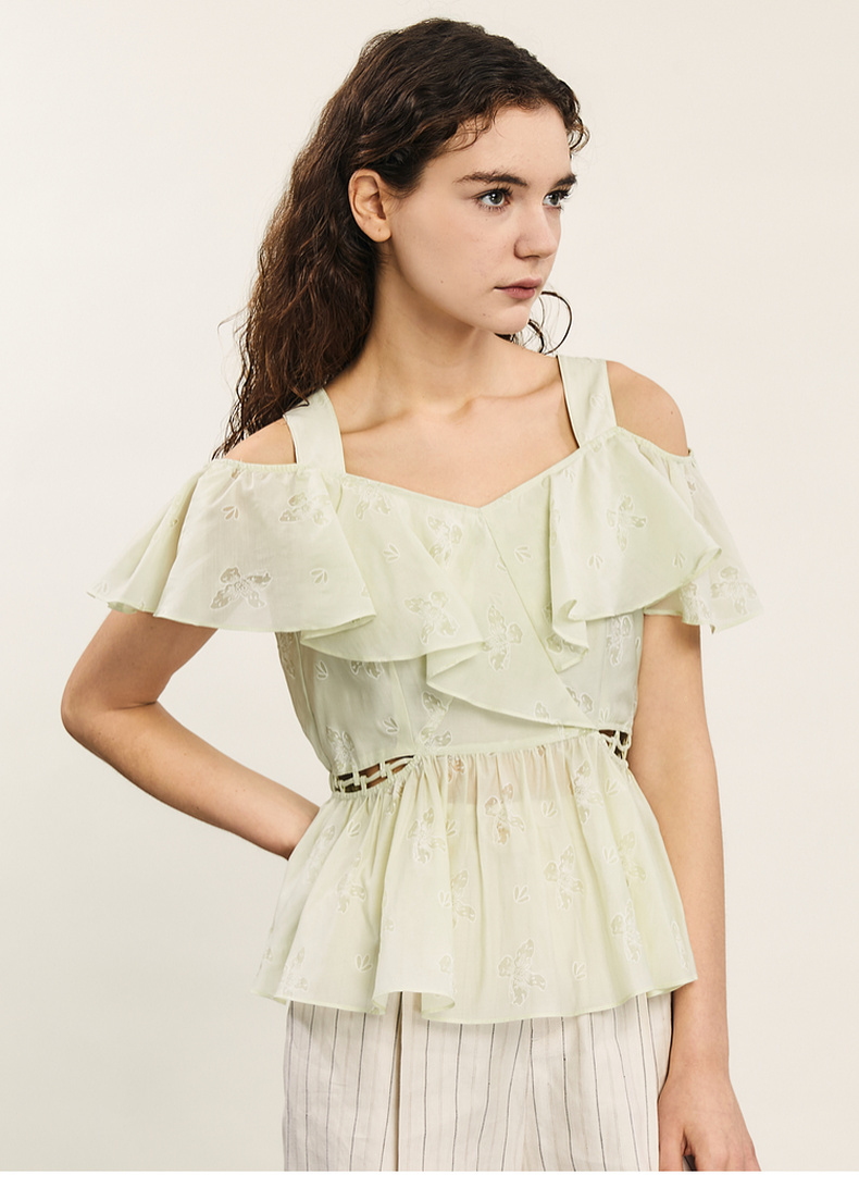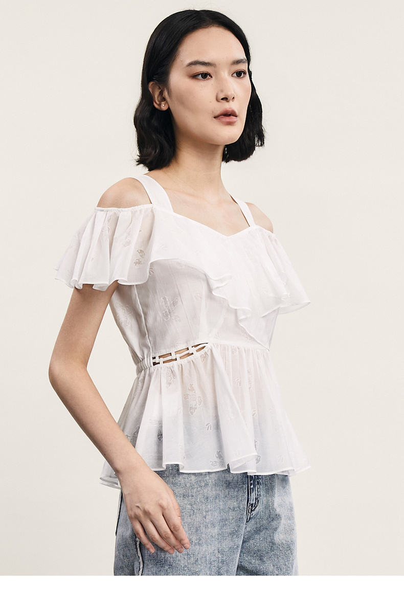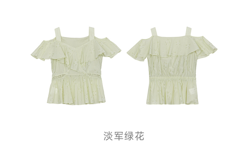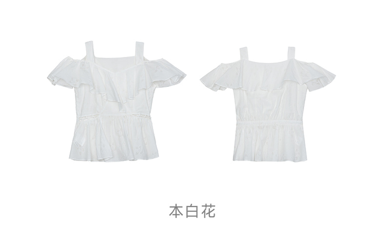 谜底露肩上衣短袖女2024年夏季新品浪漫少女感亲肤小衫242MS0667
