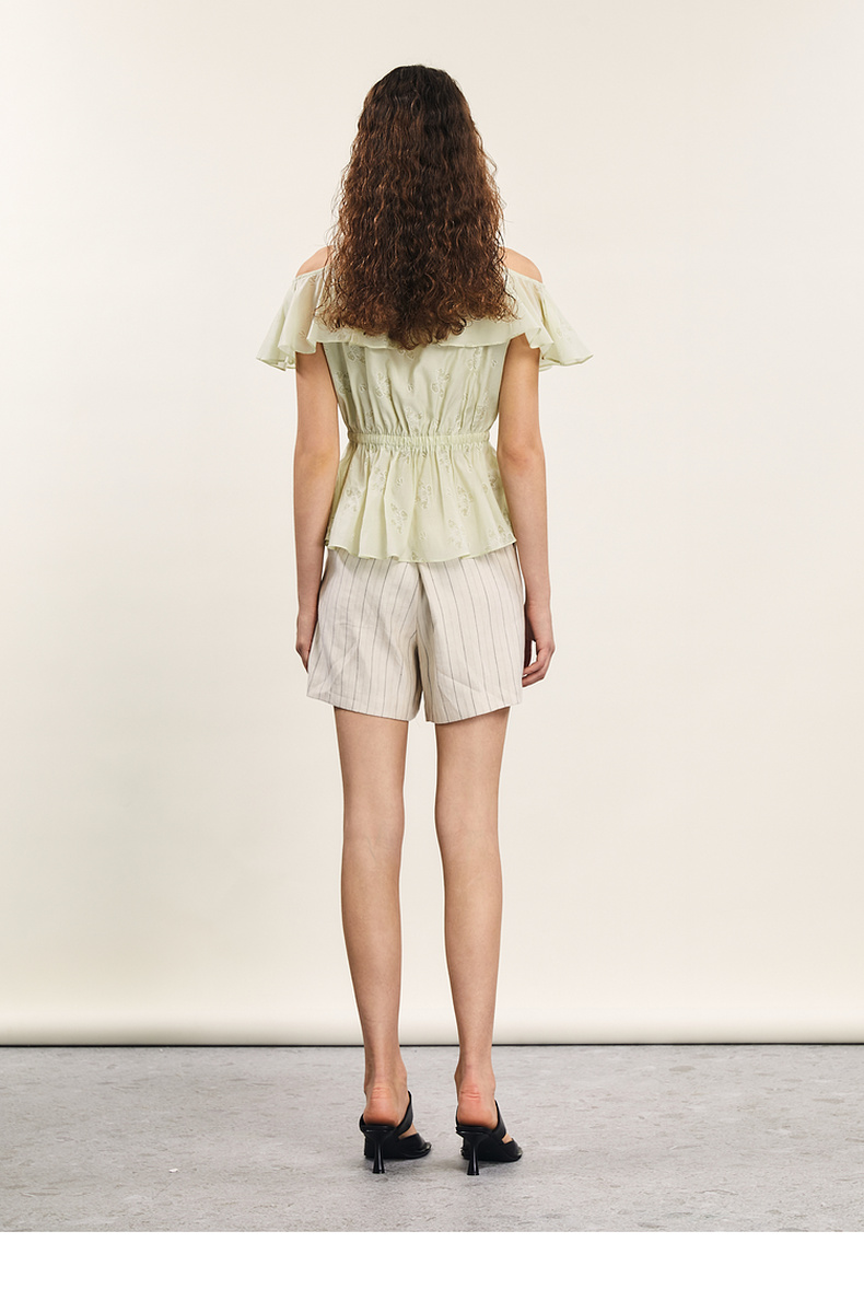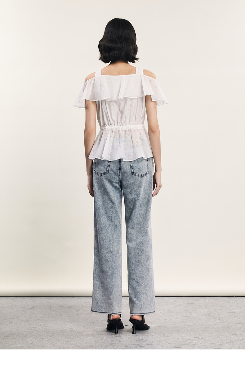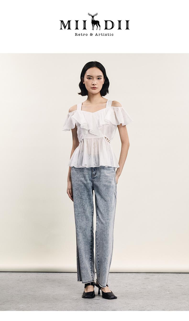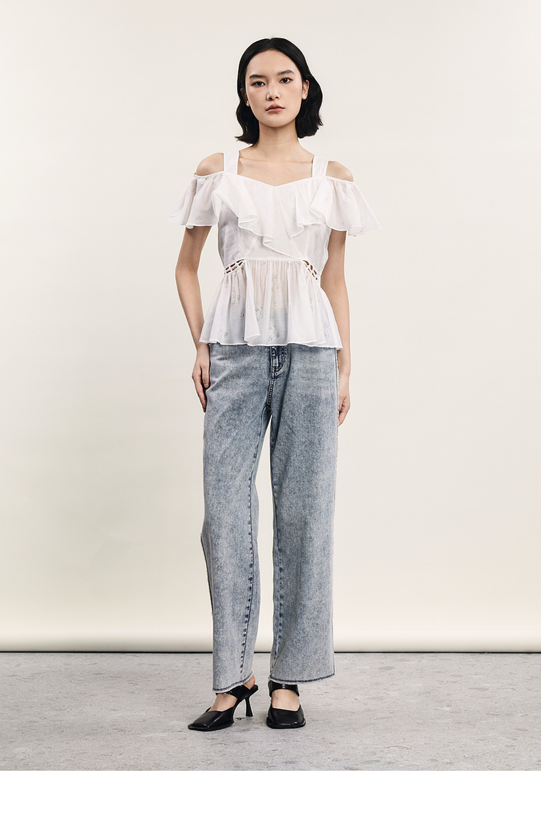谜底露肩上衣短袖女2024年夏季新品浪漫少女感亲肤小衫242MS0667