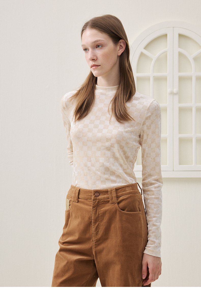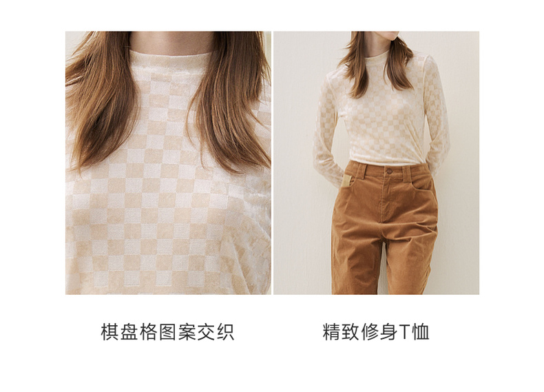 谜底紧身打底丝绒T恤长袖2025年冬季新品复古时髦弹力女254MT1456
