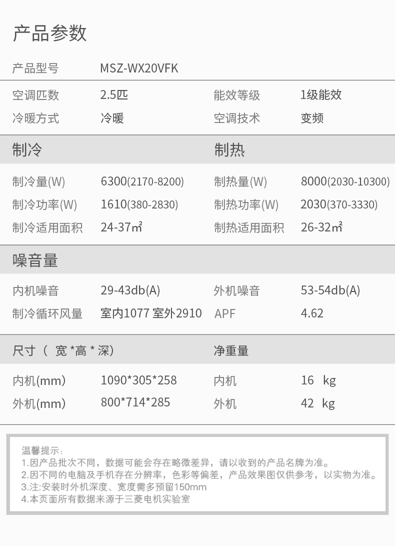 【国补15%】三菱电机MSZ-WX20VFK 2.5匹全直流变频一级静音冷暖空调挂机