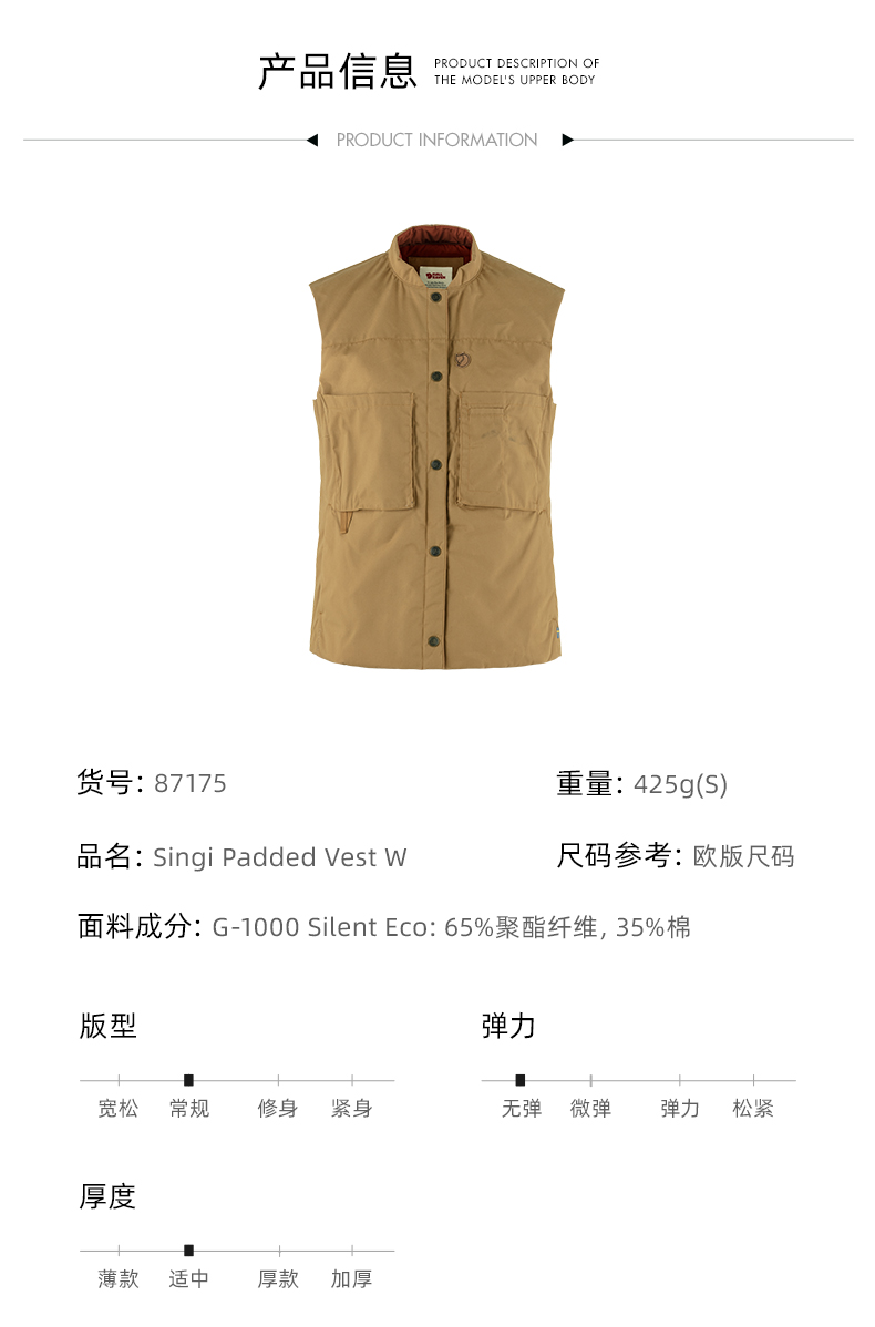 北极狐女G-1000户外背心外套宽松保暖百搭经典马甲 87175