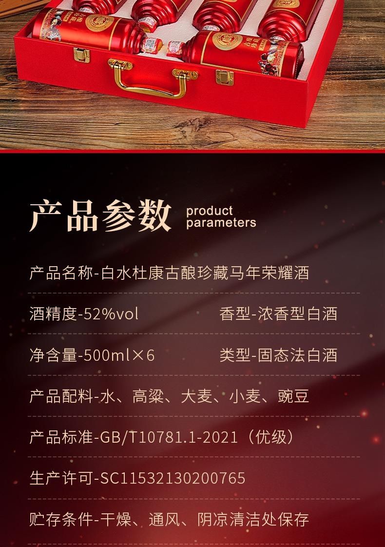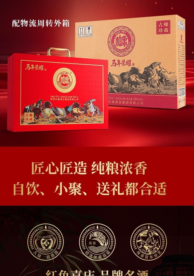 买一箱送一箱 杜康马年荣耀酒 古酿珍藏52度浓香型白酒 500ml*6瓶 礼盒装 醇厚绵柔 私藏送礼佳选