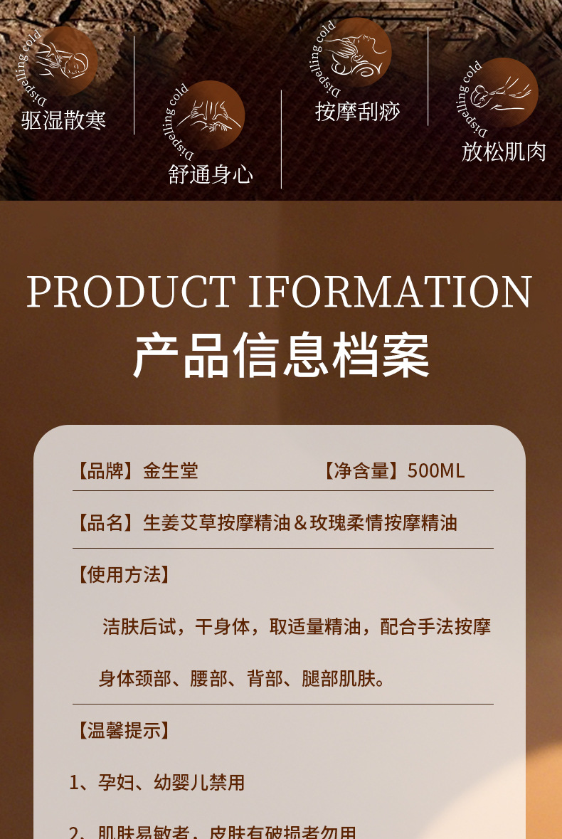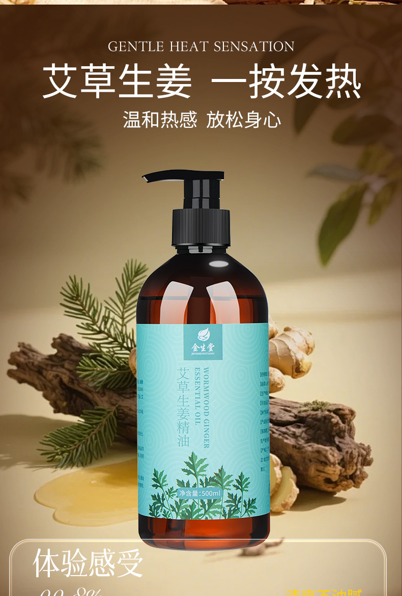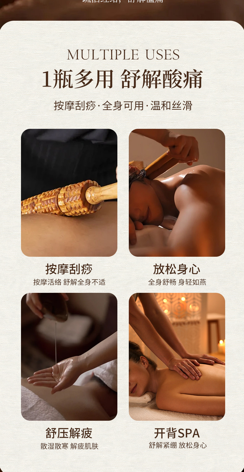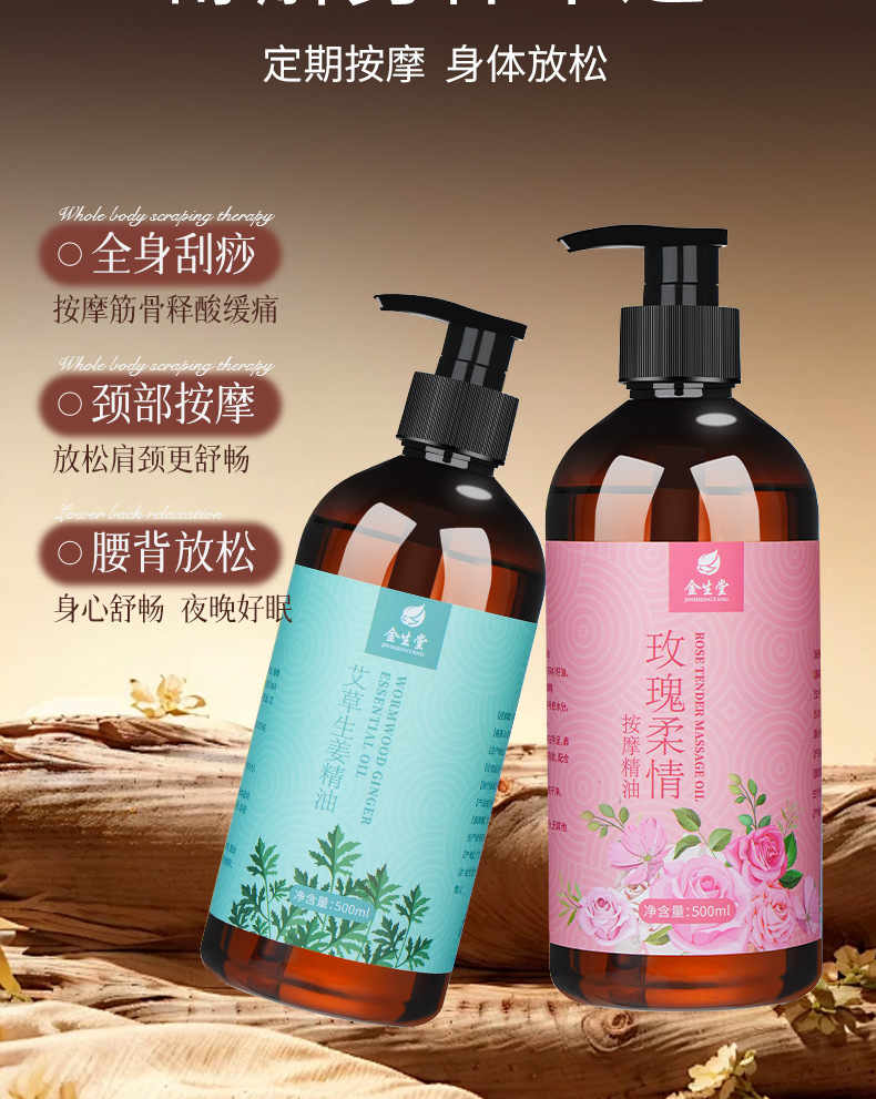 生姜艾草按摩刮痧精油全身通经络玫瑰老姜发热开背身体肩颈推拿