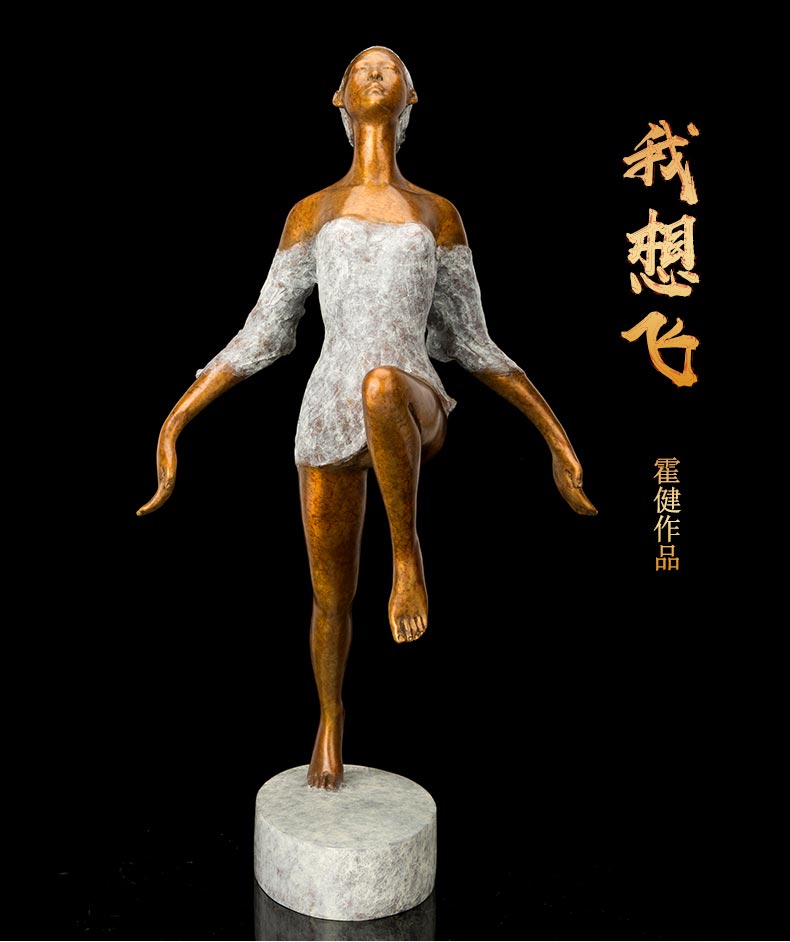 宇达青铜文化 限量99版 青铜雕塑艺术品 《我想飞》 作者:霍健 高46.5cm