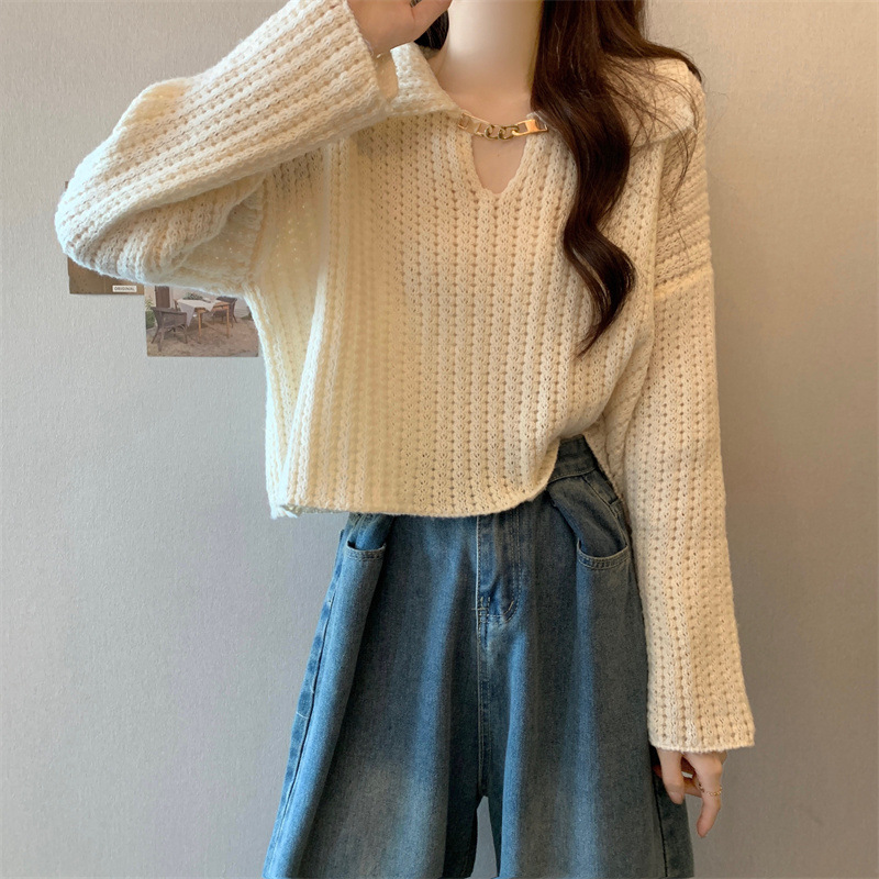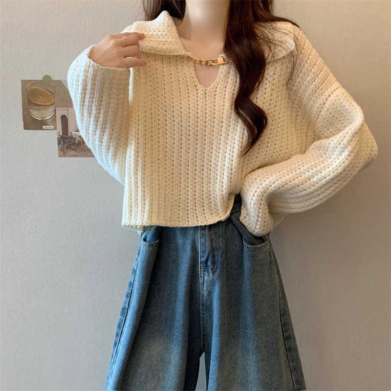【韩版娃娃领短款毛衣】秋冬新款 设计感内搭针织衫 小个子打底衫上衣