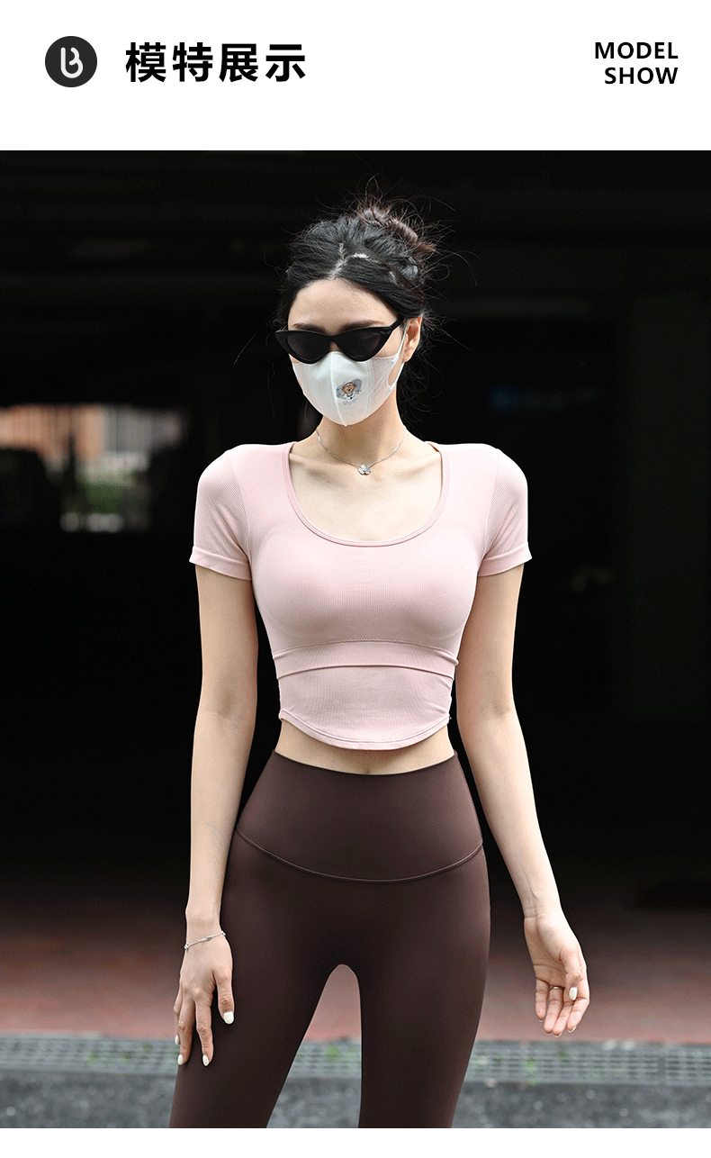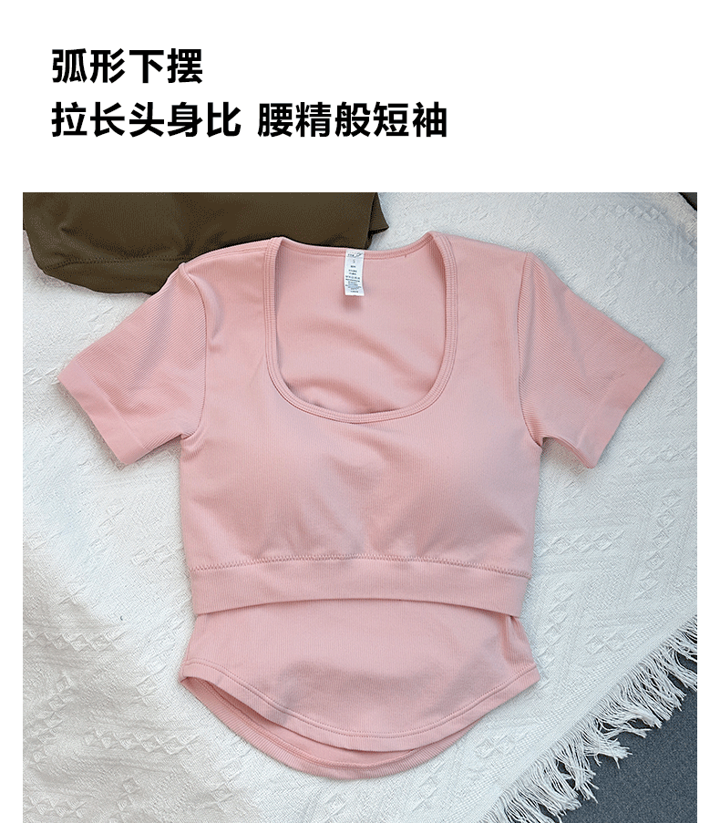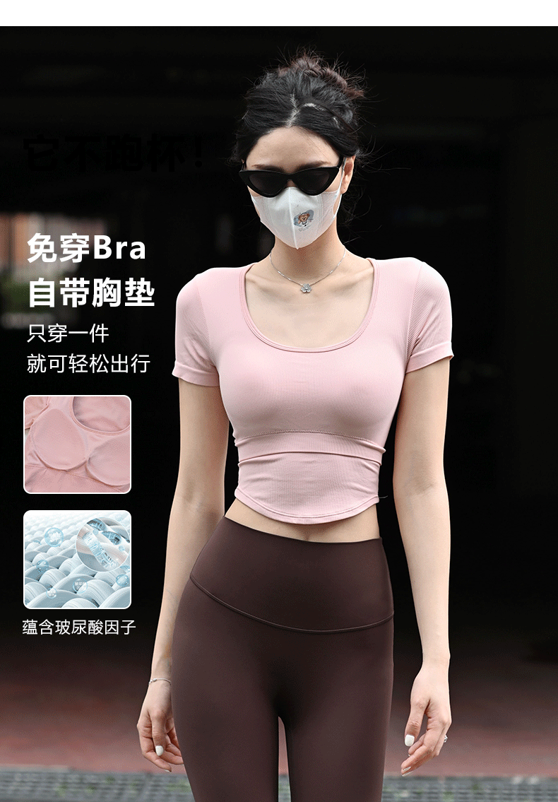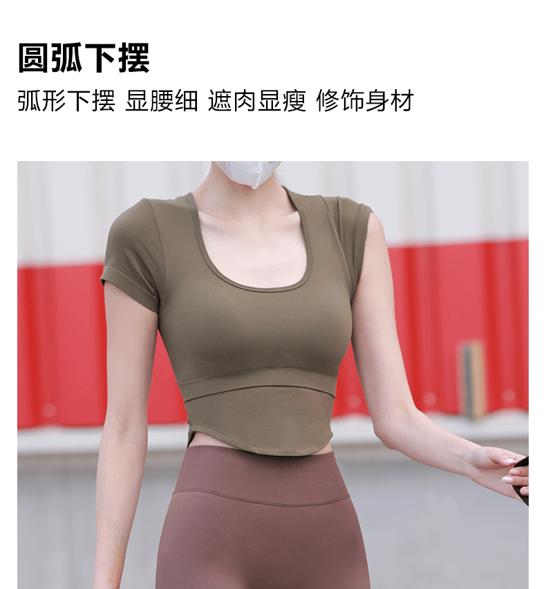 beemen一体杯胸垫 瑜伽健身短袖T恤 小蛮腰T恤 弧形下摆修身显瘦 抑菌运动T恤亲肤玻尿酸科技