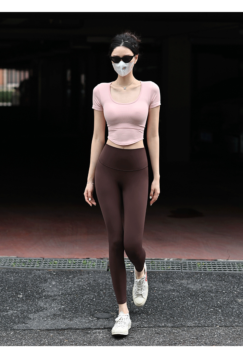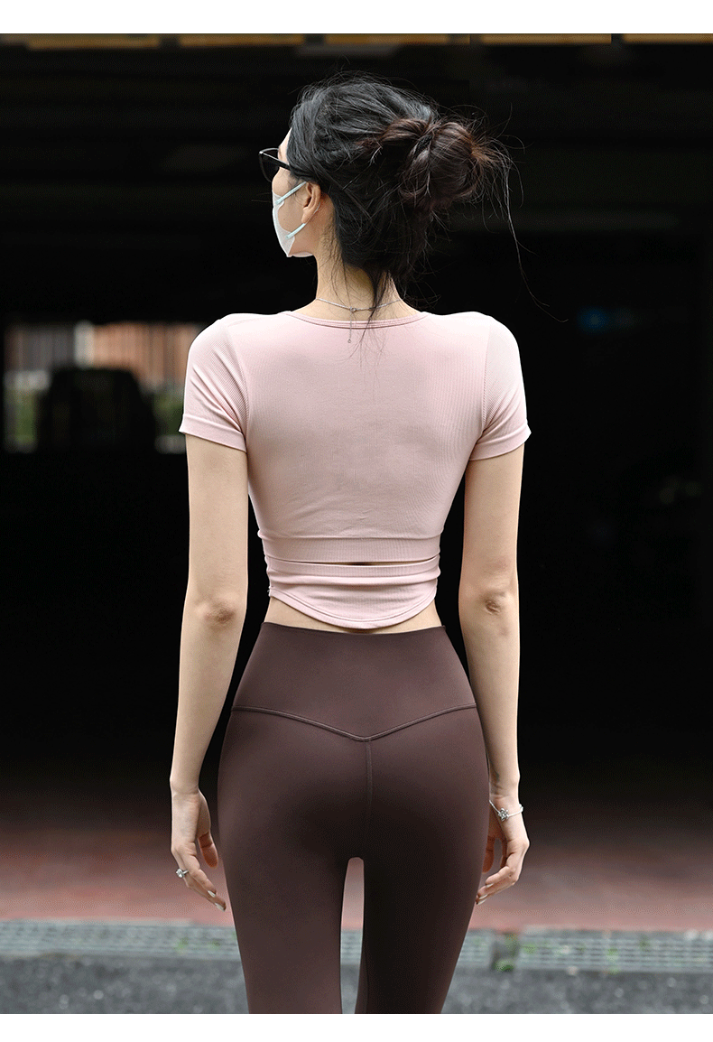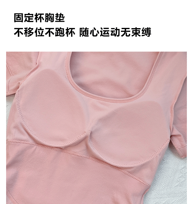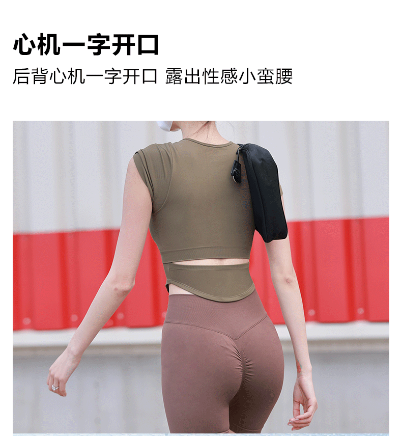 beemen一体杯胸垫 瑜伽健身短袖T恤 小蛮腰T恤 弧形下摆修身显瘦 抑菌运动T恤亲肤玻尿酸科技