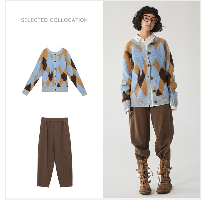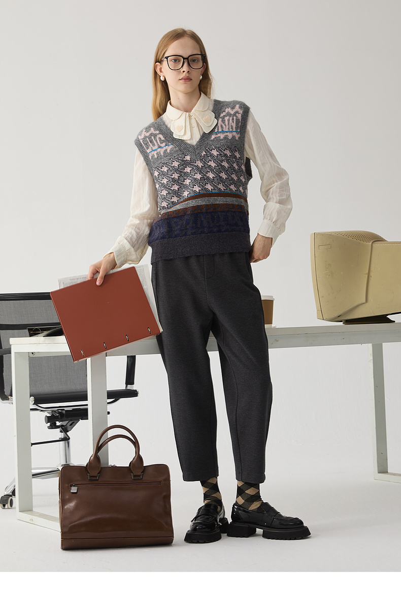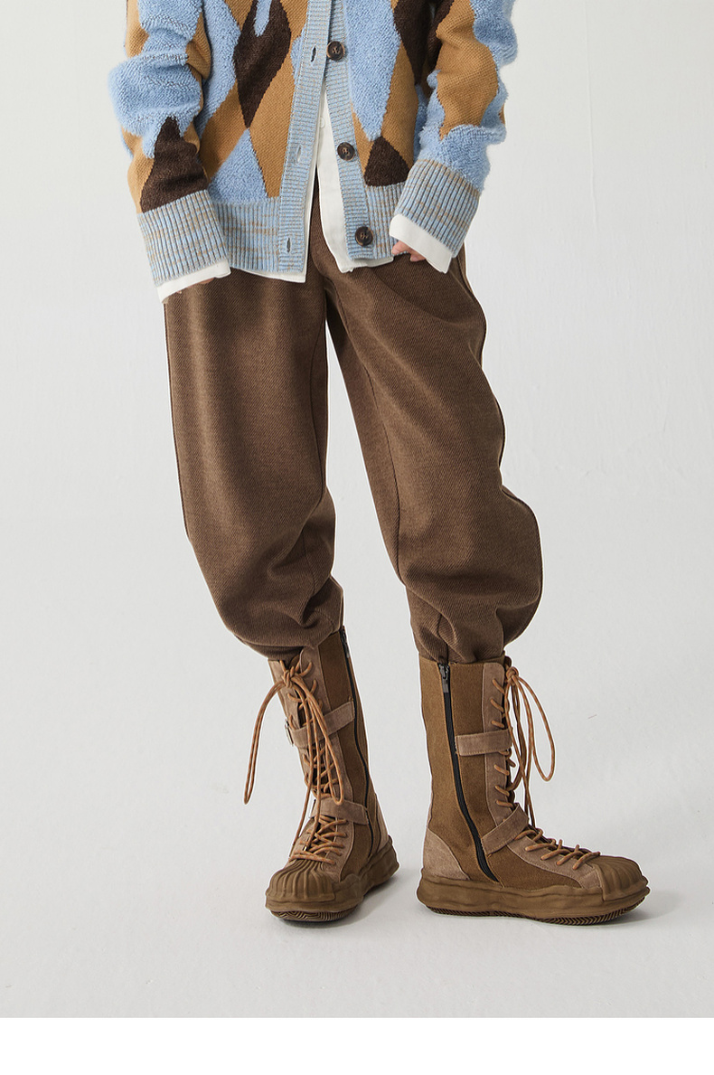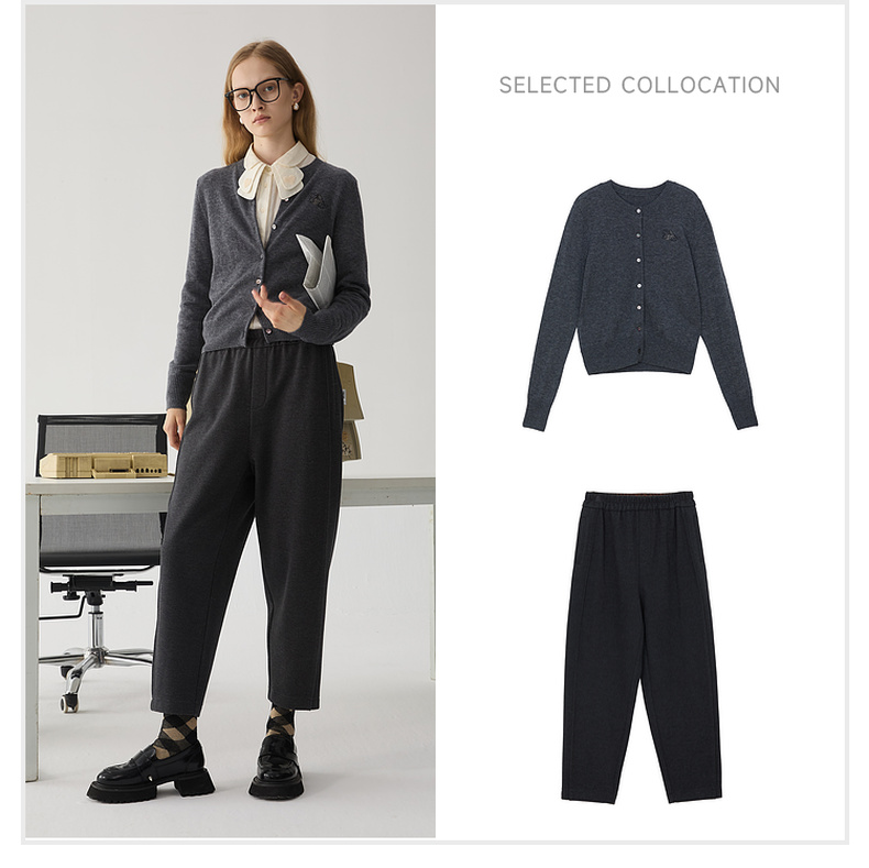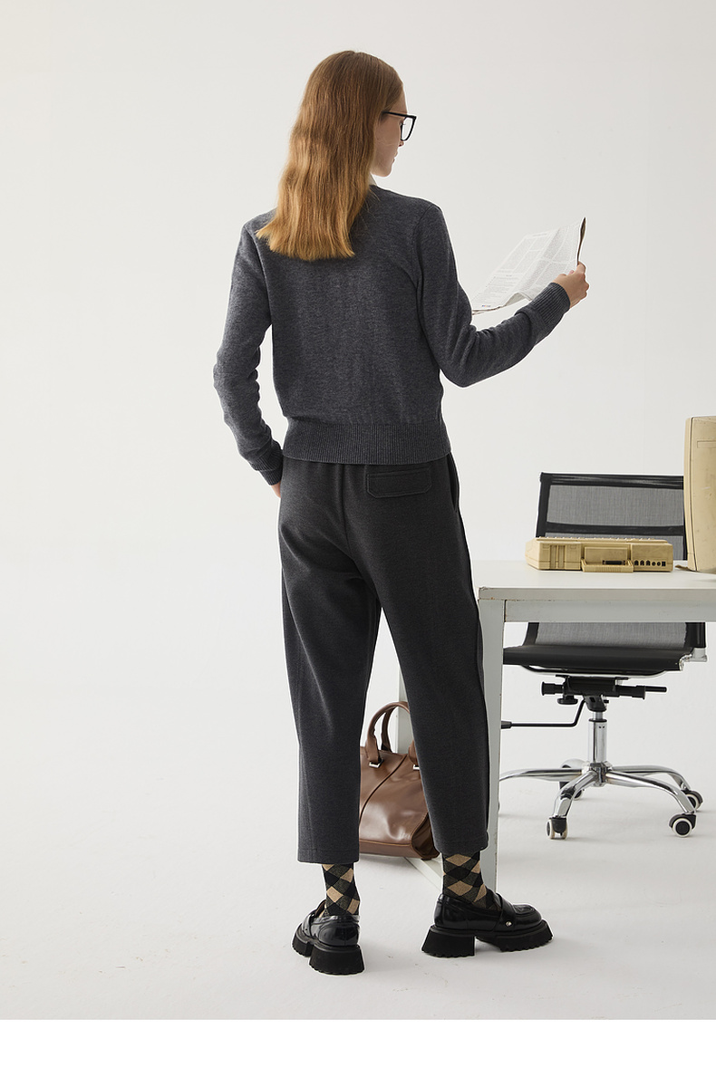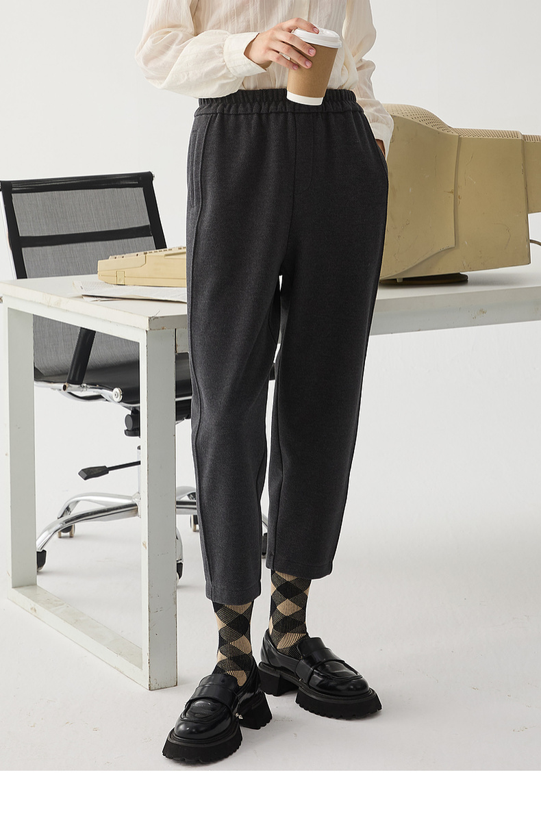 谜底萝卜裤女2024冬季新品简约百搭松紧腰九分裤休闲裤244MK1478
