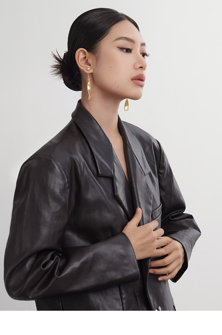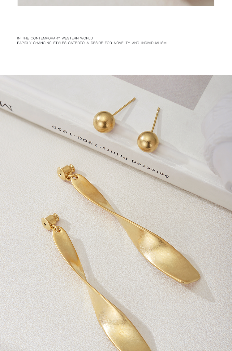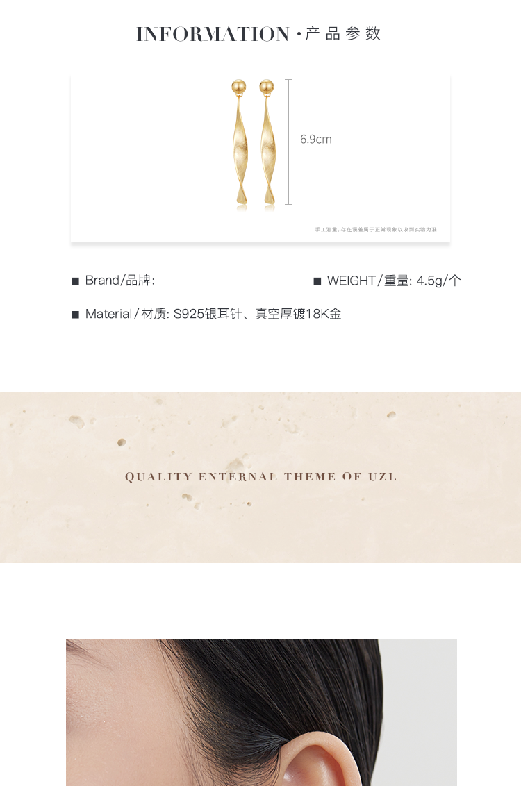 Oflye潮流饰品 欧美时尚长款金色耳环女气质百搭显脸瘦耳钉小众耳饰新款配饰