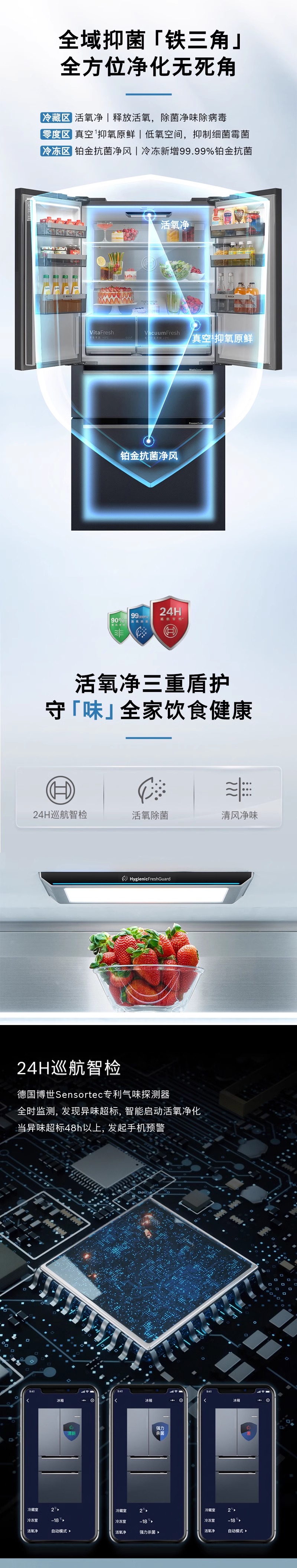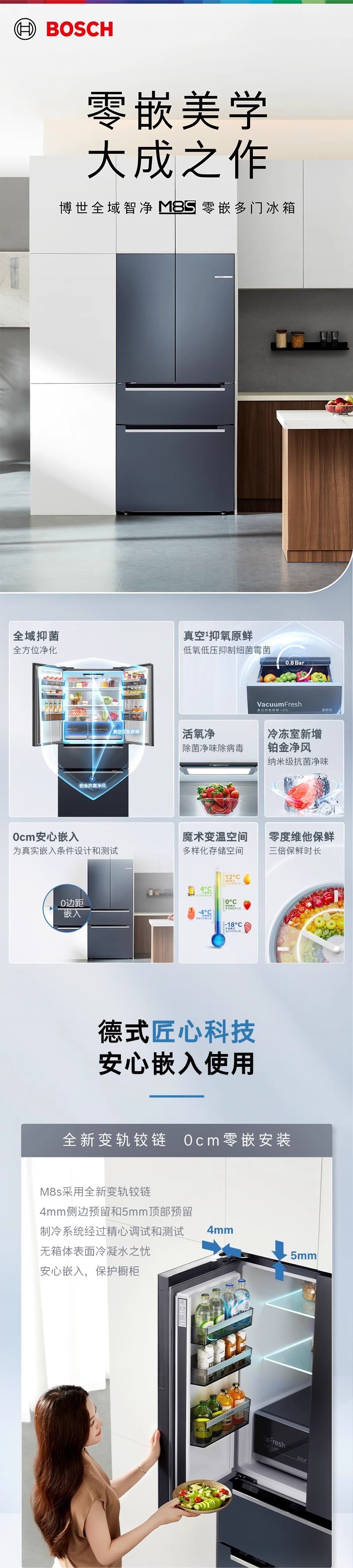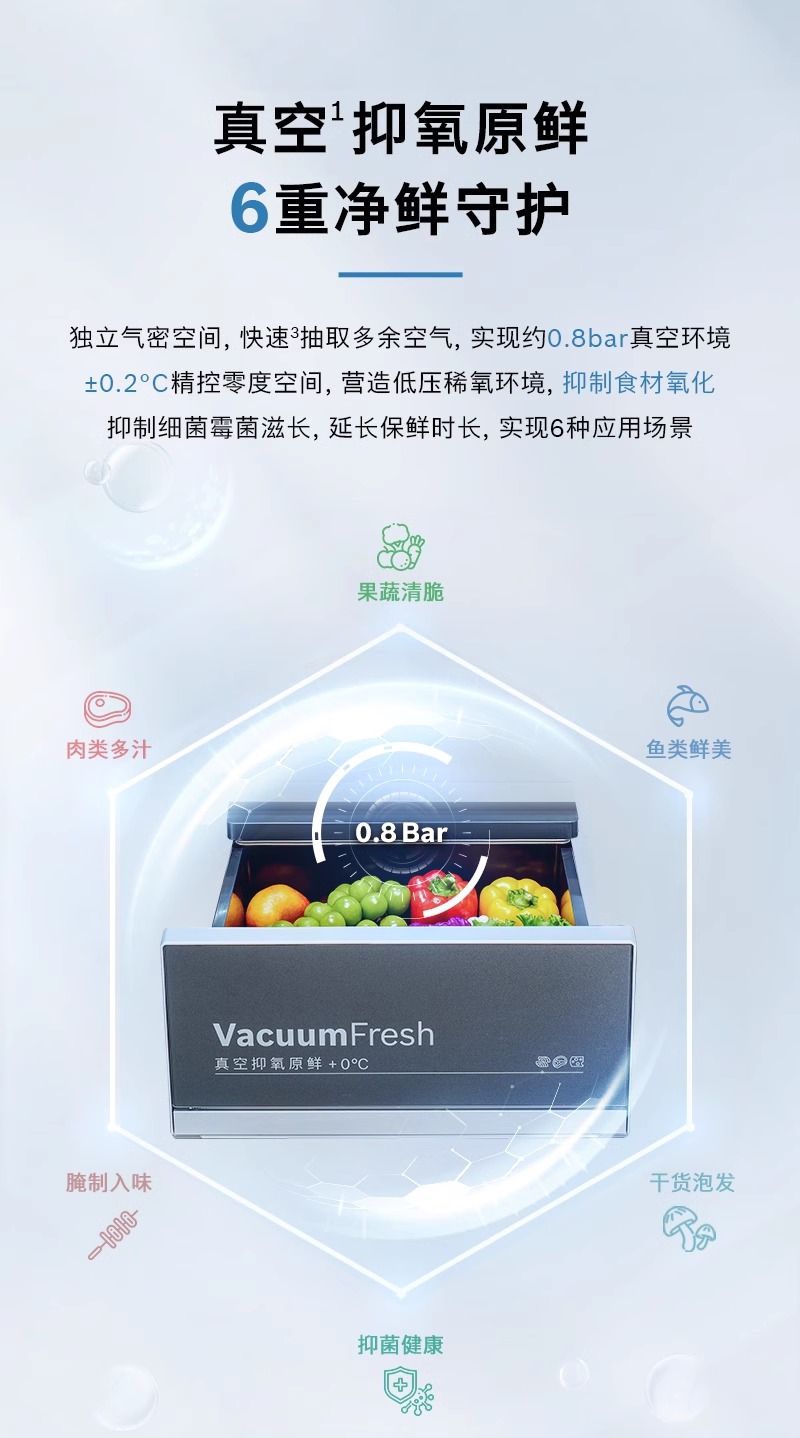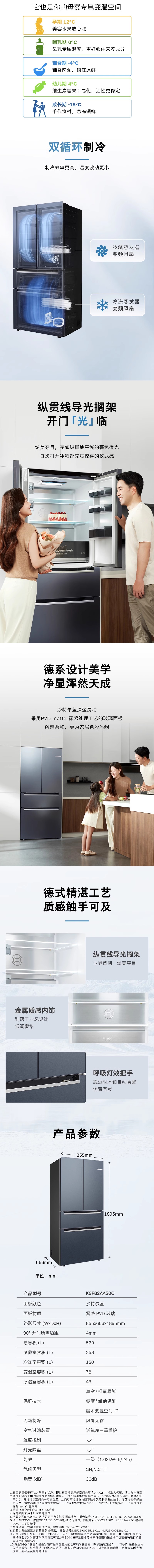 博世(BOSCH)双循环家用多门电冰箱 529升零嵌变频风冷无霜M8超氧除菌真空抑菌空间大容量 沙特尔蓝K9F82AA50C